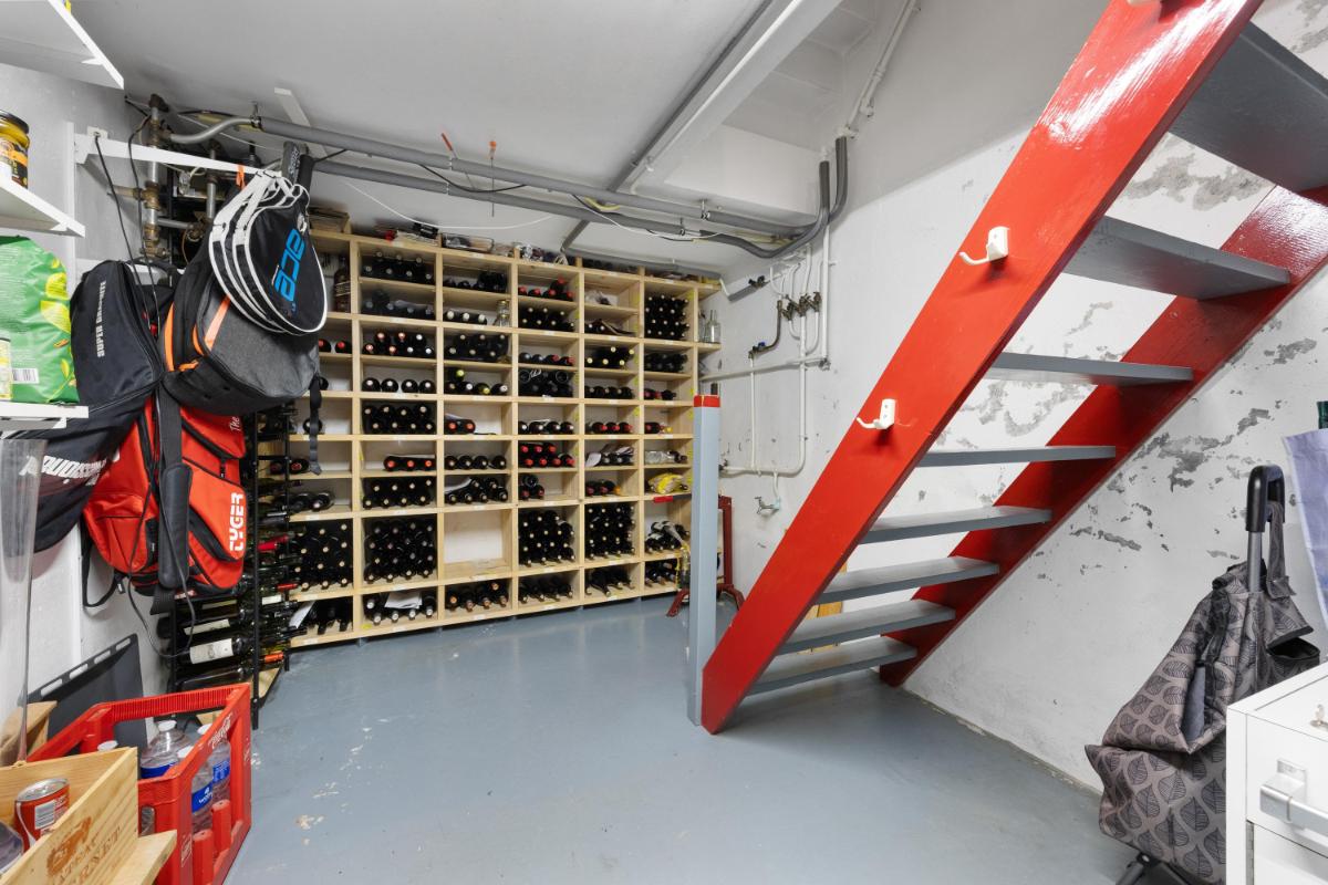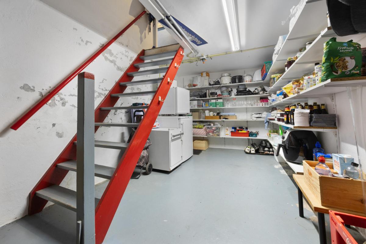 Ideale bijkeuken met witgoedopstelling. Vanuit de hal toegang tot de royale proviand- en wijnkelder.