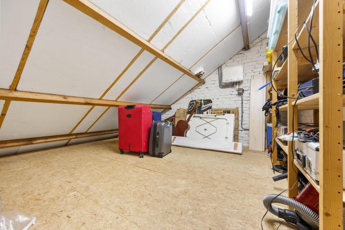Vlieringzolder, zolderruimte met opstelling van de omvormer voor de 12 zonnepanelen (geplaatst in 2022)