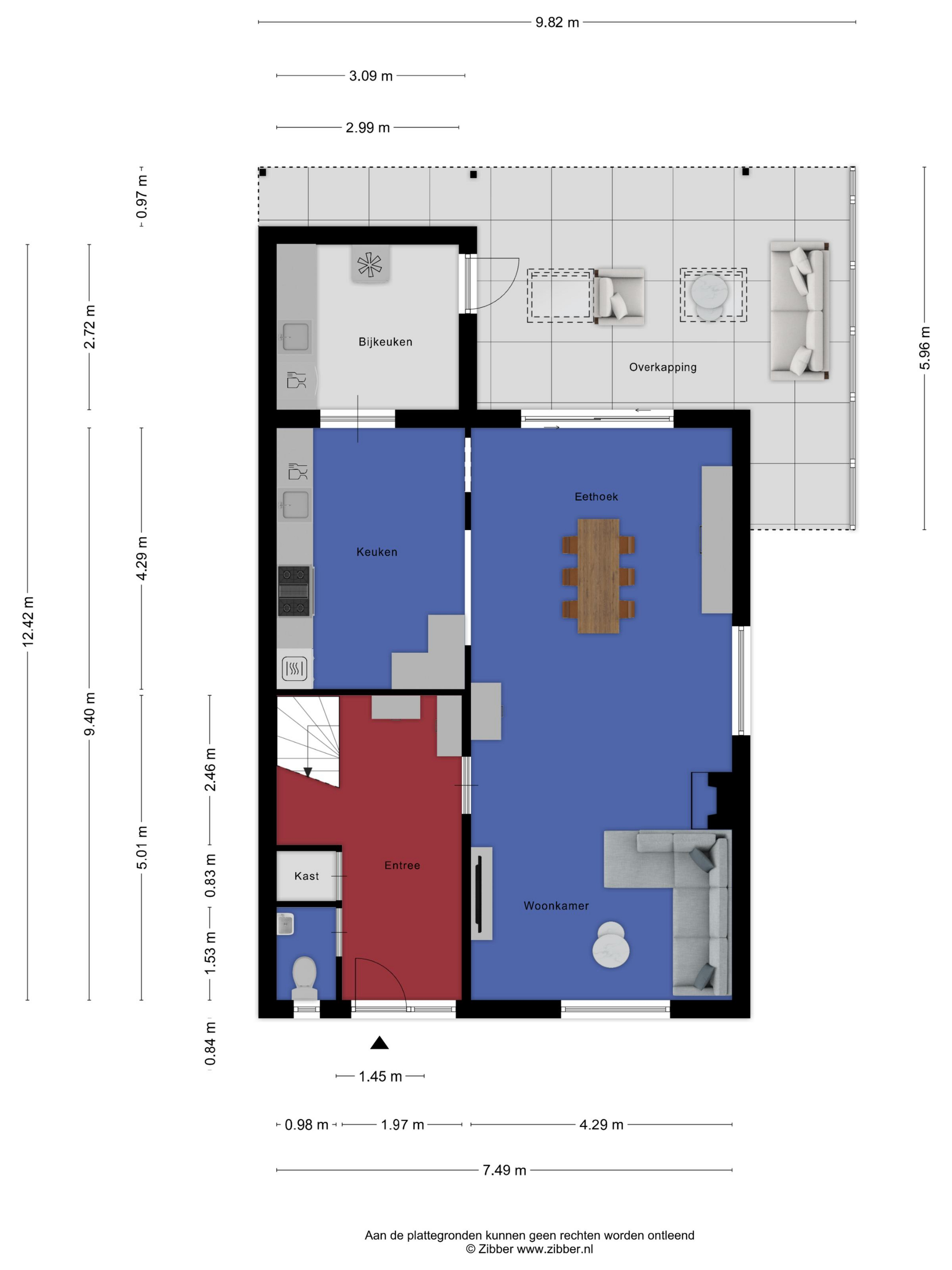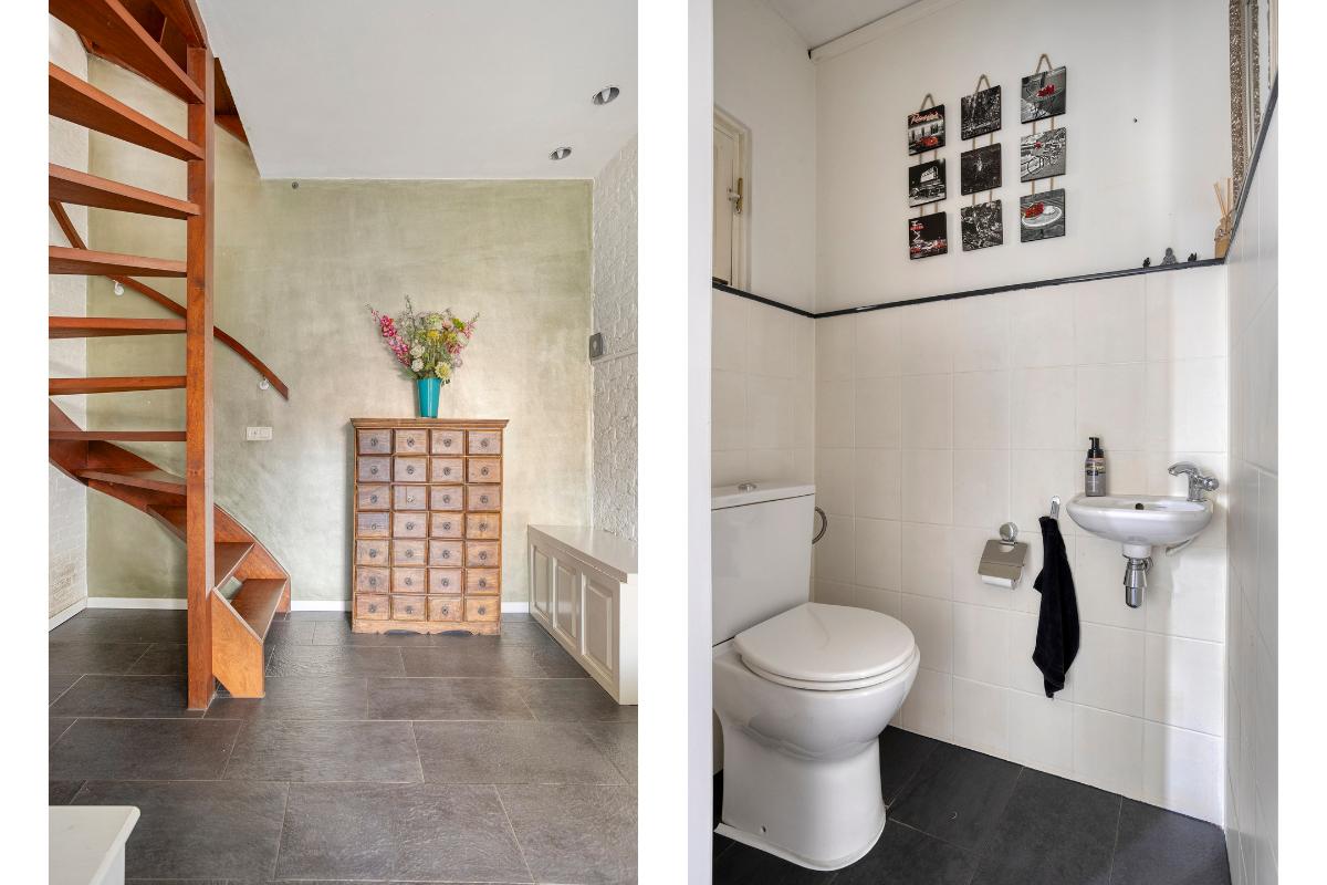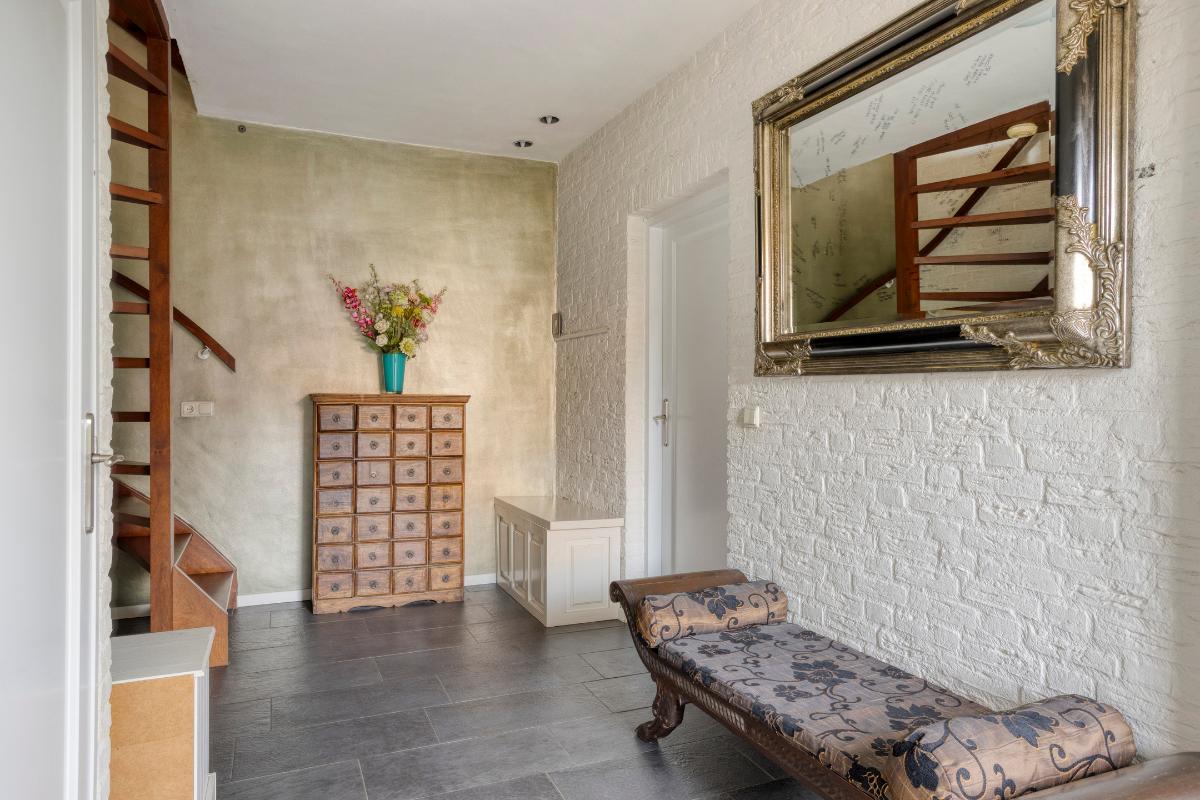 Hier bevindt zich tevens de achterdeur naar de tuin, waardoor deze ruimte zich perfect leent als praktische entree en opbergplek voor schoenen, jassen en tassen.