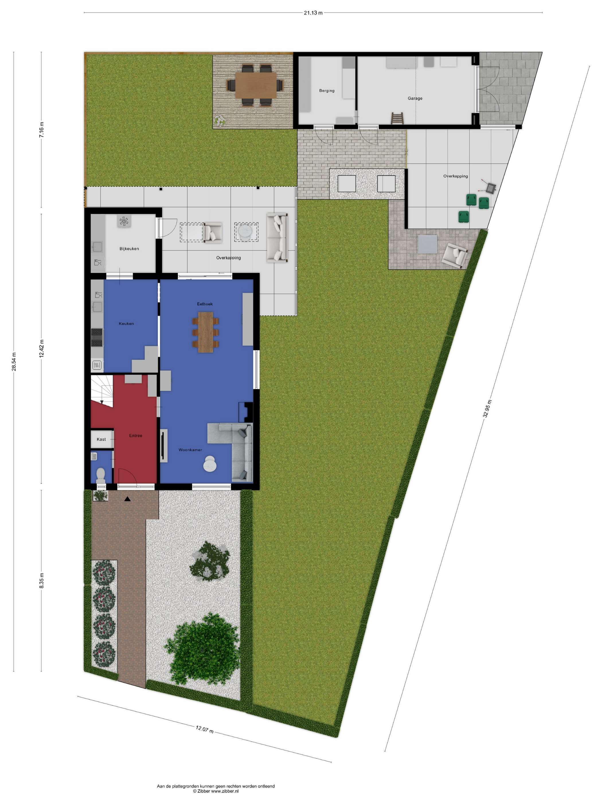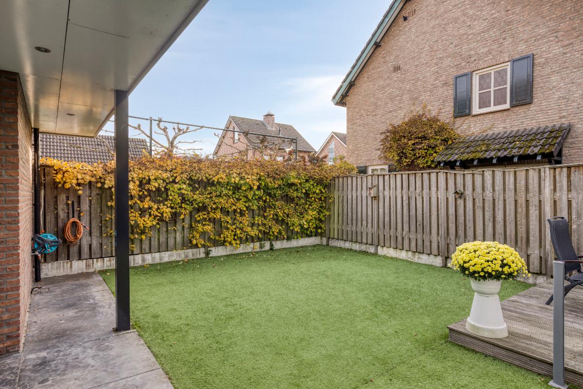 Tuin De achtertuin heeft een zuidwestelijke ligging. Doordat de tuin niet alleen achter, maar ook naast de woning ligt kunt u de hele dag kunt genieten van de zon. De tuin is onderhoudsvriendelijk aangelegd met voornamelijk kunstgras en sierbestrating. De tuin is volledig omheind en de erfafscheiding bestaat uit houten schuttingdelen en klimop. Door de hoekligging is er volop privacy. Het perceel is maar liefst 484m² groot, dus er is volop ruimte voor kinderen om te spelen of om meerdere zitplekken te creëren.