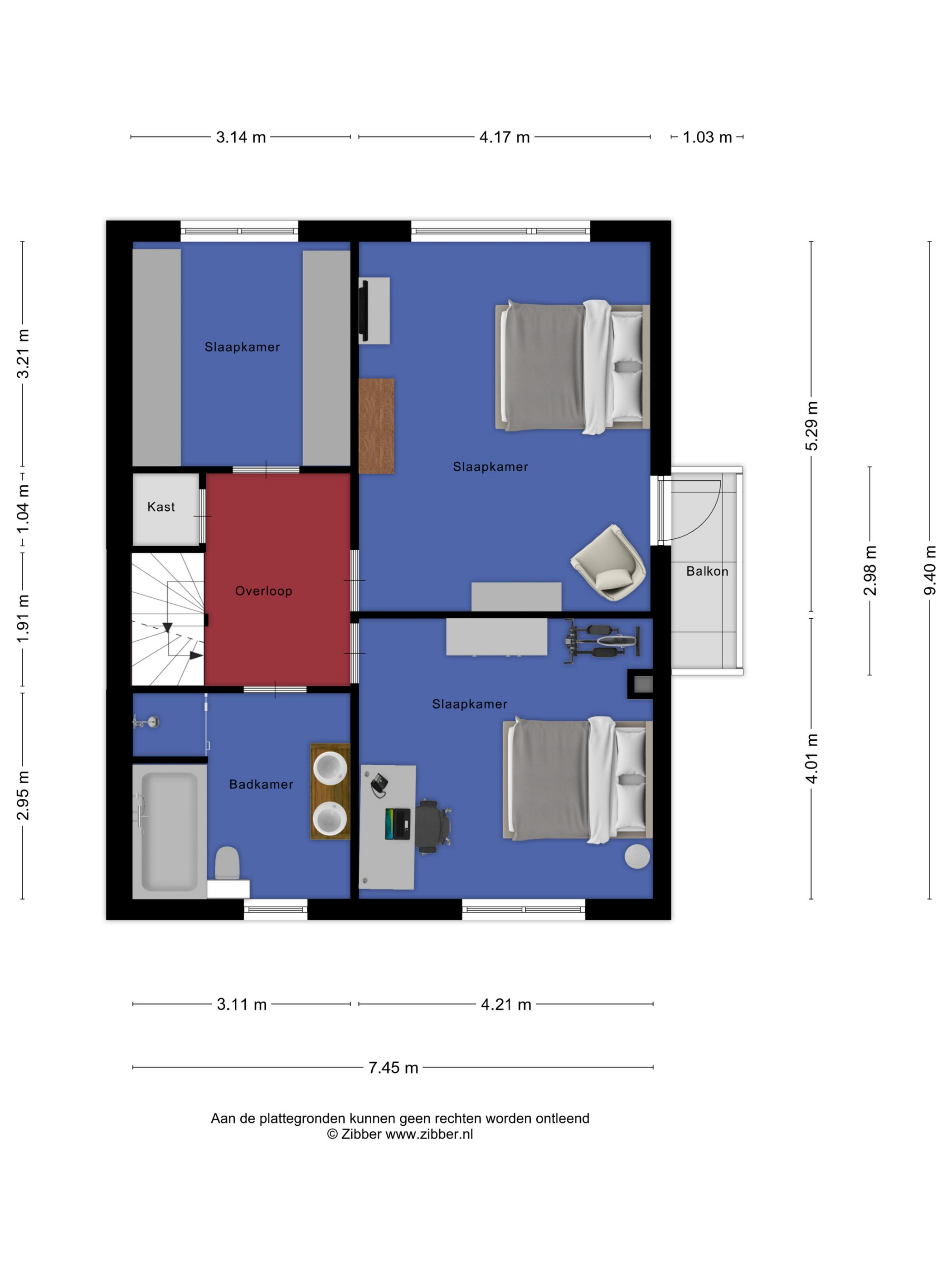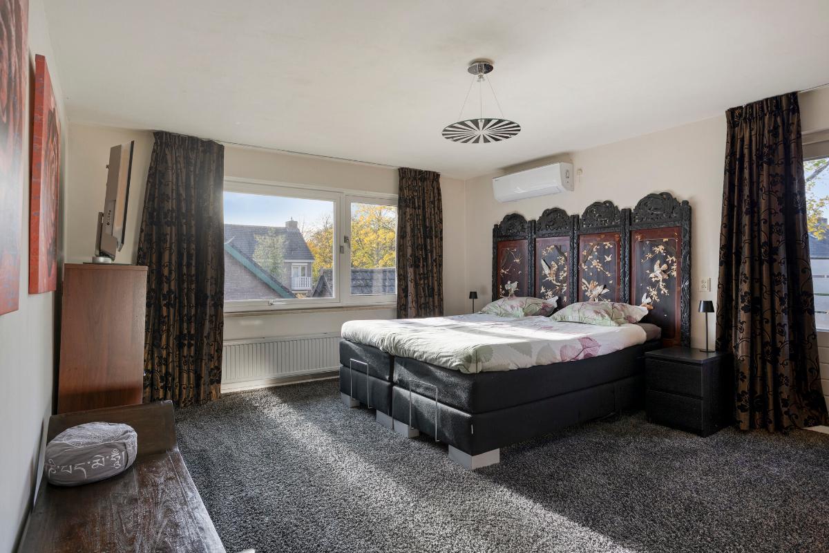 Ouderslaapkamer De royale ouderslaapkamer bevindt zich aan de achterzijde van de woning. Dankzij de grote raampartijen geniet deze kamer van een prettige lichtinval. De kamer is ruim van opzet (maar liefst 22m²) en biedt daardoor voldoende plaats voor een groot tweepersoonsbed, kastenwand en eventueel een extra zit- of werkhoek. De kamer is voorzien van een vloerbedekking en gestuukte wanden en plafond. Met de airco-unit is het hier zowel ’s zomers als ’s winters aangenaam vertoeven. Via een deur is er toegang tot het balkon aan de zijkant van de woning.