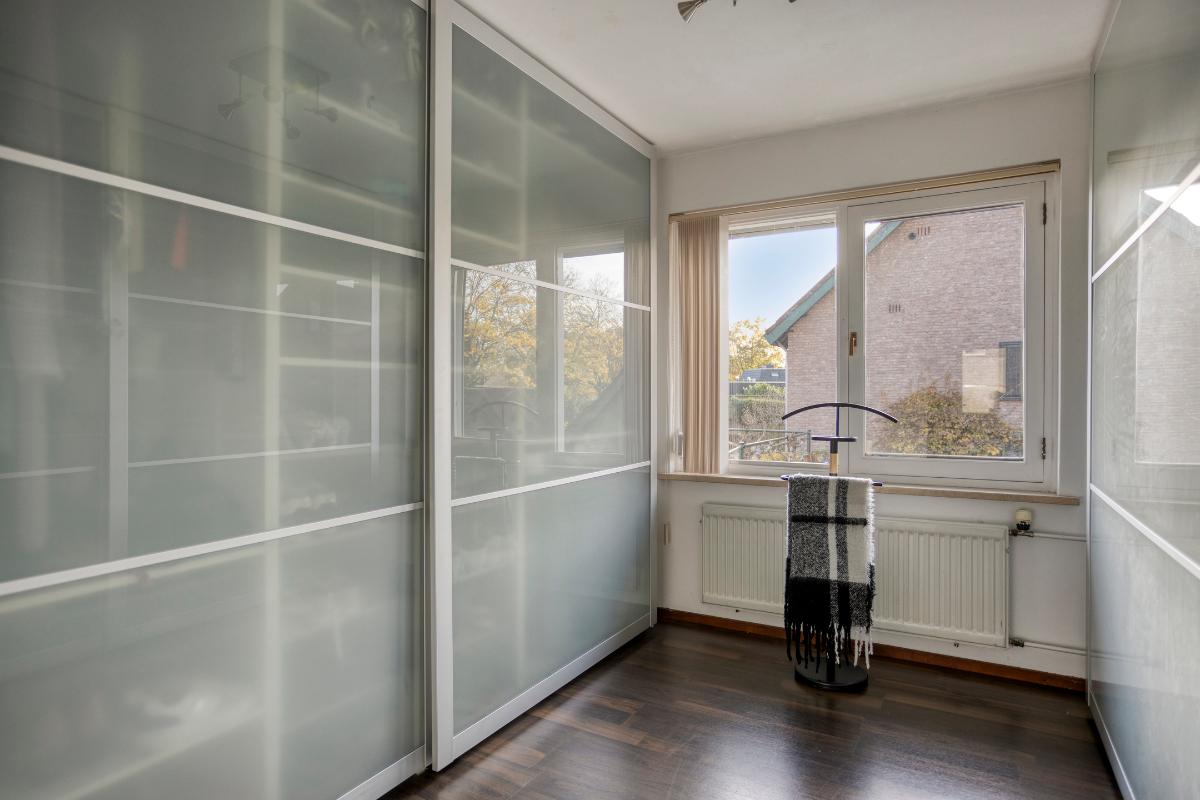 Slaapkamer 3 (kastenkamer) De derde slaapkamer (ruim 10m²) is momenteel ingericht als kastenkamer met aan weerszijden grote schuifkasten. Deze praktische en overzichtelijke ruimte is perfect voor wie behoefte heeft aan extra opbergruimte of een inloopkast. Uiteraard kan de kamer ook eenvoudig als slaap- of werkkamer worden gebruikt. De kamer is voorzien van een laminaatvloer, een raam met uitzicht op de tuin en biedt een rustige, verzorgde uitstraling.