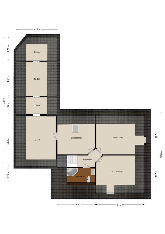 Via een van de slaapkamers is er toegang tot een grote zolderruimte – momenteel in gebruik als bergruimte.