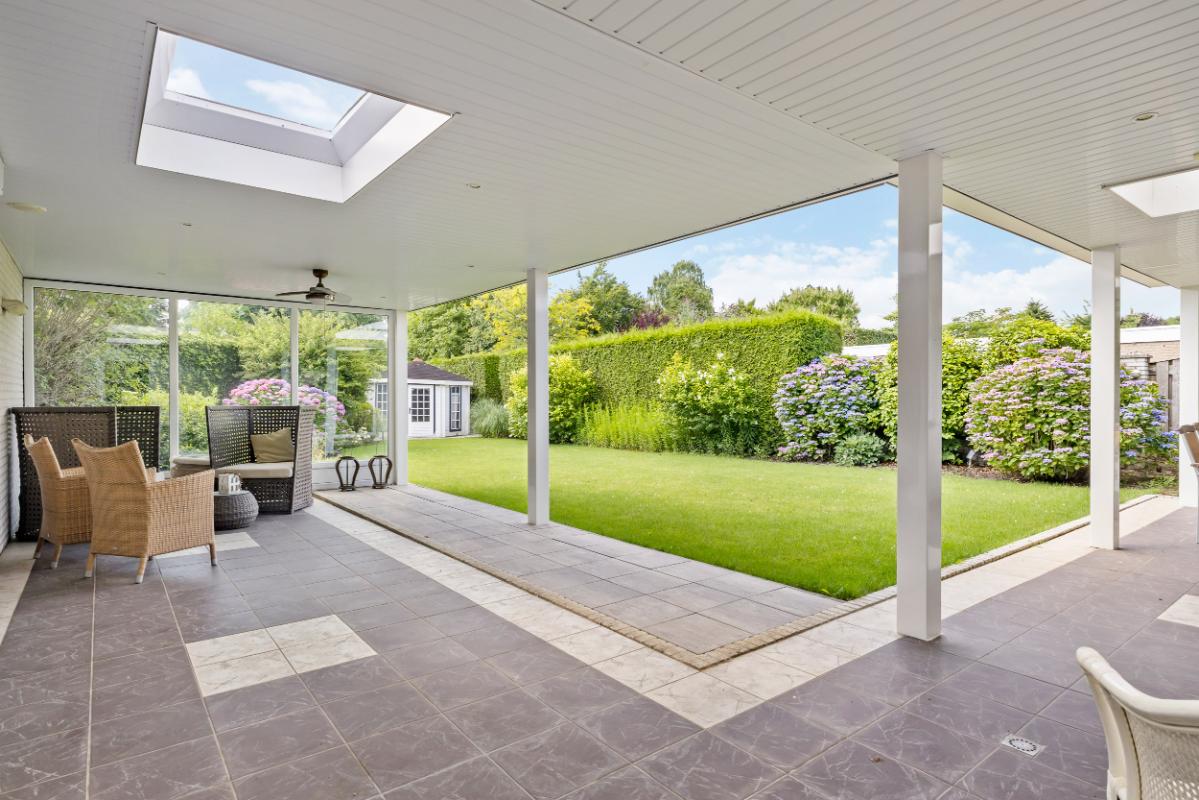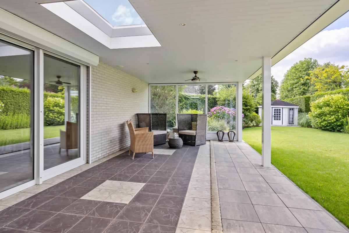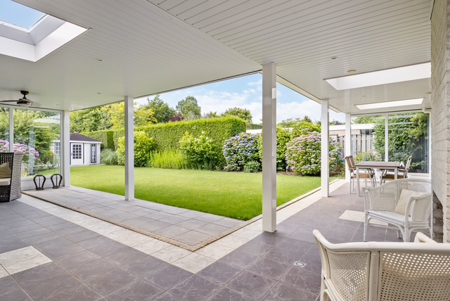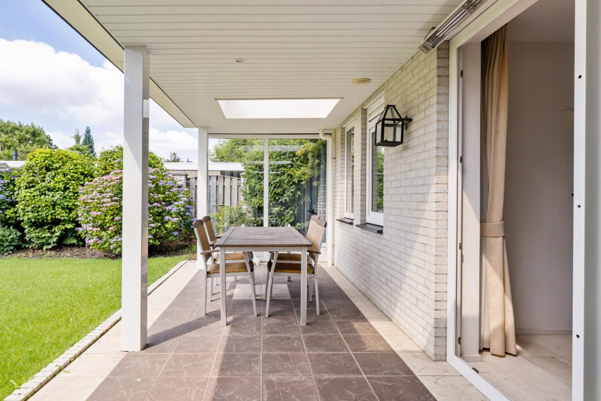 De brede, zonnige achtertuin is gunstig gelegen op het zuiden en biedt volop privacy. De overkapping aan de woning met open haard zorgt voor een heerlijk beschutte plek om in elk seizoen van het buitenleven te genieten. De voortuin en oprit welke geschikt is voor het parkeren van meerdere auto's zorgen samen voor een verzorgde uitstraling en bieden voldoende parkeergelegenheid op eigen terrein. Achter een elektrisch hekwerk is voldoende plaats voor het stallen van caravan op eigen terrein.