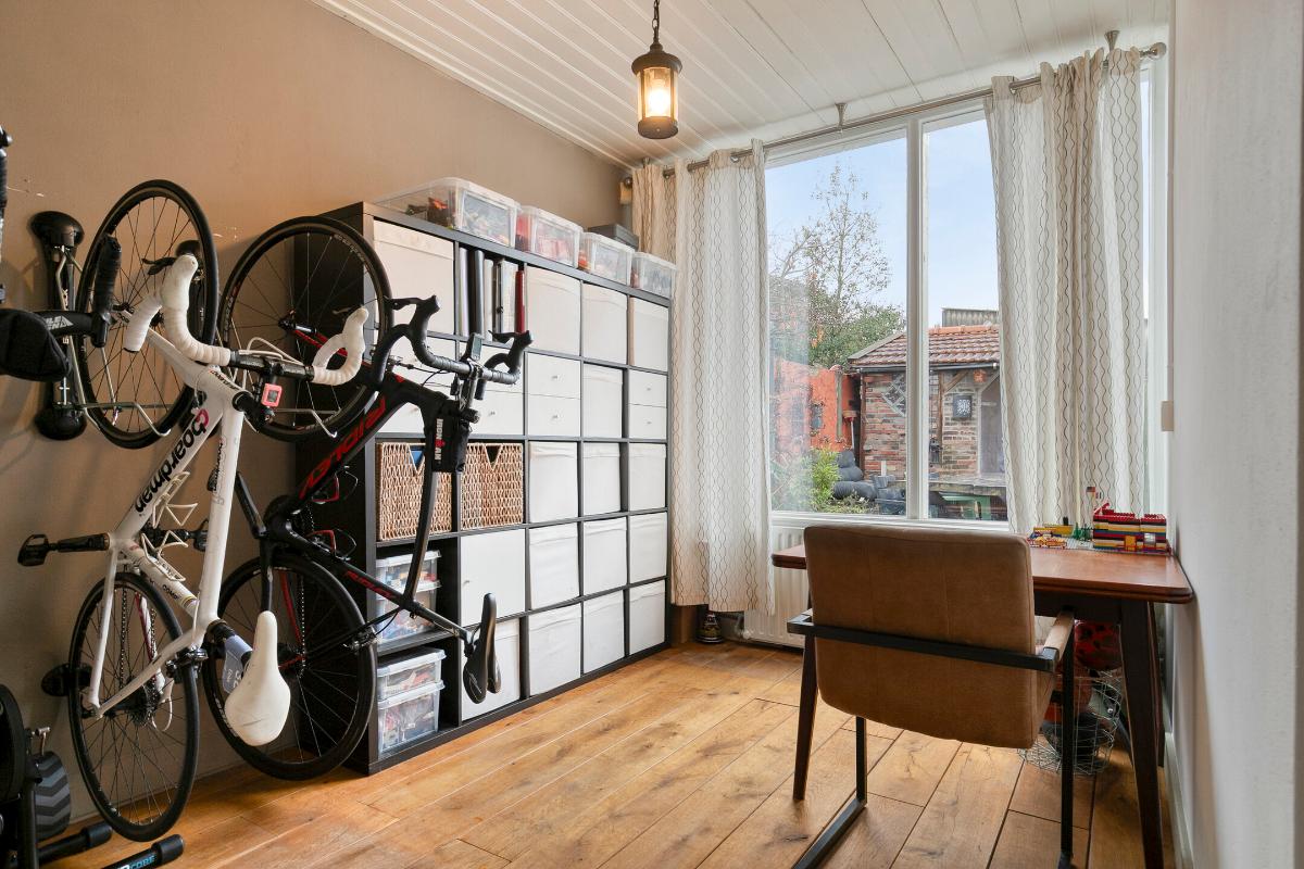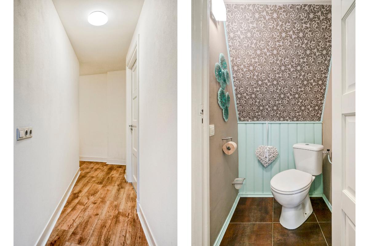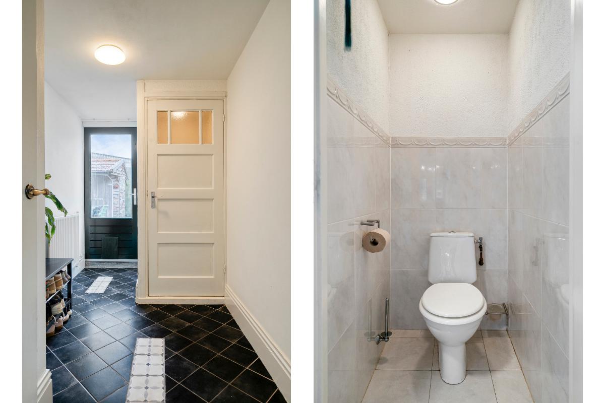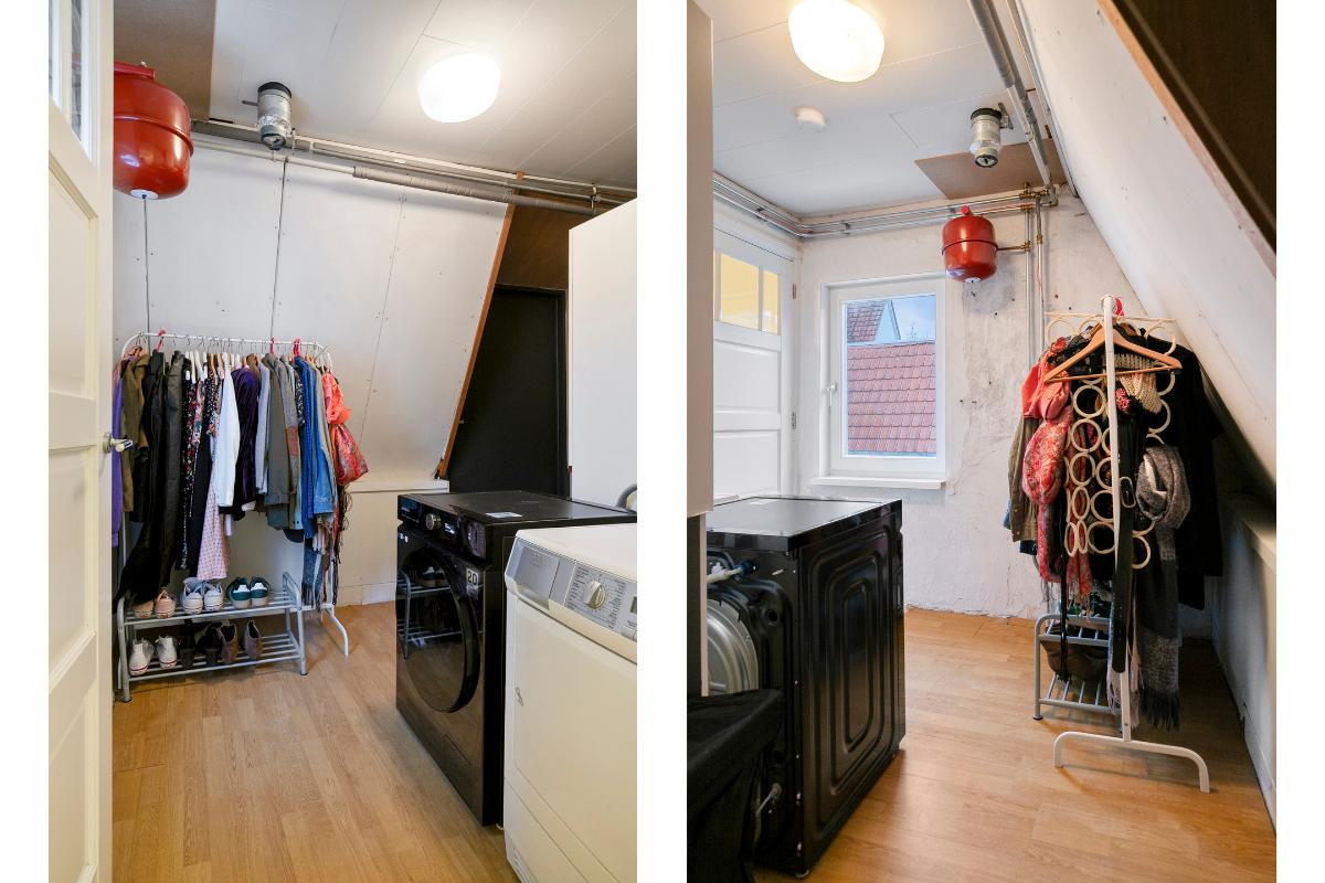 De toiletruimte is voorzien van een staand closet. Daarnaast is er een praktische was-/stookruimte met de opstelling van de cv-installatie (2022) en aansluitingen voor wasapparatuur. Vanuit deze ruimte is het platte dak bereikbaar.