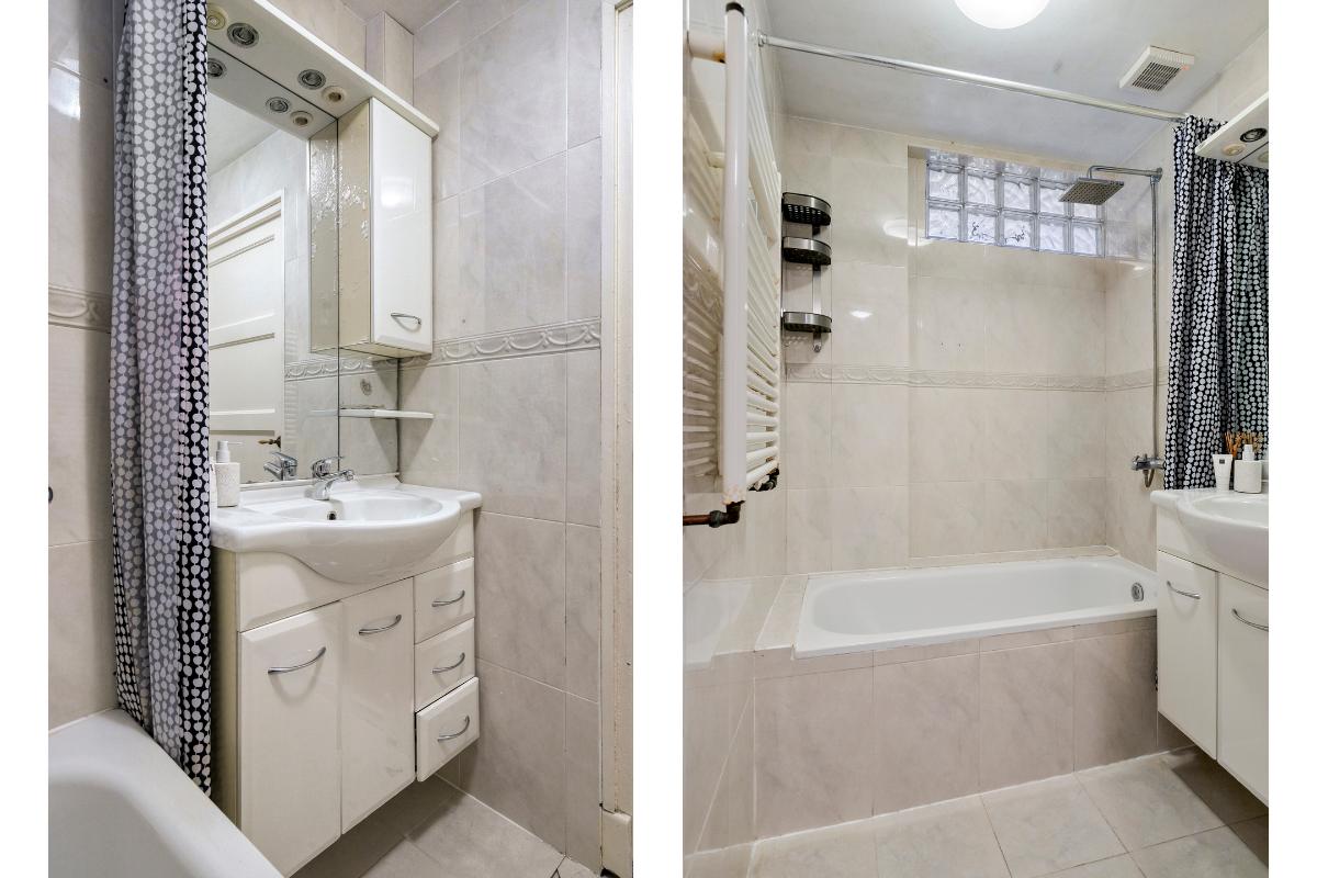 De toiletruimte is deels betegeld en voorzien van een staand closet. Vanuit de bijkeuken is tevens de achtertuin bereikbaar. De badkamer is eenvoudig uitgevoerd en voorzien van een ligbad en vaste wastafel.