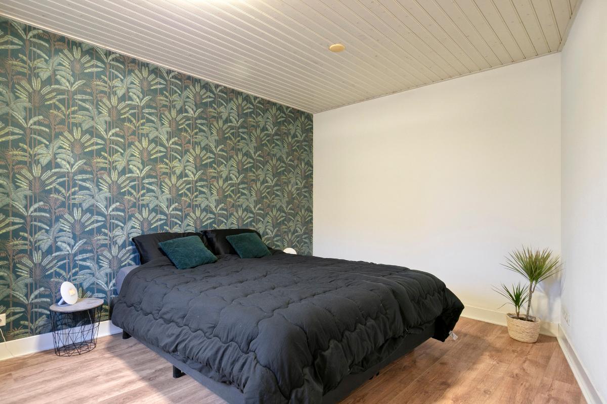 Slaapkamer 1 (ouderkamer): laminaatvloer en houten kozijnen met dubbele beglazing.