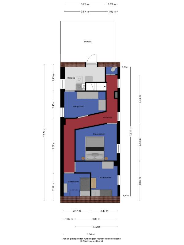 Slaapkamer 3 (voorzijde): laminaatvloer en dakraam.