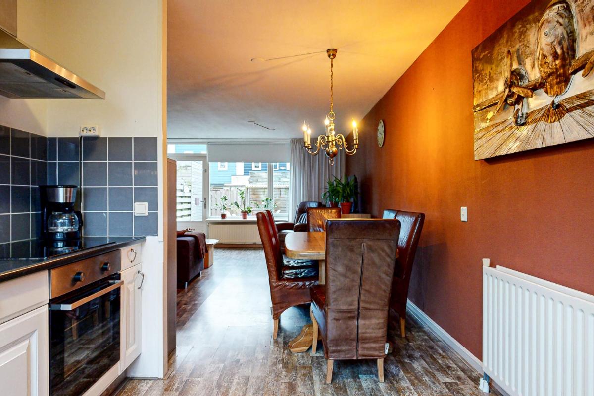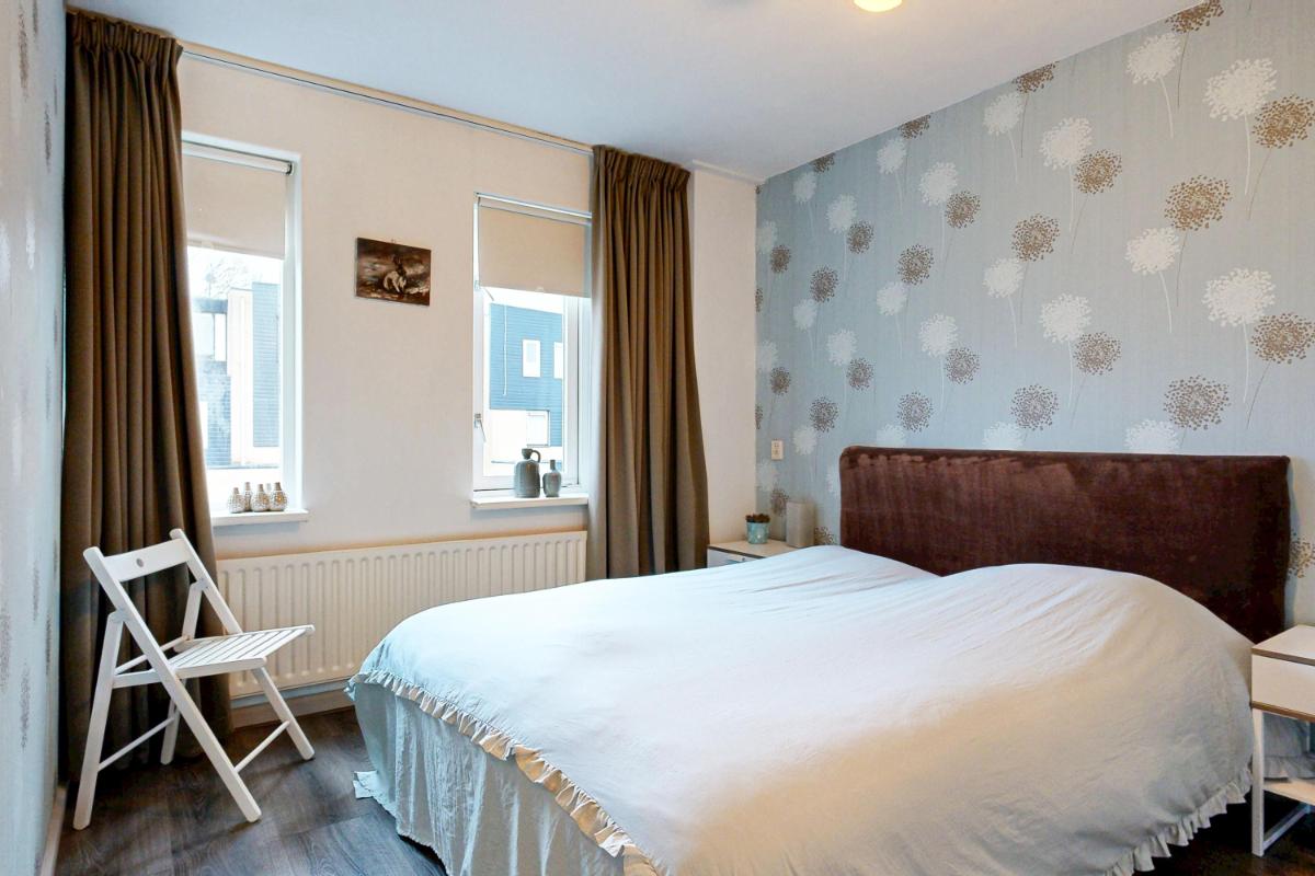 De lichte woonkamer biedt voldoende ruimte voor zowel een zit- als eethoek en staat in directe verbinding met de achtertuin. Dit zorgt voor een prettige lichtinval en een fijne overgang tussen binnen en buiten. De woning beschikt over vier volwaardige slaapkamers, geschikt voor gezinnen, werken aan huis of hobby's. De badkamer is praktisch ingedeeld en voorzien van een douche, toilet, wastafel, witgoedaansluitingen en een raam voor natuurlijke ventilatie en daglicht.