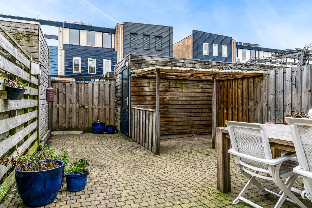 De achtertuin is gunstig gelegen op het zuidwesten, waardoor u tot in de avond van de zon kunt genieten. De tuin beschikt over een achterom en biedt daarmee extra gebruiksgemak.