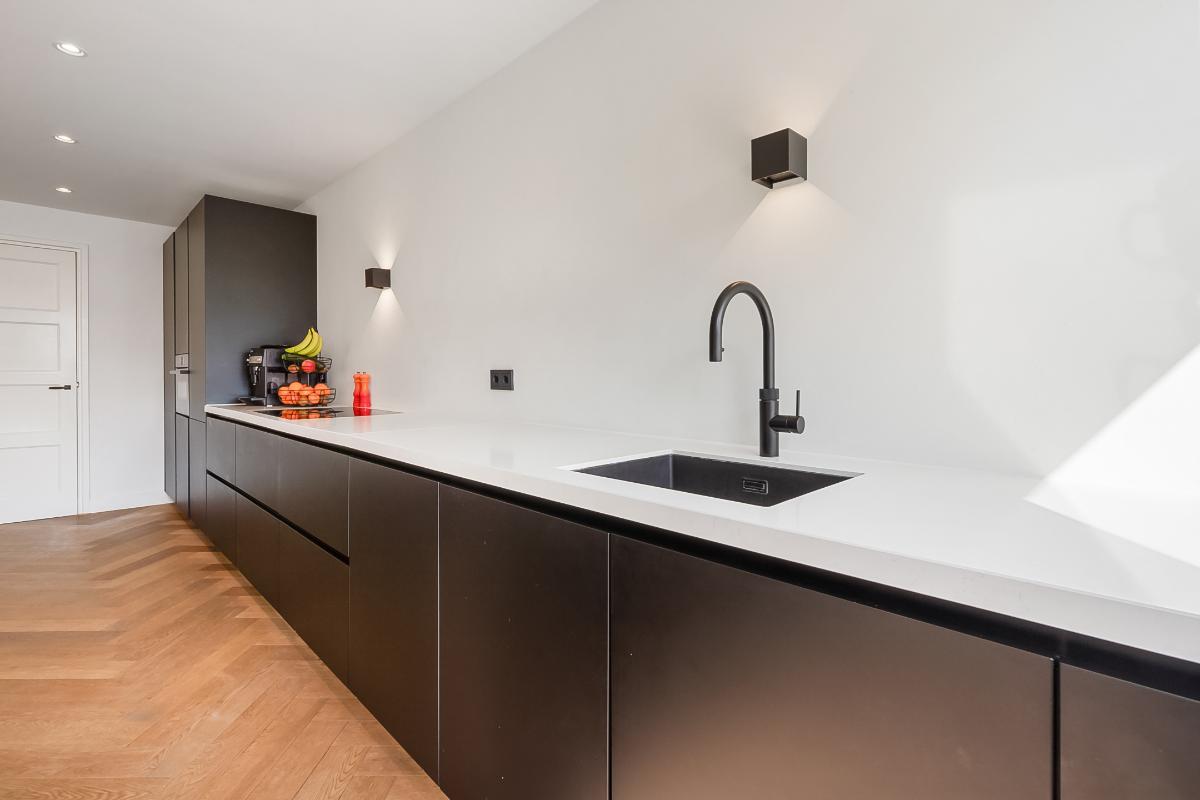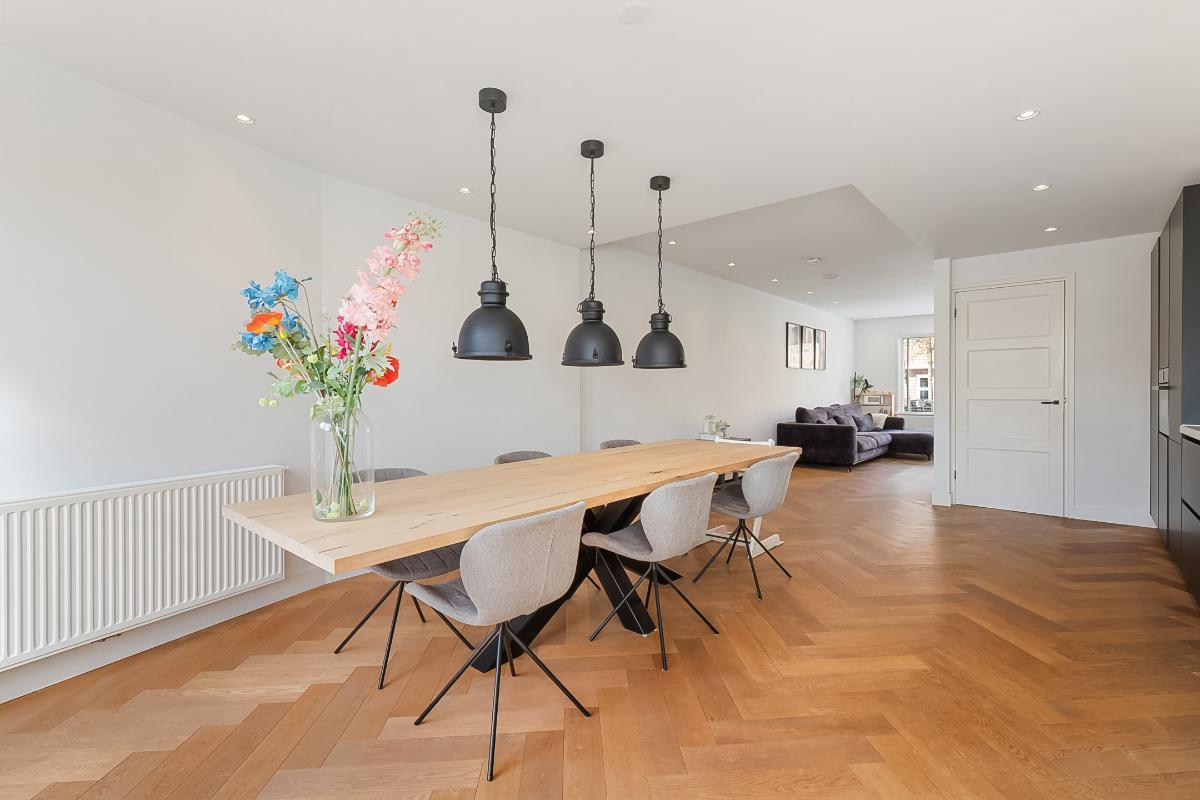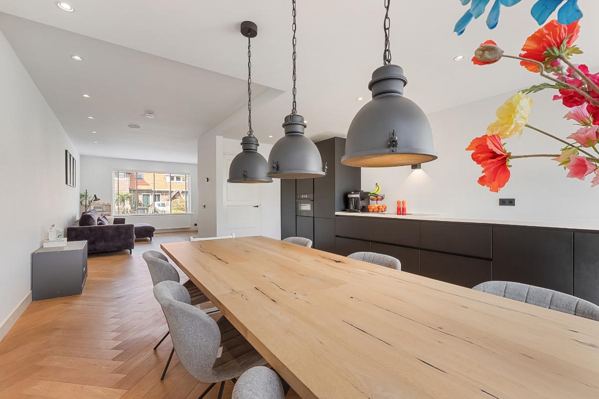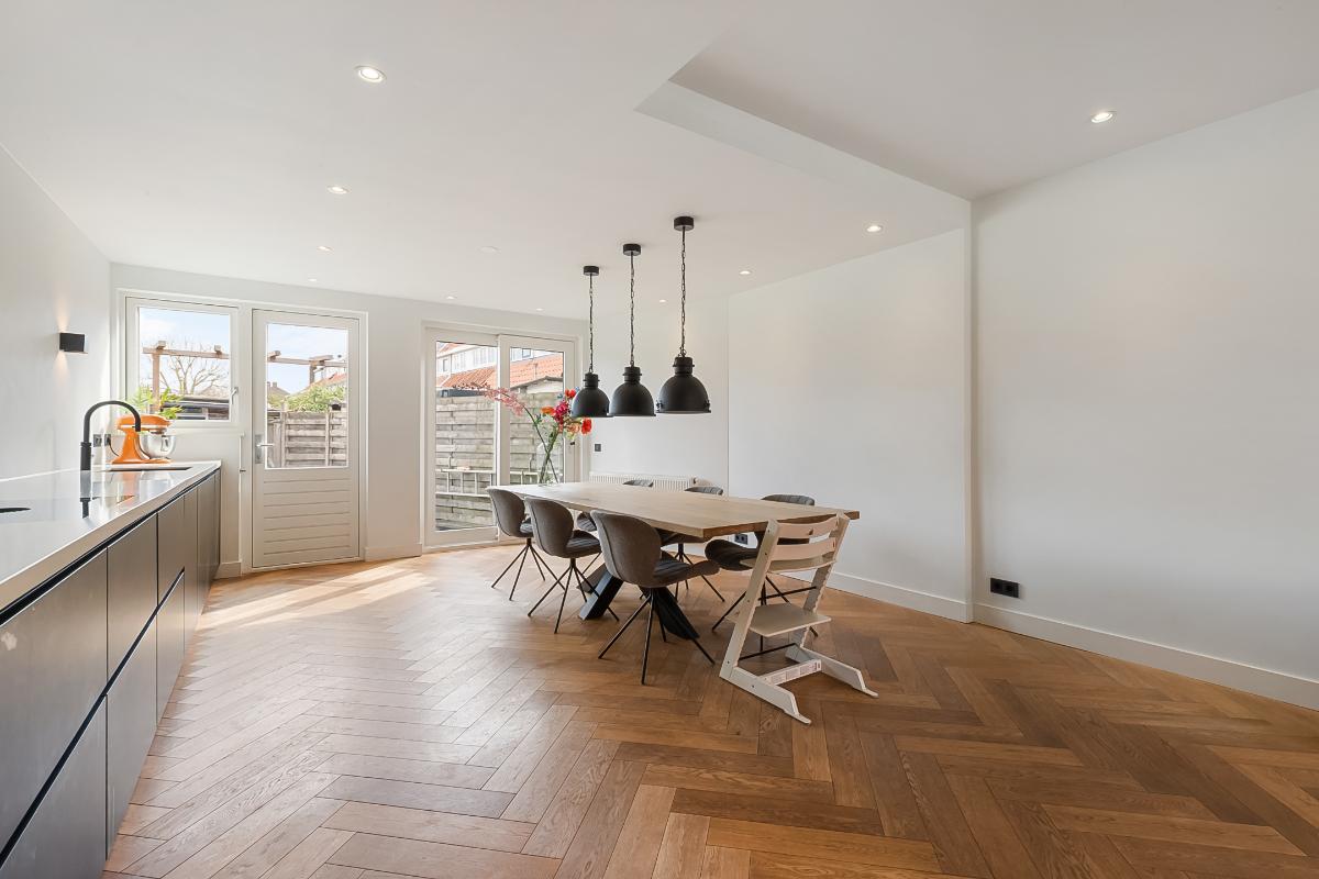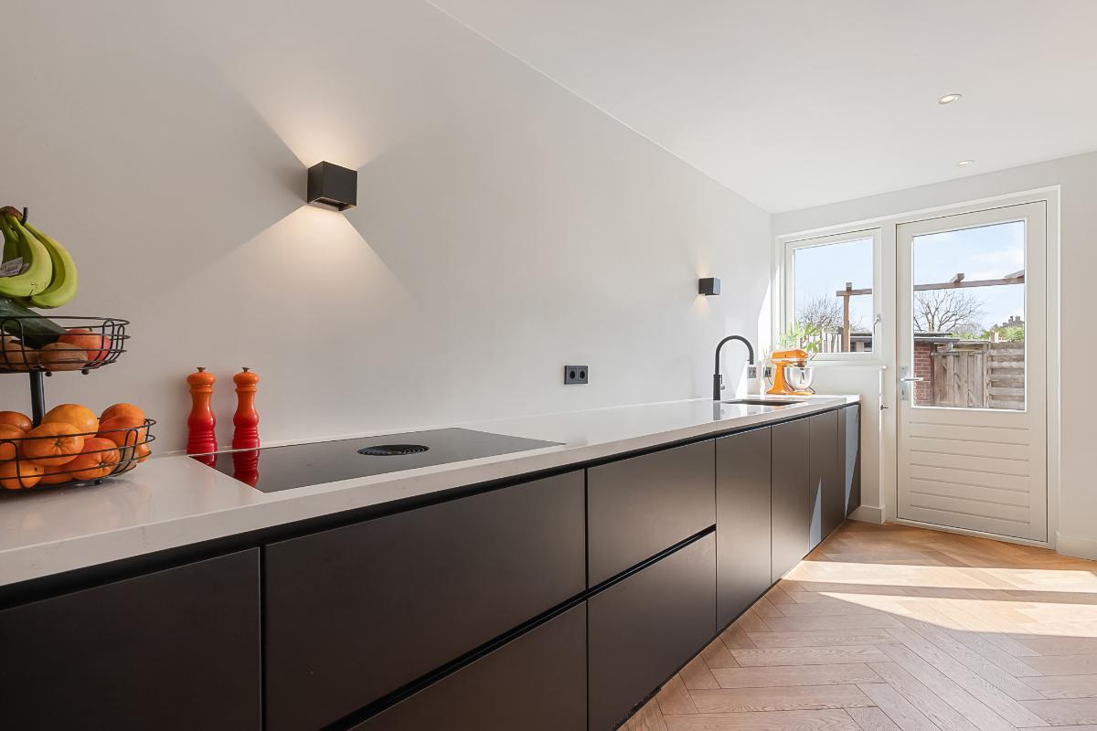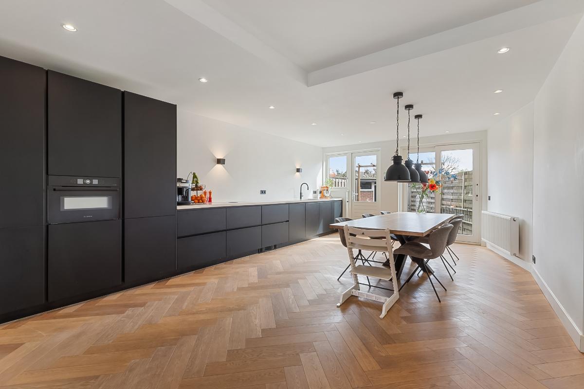 De woonkeuken is spectaculair groot dankzij de uitbouw over de volle breedte van de achtergevel. Luxe en hoogwaardig uitgevoerd met luxe inbouwapparatuur, waaronder 2 vaatwassers, Quooker, Bora inductiekookplaat met geïntegreerde afzuiging, koel-vriescombinatie, combi-oven-magnetron en een mooi licht natuurstenen aanrechtblad. Via een loopdeur én een brede schuifpui bereik je de achtertuin.