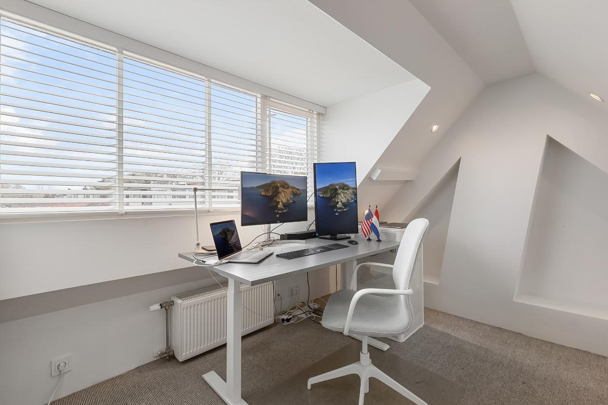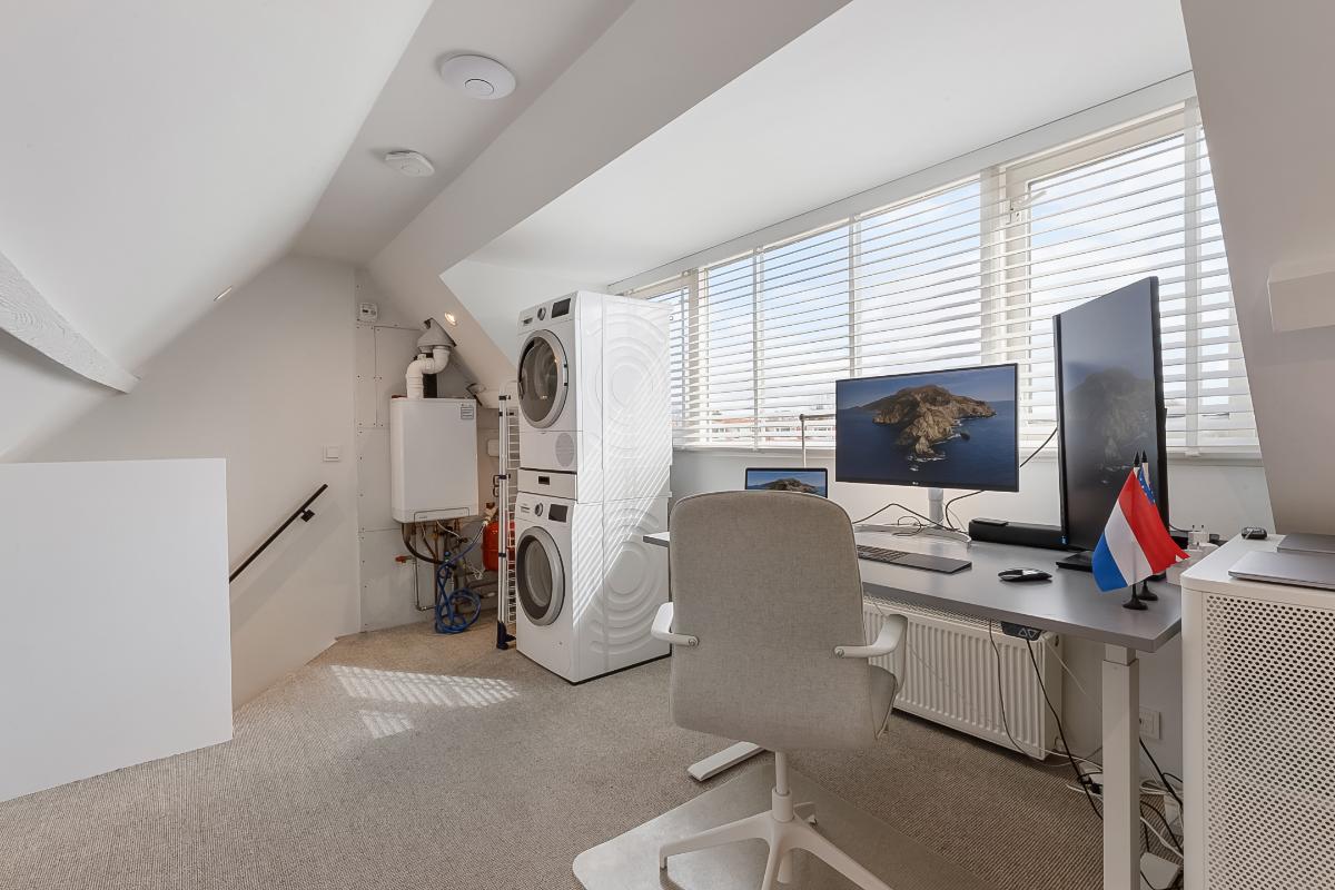 Zolder: Vaste trap naar de zolderverdieping: een multifunctionele ruimte, te gebruiken als werkkamer en/of vierde slaapkamer. Daarnaast de opstelling van de cv-ketel (Intergas HRE, 2022), wasmachine en droger. De grote, volledig geïsoleerde dakkapel zorgt voor veel licht en ruimte.
