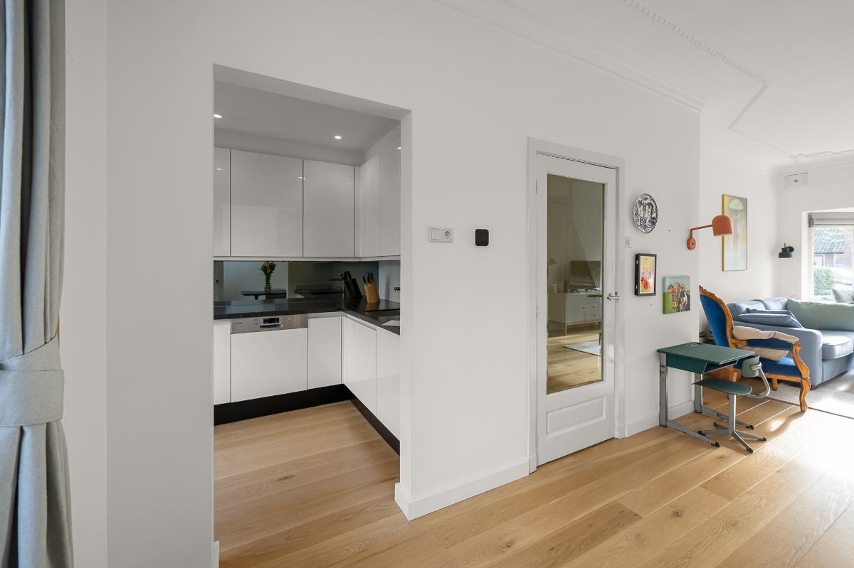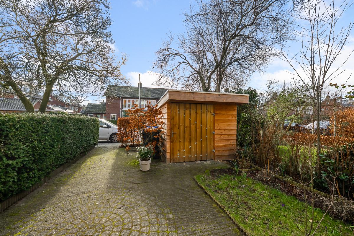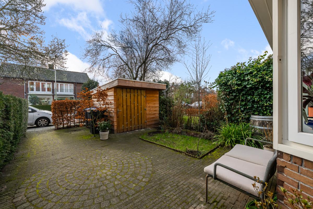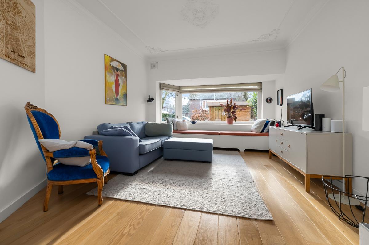 Deze sfeervolle jaren ’30 woning, gelegen op loopafstand van de Naarden-Vesting, is echt zo’n plek waar je je meteen thuis voelt. Diverse voorzieningen liggen om de hoek, net als de uitvalswegen richting Amsterdam, Amersfoort en Utrecht. Via de ruime zonnige voortuin met berging loop je naar de karakteristieke ronde voordeur. Binnen stap je een hoge hal met trapopgang binnen, met een toilet en een ruime trapkast. De gehele begane grond is voorzien van een massieve eikenhouten vloer. De lichte en prettig ingedeelde woon-/eetkamer met ornamentenplafond heeft een karakteristieke erker met een op maat gemaakte erkerbank met opbergruimte, openslaande deuren naar de tuin en een gezellige houtkachel. Aangrenzend ligt de nette halfopen keuken met diverse inbouwapparatuur en toegang tot de zonnige achtertuin met stenen berging, ook bereikbaar via achterom. Op de eerste verdieping bevinden zich drie slaapkamers en een ruime badkamer met inloopdouche, dubbel wastafelmeubel, toilet en toegang tot het balkon. De tweede verdieping biedt twee goede slaapkamers, beide met een dakkapel. In beide kamers zijn voldoende opbergmogelijkheden achter de knieschotten. Verder vind je op deze verdieping een overloop, wasruimte en cv-ruimte. Via de vlizotrap bereik je de vliering.