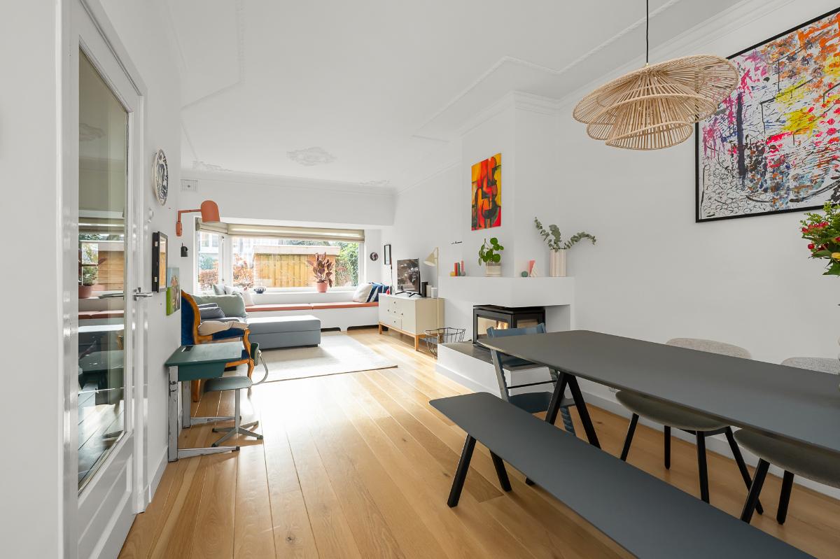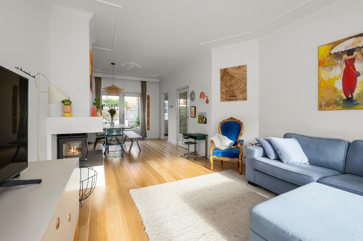 De feiten op een rij • Lichte woon-/eetkamer met op maat gemaakte erkerbank, openslaande deuren en houtkachel. • Halfopen keuken met inbouwapparatuur, zoals een vaatwasser, koelkast, vriezer en combi-oven. • Drie slaapkamers op de eerste verdieping, twee ruime slaapkamers op de tweede verdieping. • Badkamer met dubbel wastafelmeubel, inloopdouche, toilet en toegang tot het balkon. • Aparte wasruimte en cv-ruimte met Remeha ketel (2011). • Slimme Tado-thermostaat. • Originele binnendeuren met glas-in-lood op de verdiepingen. • Grotendeels dubbelglas en gedeeltelijk HR-glas. • Ruime voortuin met berging en achtertuin met berging. • Toplocatie: op loopafstand van de ‘Naarden-Vesting’, horeca, winkels, scholen en parken. • Binnen één minuut op de uitvalswegen A1 richting Amsterdam, Amersfoort en Utrecht.