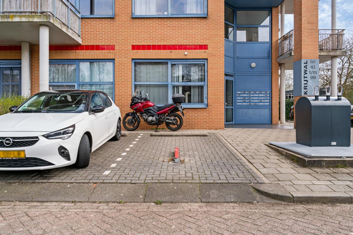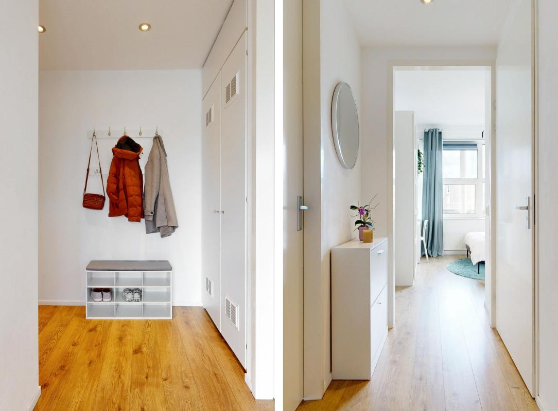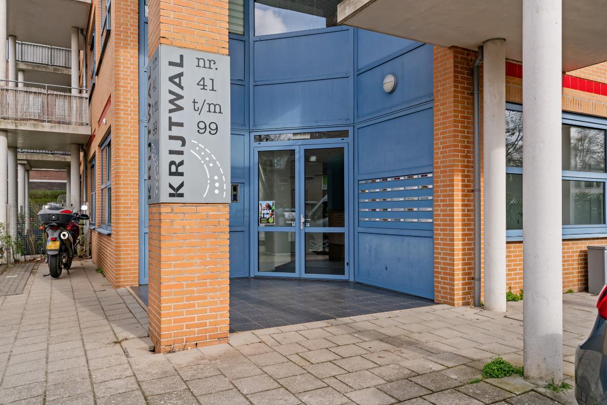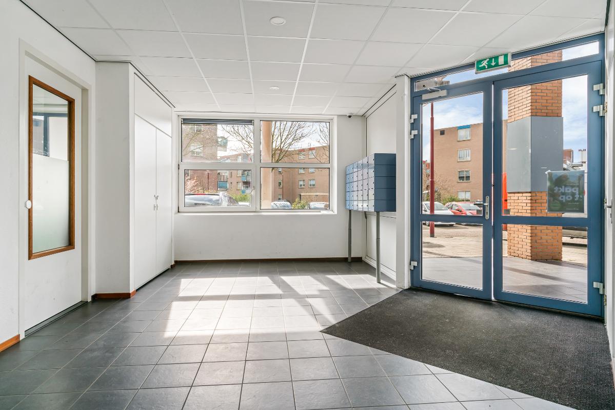 Via de centrale entree met bellentableau, lift, trappenhuis en toegang tot de inpandige gezamenlijke fietsenberging bereik je de eerste verdieping. Hier ligt niet alleen het appartement, maar ook direct je eigen berging. Stap binnen in de hal, welke toegang geeft tot alle vertrekken en waar de meterkast is gesitueerd.