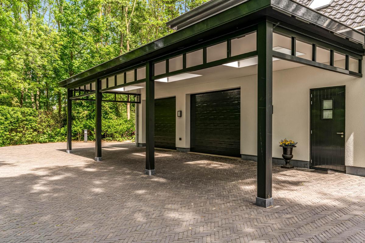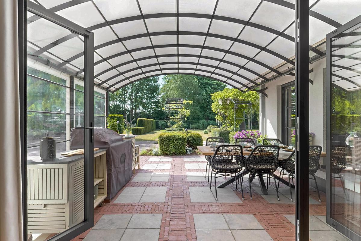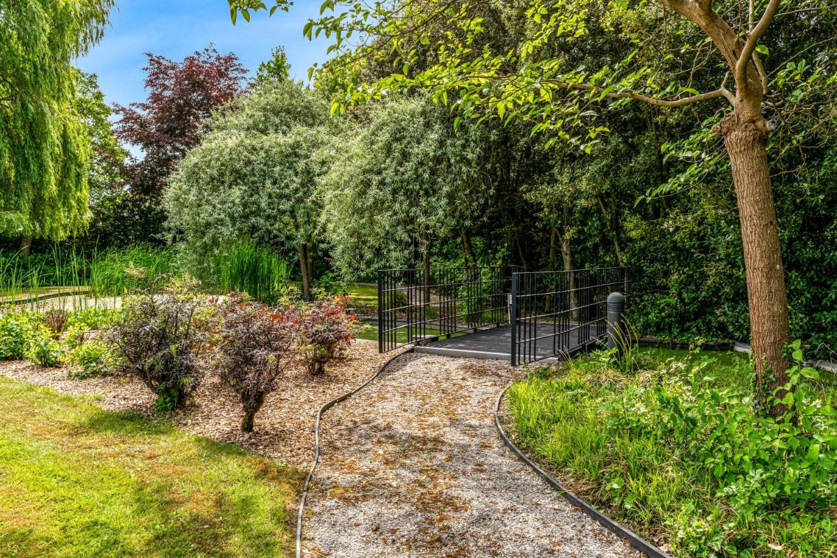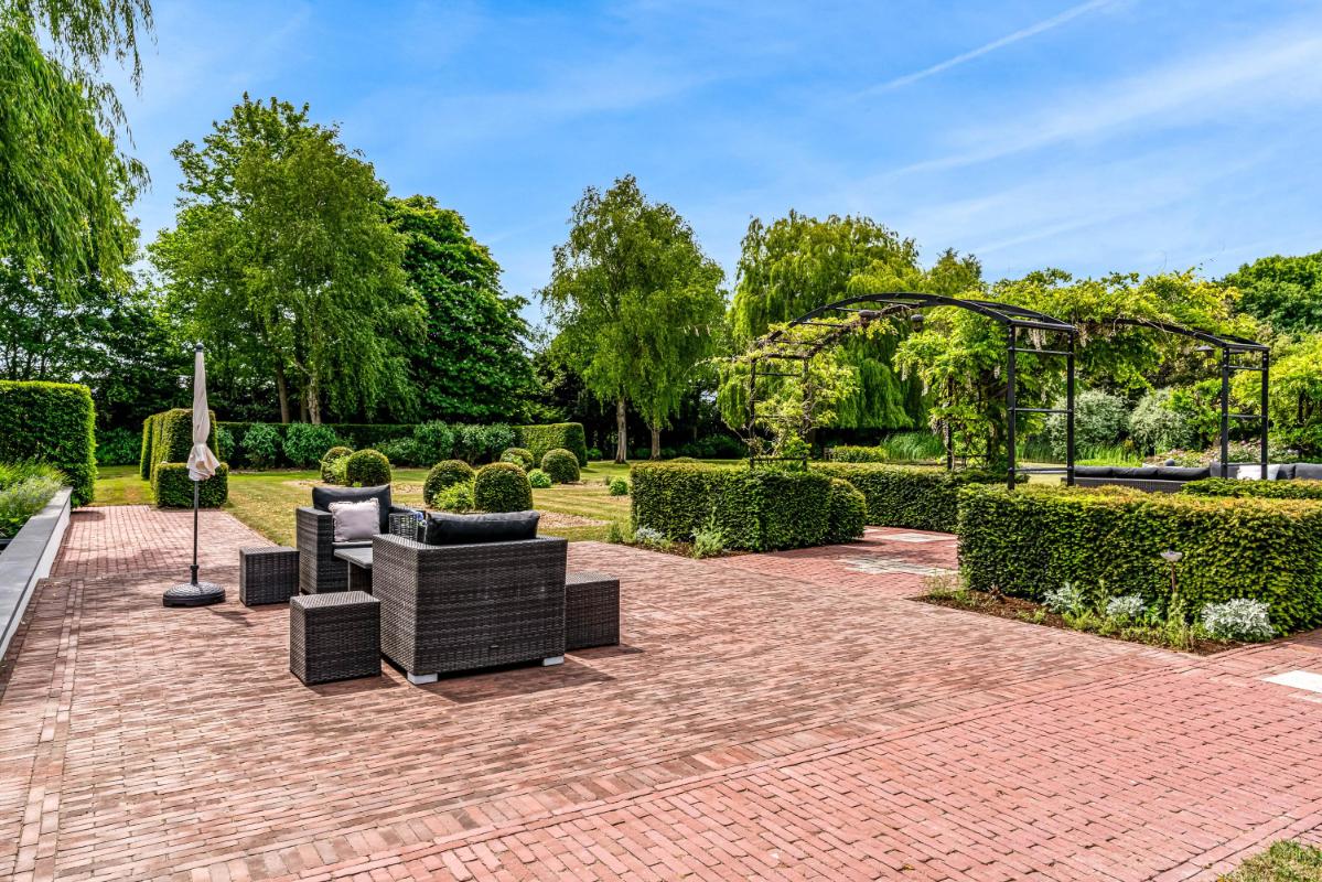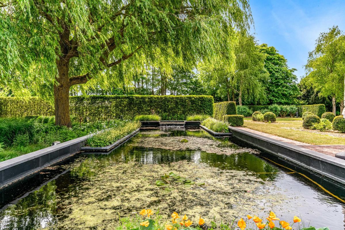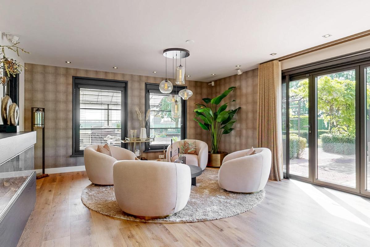Achter de elektrische poort en via de statige oprijlaan ontvouwt zich een zorgvuldig gecomponeerd landschap, ontworpen door tuinarchitect Arend Jan van der Horst. Sierlijke paden, waterpartijen en doordachte zichtlijnen zorgen voor een rustig en samenhangend geheel. Dit is geen tuin, maar een leefomgeving van uitzonderlijk niveau. Ook binnen zet die kwaliteit zich moeiteloos voort. De villa kenmerkt zich door een uitgebalanceerde indeling, royale leefruimtes en een warme, elegante sfeer. De woonkamer met haard en panoramisch tuinzicht, de luxe woonkeuken met kookeiland en harmonicadeuren naar het overdekte terras, en de diverse verblijfsruimtes maken dit een huis dat uitnodigt tot zowel ontspannen als ontvangen. Op de verdieping bevinden zich drie ruime slaapkamers, waaronder een comfortabele master suite met inloopkasten en een balkon op het zuiden. De badkamer is stijlvol en hoogwaardig uitgevoerd en biedt een serene, wellnessachtige beleving.