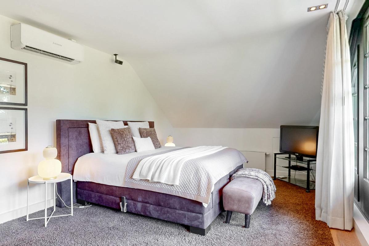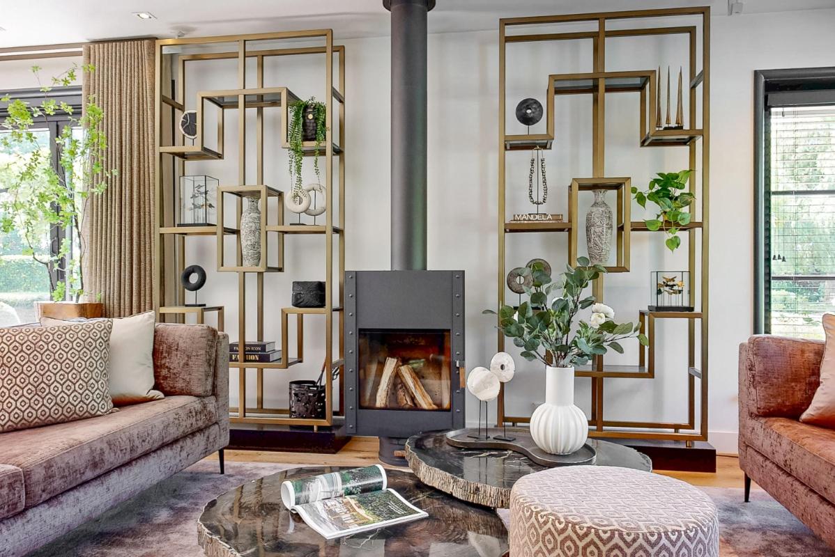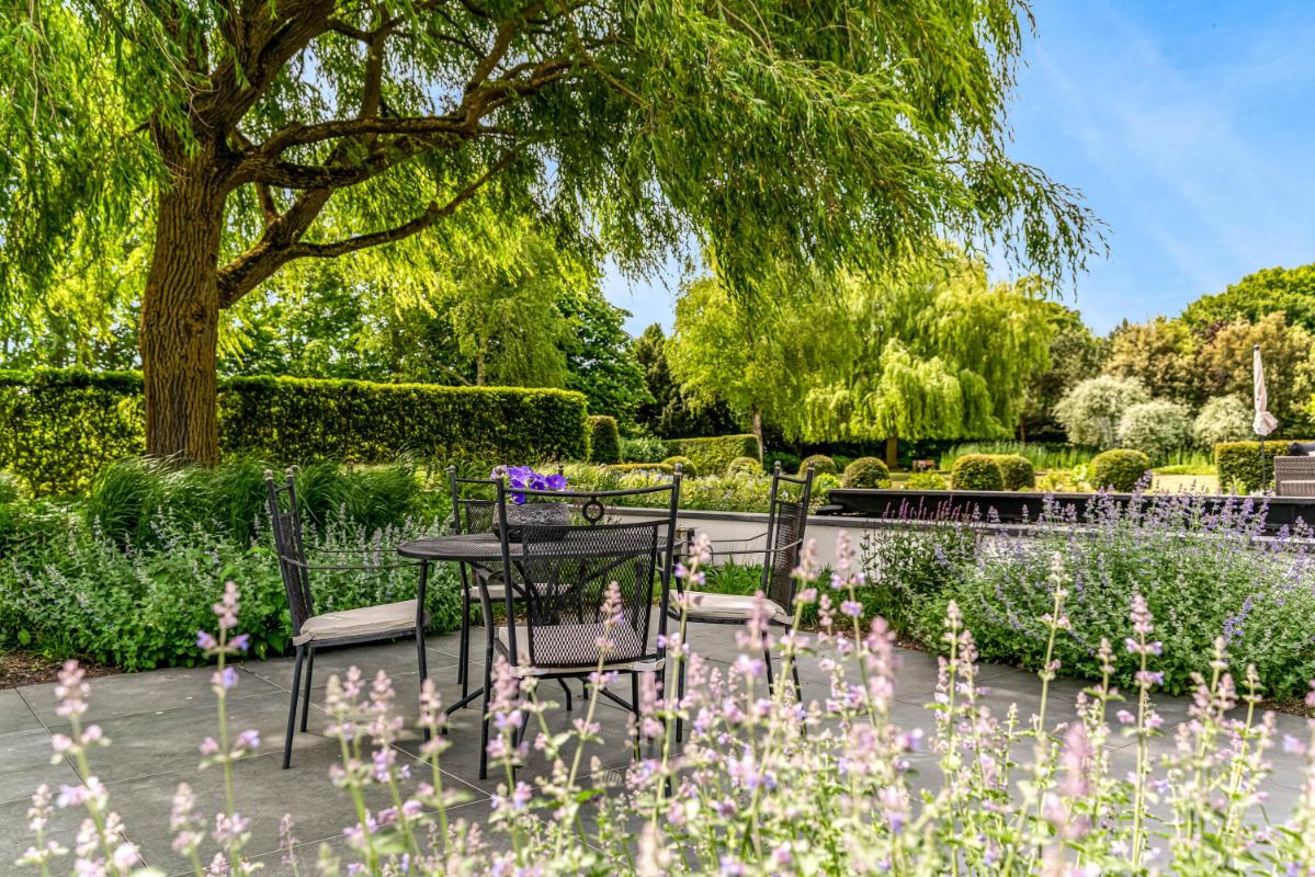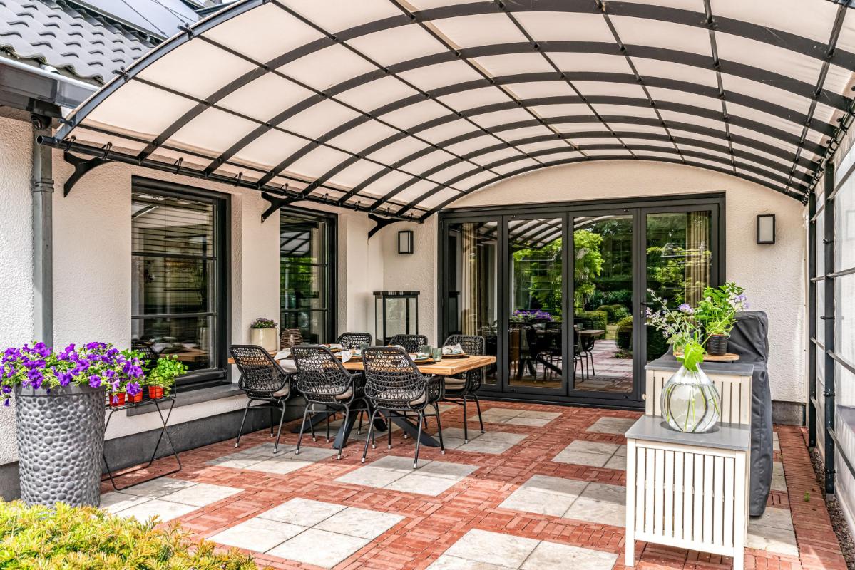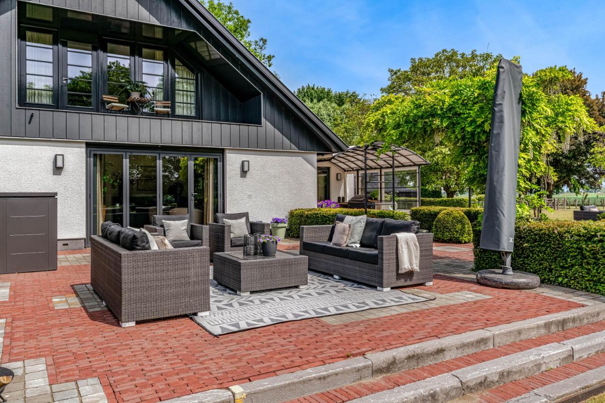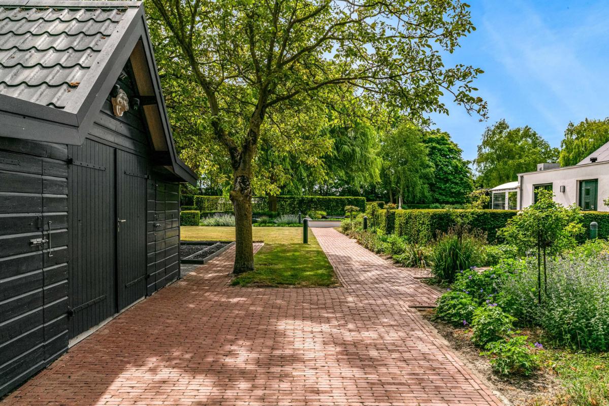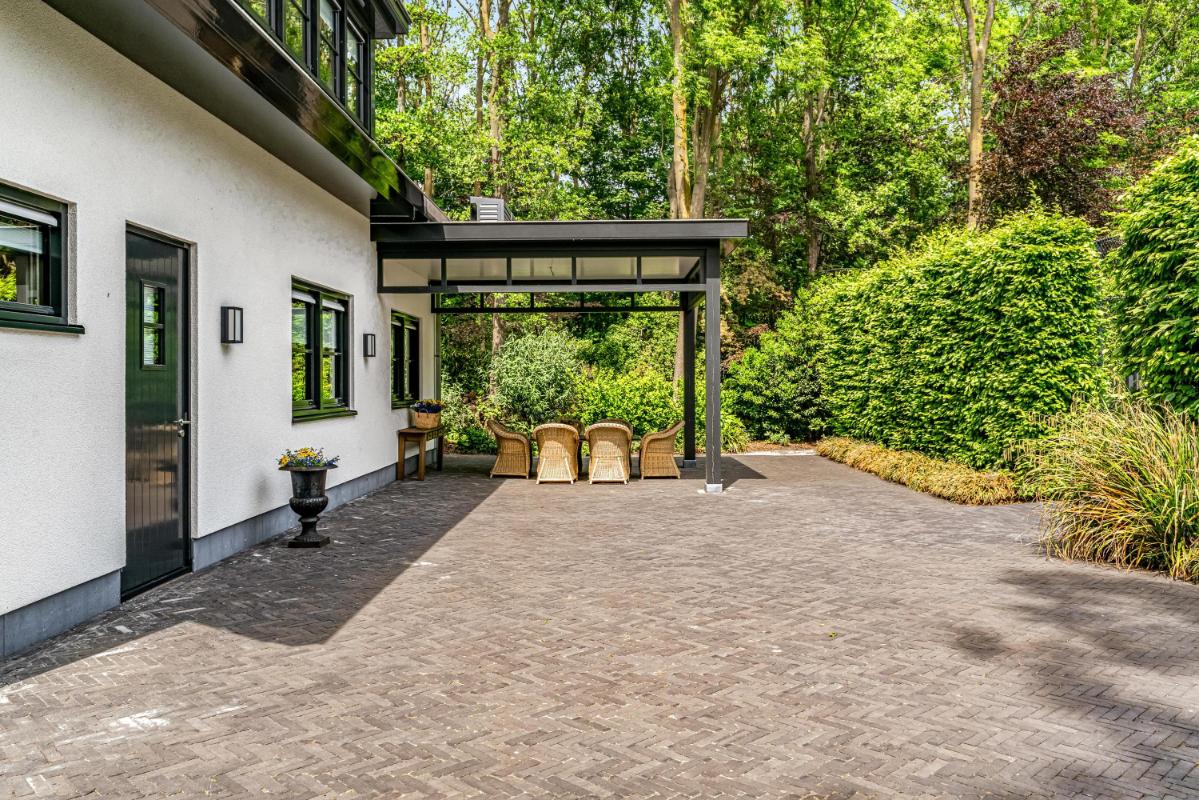 Achter de elektrische poort en via de statige oprijlaan ontvouwt zich een zorgvuldig gecomponeerd landschap, ontworpen door tuinarchitect Arend Jan van der Horst. Sierlijke paden, waterpartijen en doordachte zichtlijnen zorgen voor een rustig en samenhangend geheel. Dit is geen tuin, maar een leefomgeving van uitzonderlijk niveau. Ook binnen zet die kwaliteit zich moeiteloos voort. De villa kenmerkt zich door een uitgebalanceerde indeling, royale leefruimtes en een warme, elegante sfeer. De woonkamer met haard en panoramisch tuinzicht, de luxe woonkeuken met kookeiland en harmonicadeuren naar het overdekte terras, en de diverse verblijfsruimtes maken dit een huis dat uitnodigt tot zowel ontspannen als ontvangen. Op de verdieping bevinden zich drie ruime slaapkamers, waaronder een comfortabele master suite met inloopkasten en een balkon op het zuiden. De badkamer is stijlvol en hoogwaardig uitgevoerd en biedt een serene, wellnessachtige beleving.