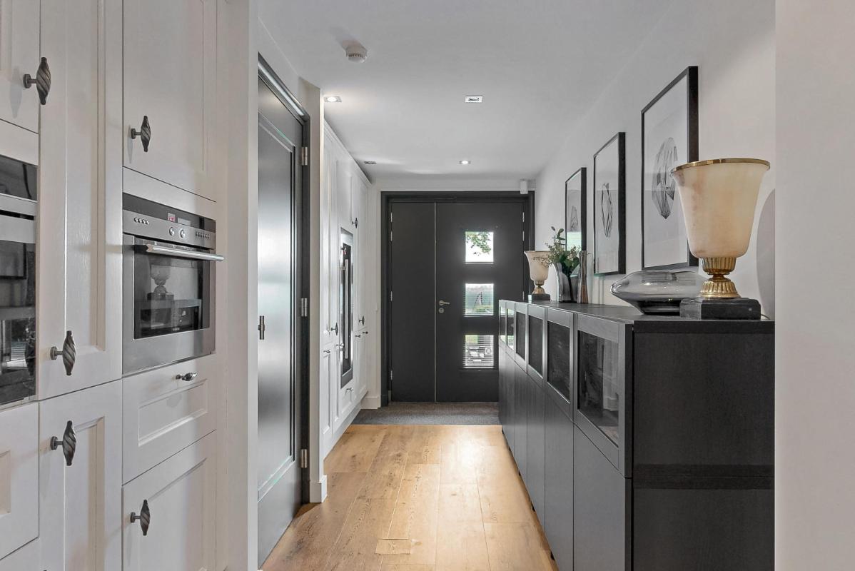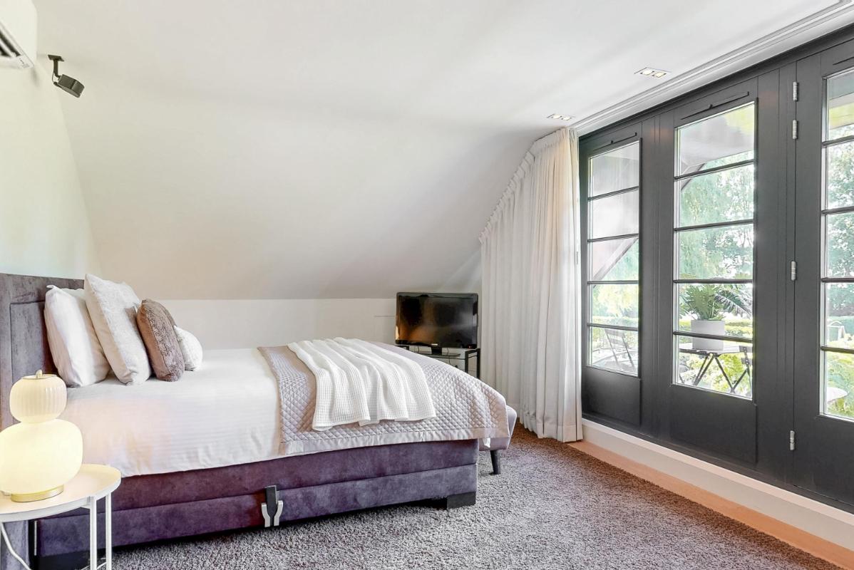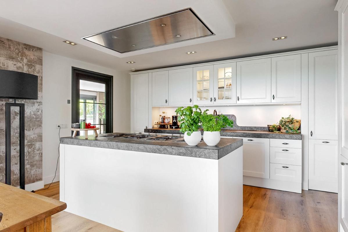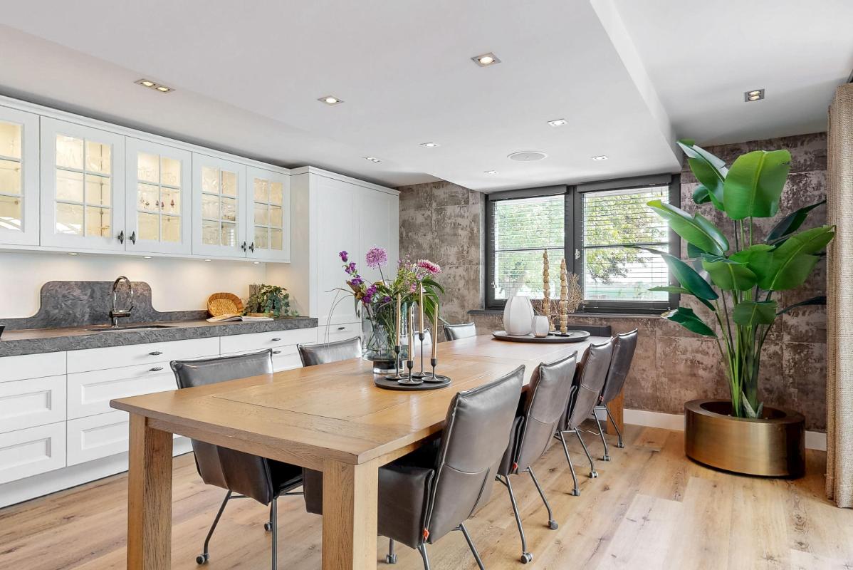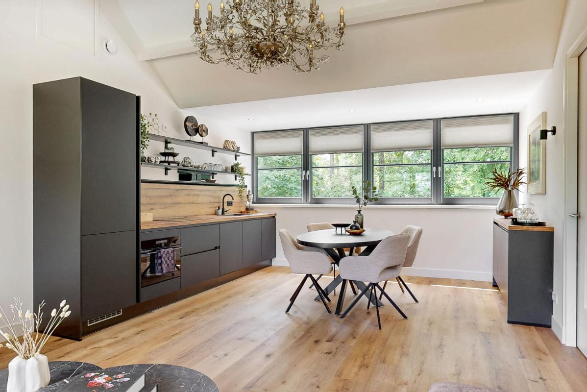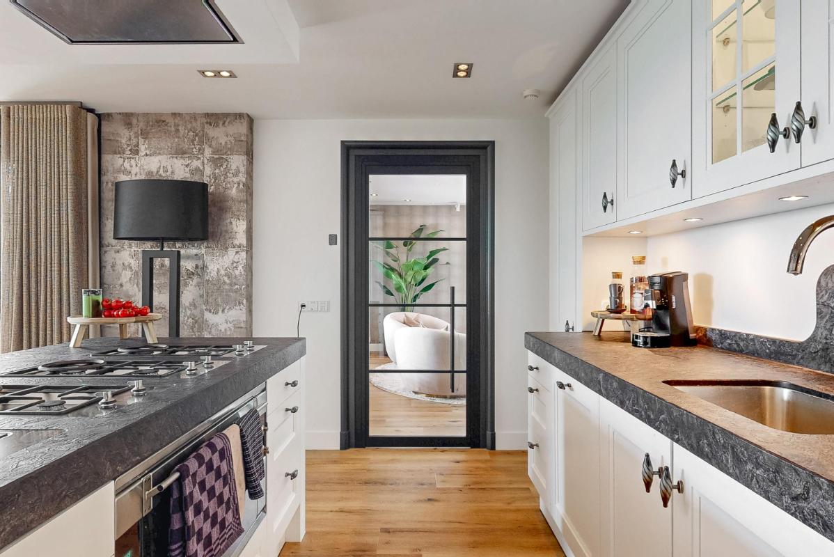 Achter de elektrische poort en via de statige oprijlaan ontvouwt zich een zorgvuldig gecomponeerd landschap, ontworpen door tuinarchitect Arend Jan van der Horst. Sierlijke paden, waterpartijen en doordachte zichtlijnen zorgen voor een rustig en samenhangend geheel. Dit is geen tuin, maar een leefomgeving van uitzonderlijk niveau. Ook binnen zet die kwaliteit zich moeiteloos voort. De villa kenmerkt zich door een uitgebalanceerde indeling, royale leefruimtes en een warme, elegante sfeer. De woonkamer met haard en panoramisch tuinzicht, de luxe woonkeuken met kookeiland en harmonicadeuren naar het overdekte terras, en de diverse verblijfsruimtes maken dit een huis dat uitnodigt tot zowel ontspannen als ontvangen. Op de verdieping bevinden zich drie ruime slaapkamers, waaronder een comfortabele master suite met inloopkasten en een balkon op het zuiden. De badkamer is stijlvol en hoogwaardig uitgevoerd en biedt een serene, wellnessachtige beleving.