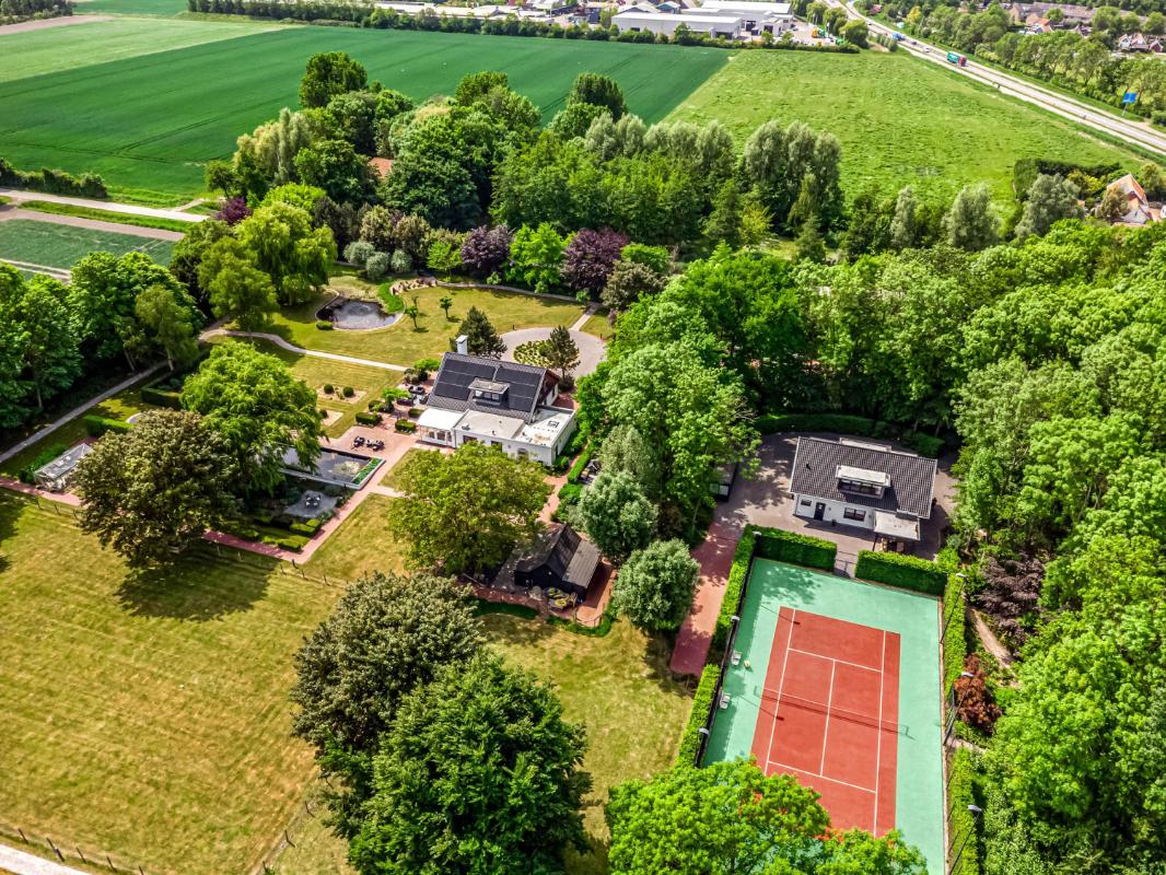 ALLE FEITEN OP EEN RIJ: - Exclusieve vrijstaande villa met bijgebouw, samen ca. 340 m² woonoppervlakte; - Gelegen op een immens perceel van 20.000 m², volledig eigendom; - Voorzien van 25 zonnepanelen en pvc-vloer met vloerverwarming benedenverdieping woonhuis; - Zeer uitgebreid domoticasysteem voor woonhuis en tuin; - Hoogwaardige afwerking en sfeervolle woonkamer met haard en tuinzicht; - Luxe woonkeuken met kookeiland, airconditioning, harmonicadeuren en toegang tot overdekt terras; - Zit-/werkkamer, bijkeuken en extra leefruimte met keukenblok en badkamer; - Drie slaapkamers op de verdieping, waarvan twee met inbouwkasten; - Masterbedroom met twee inloopkasten en balkon met tuinzicht; - Luxe badkamer en separaat toilet; - Meerdere terrassen, waaronder een overkapt terras aansluitend op woonkeuken en een zitje aan het water; - Riant bijgebouw (2024) met multifunctionele begane grond en zelfstandige woonverdieping; - Het bijgebouw heeft vloerverwarming en airconditioning in alle ruimten boven en is gebouwd volgens de hoogste isolatiewaarden; - Overdekt terras bij bijgebouw met uitzicht op privétennisbaan (met verlichting); - Onder architectuur aangelegde parkachtige tuin - voorzien van tuinberegeningssysteem - met vijver, speeltuin, wandelpaden en bruggetjes; - Vrijstaande schuur met overkapping en ruimte voor opslag of hobbydieren; - Royale plantenkas en meerdere zitplekken verspreid over het perceel; - Toegang via privébrug met elektrische poort en lange oprijlaan; - Ruime parkeergelegenheid op eigen terrein; - Gelegen in een rustige, groene omgeving met optimale privacy – wonen op topniveau!