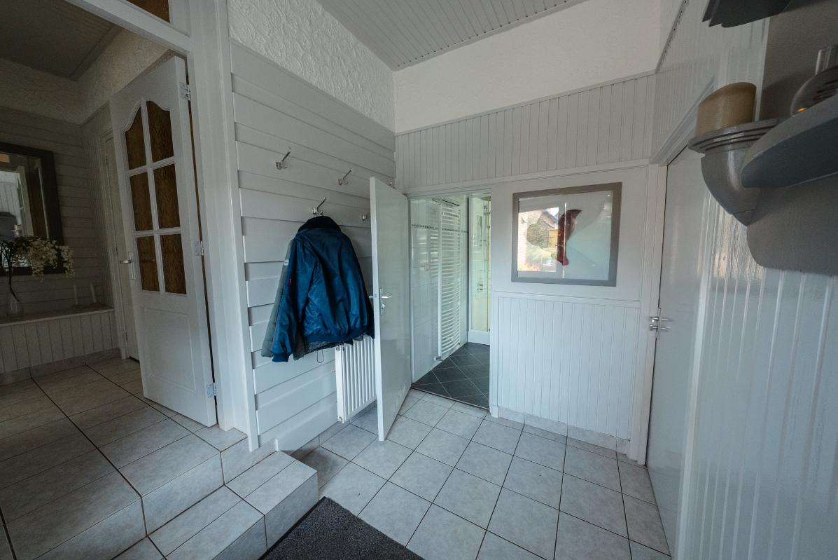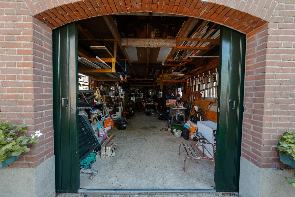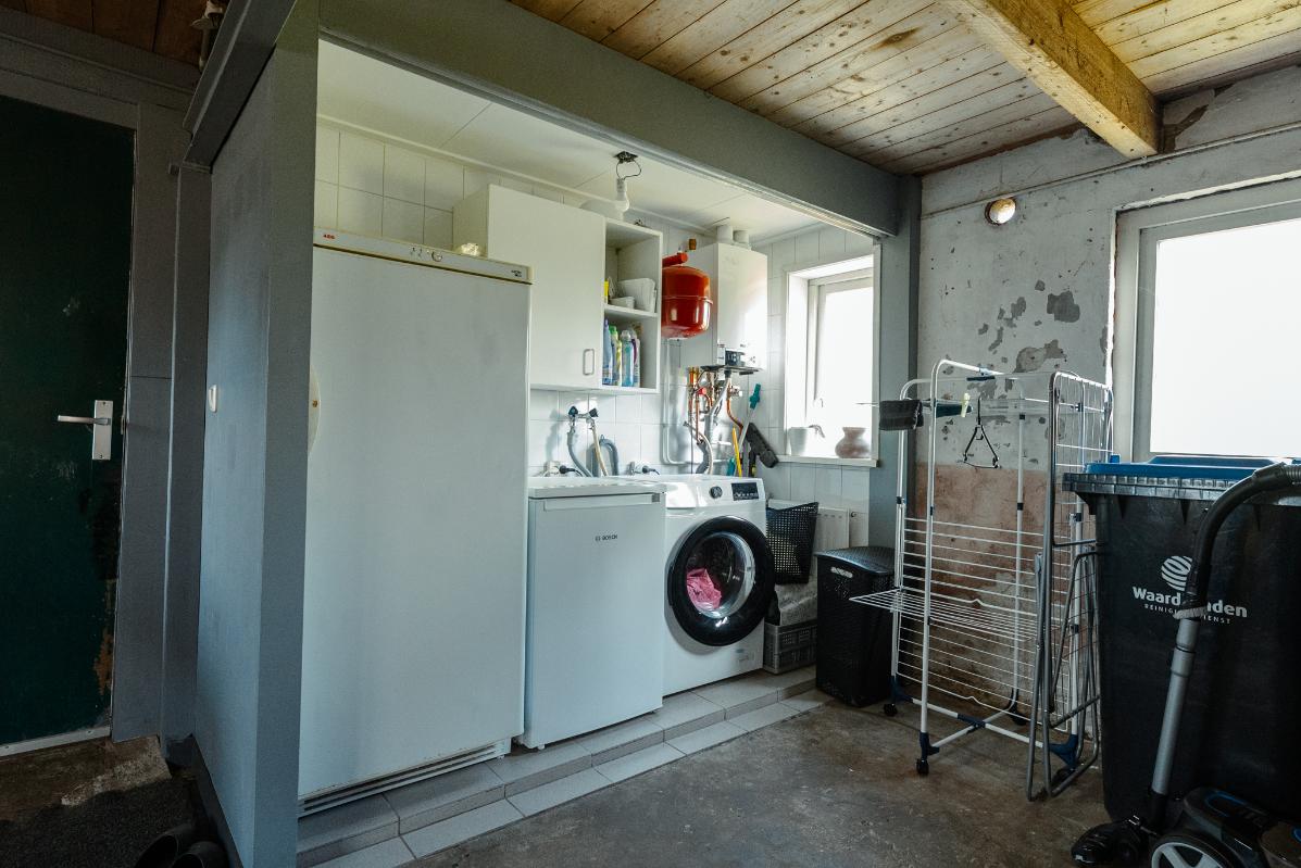 De schuur is binnendoor bereikbaar en biedt extra bergruimte , een loopdeur naar buiten en toegang tot de praktische bijkeuken.