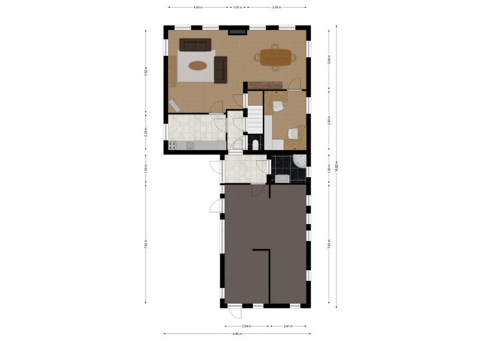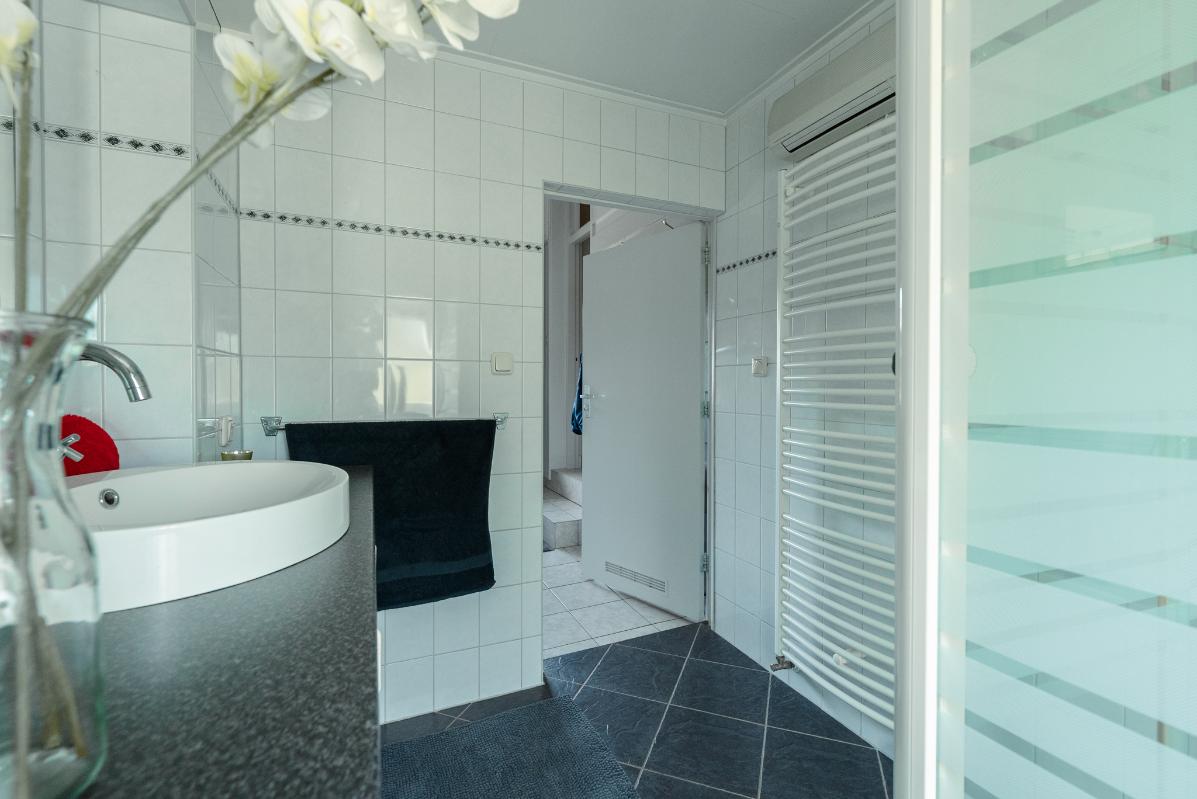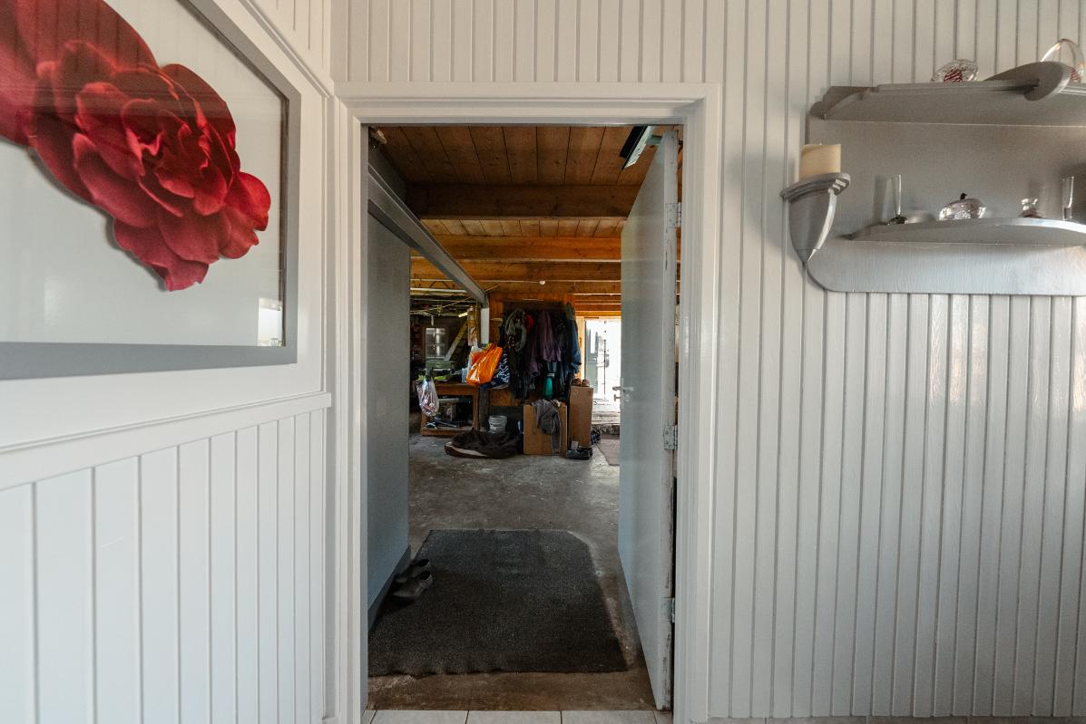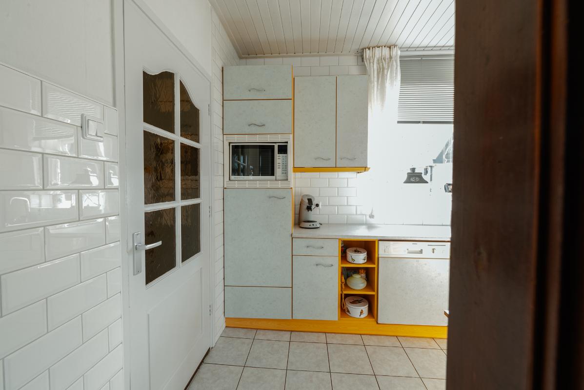 De schuur is binnendoor bereikbaar en biedt extra bergruimte , een loopdeur naar buiten en toegang tot de praktische bijkeuken.