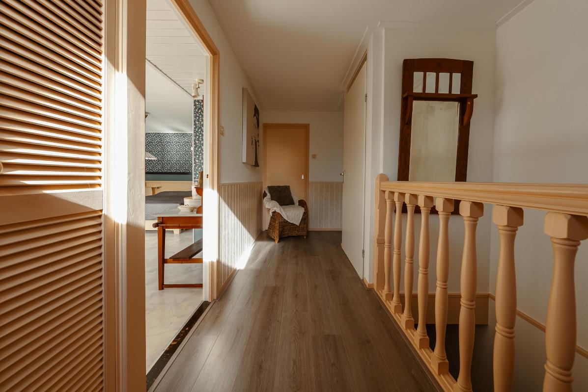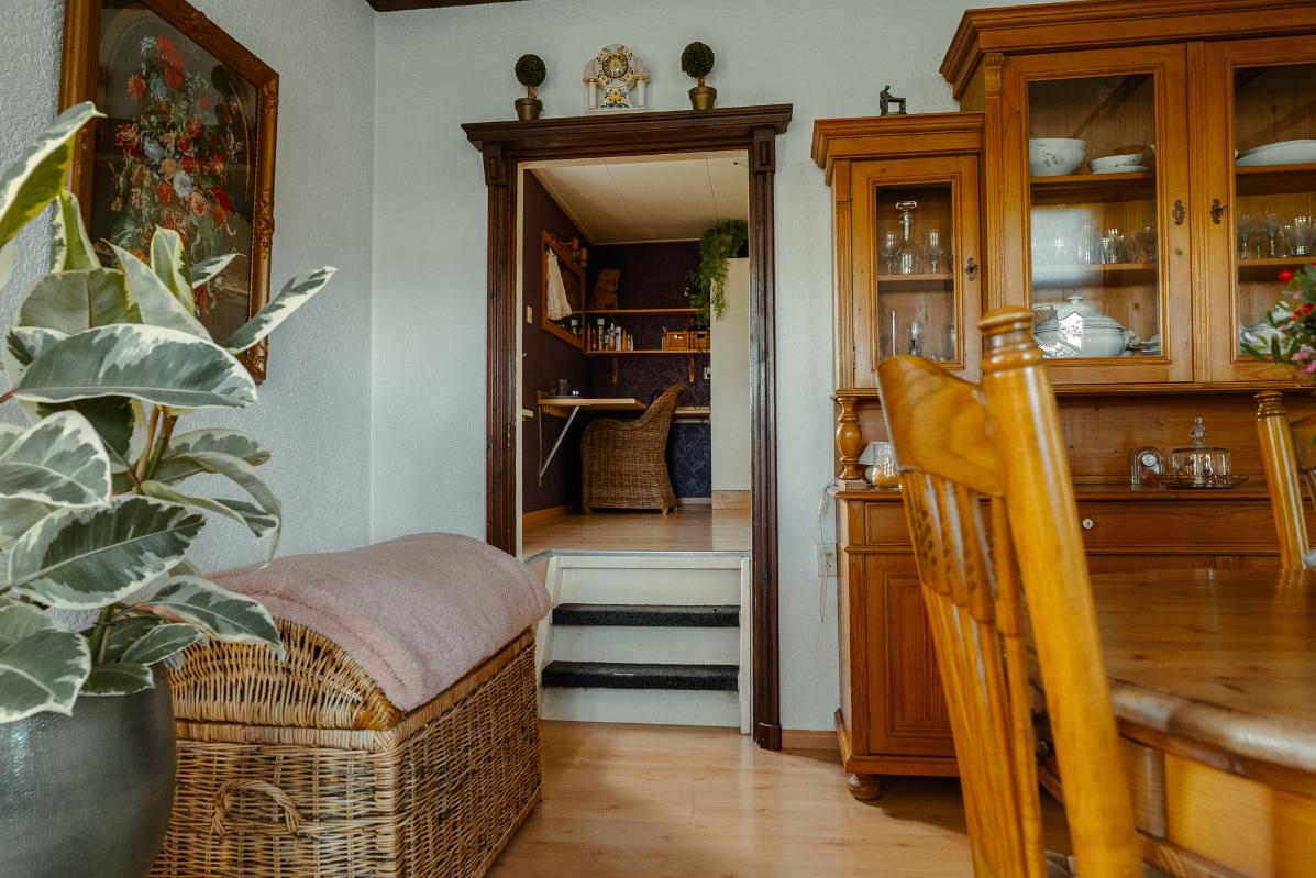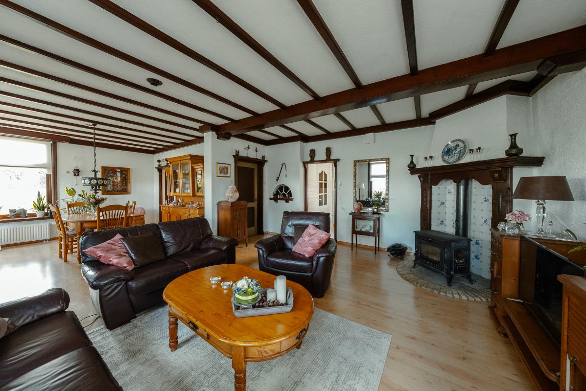 Indeling Begane grond U komt binnen via de hal met toegang tot het separate toilet, kelder en de badkamer, voorzien van douche en wastafel. De gesloten keuken beschikt over inbouwapparatuur. Aansluitend is er een royale woonkamer met zithoek, houtkachel en eetgedeelte wat een prettig uitzicht biedt op het omliggende landschap. Aangrenzend aan de woonkamer vindt u de opkamer.