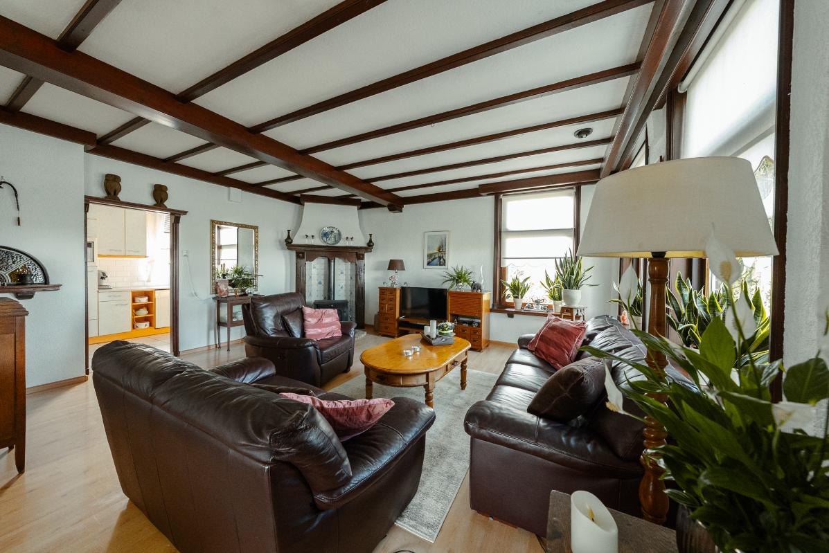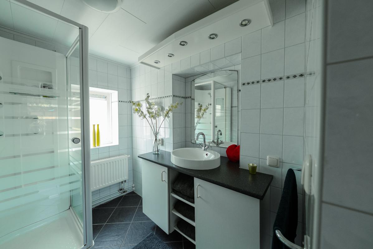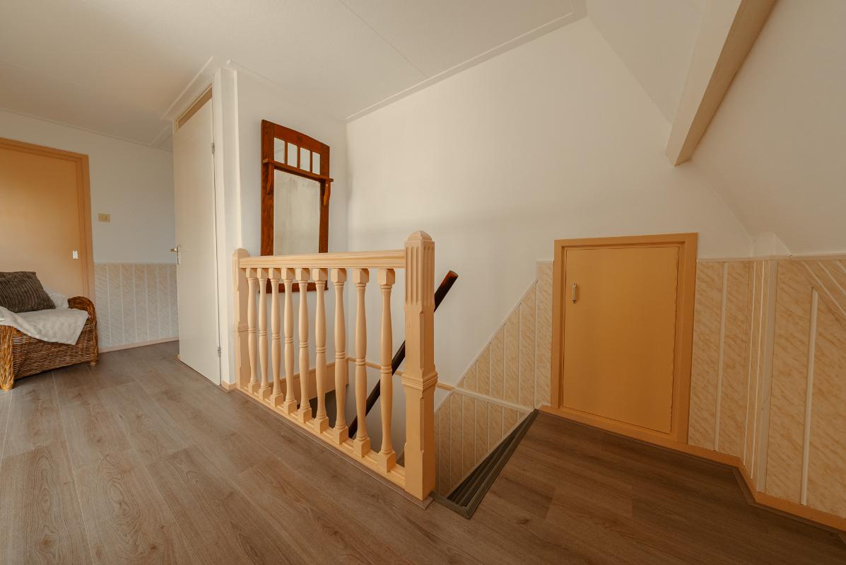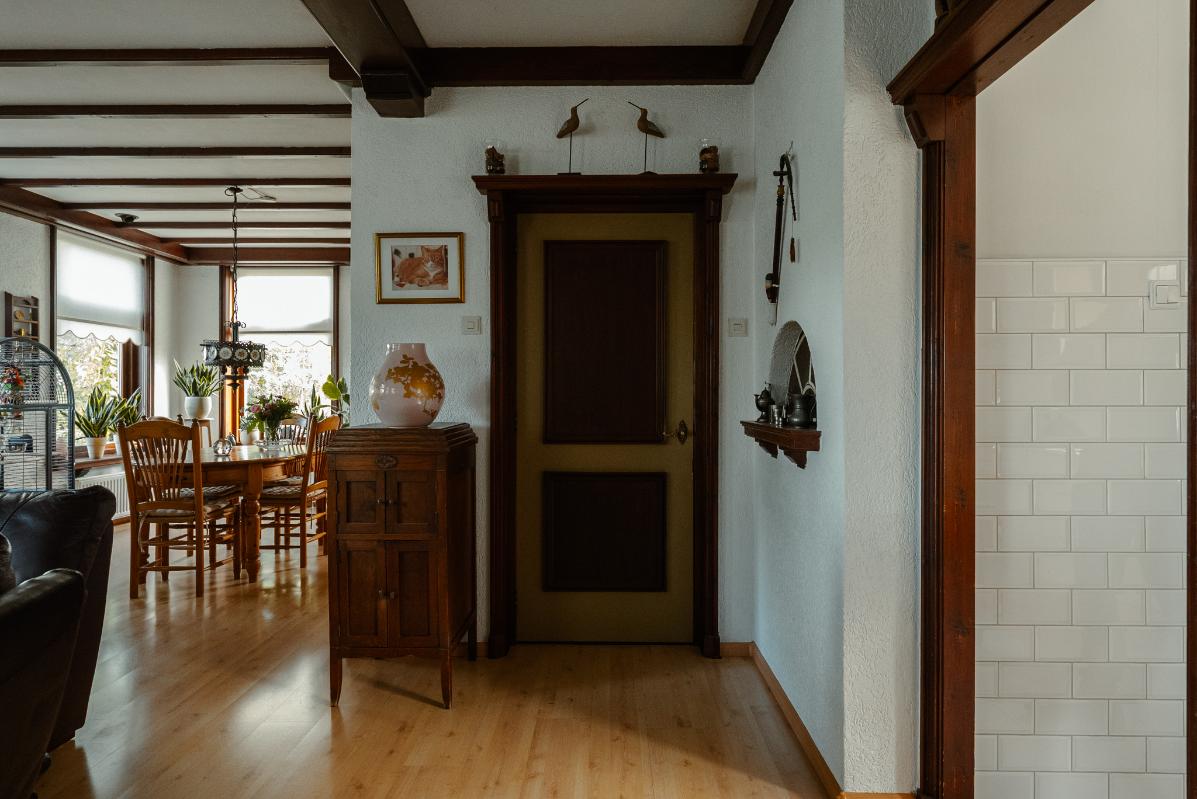 Indeling Begane grond U komt binnen via de hal met toegang tot het separate toilet, kelder en de badkamer, voorzien van douche en wastafel. De gesloten keuken beschikt over inbouwapparatuur. Aansluitend is er een royale woonkamer met zithoek, houtkachel en eetgedeelte wat een prettig uitzicht biedt op het omliggende landschap. Aangrenzend aan de woonkamer vindt u de opkamer.