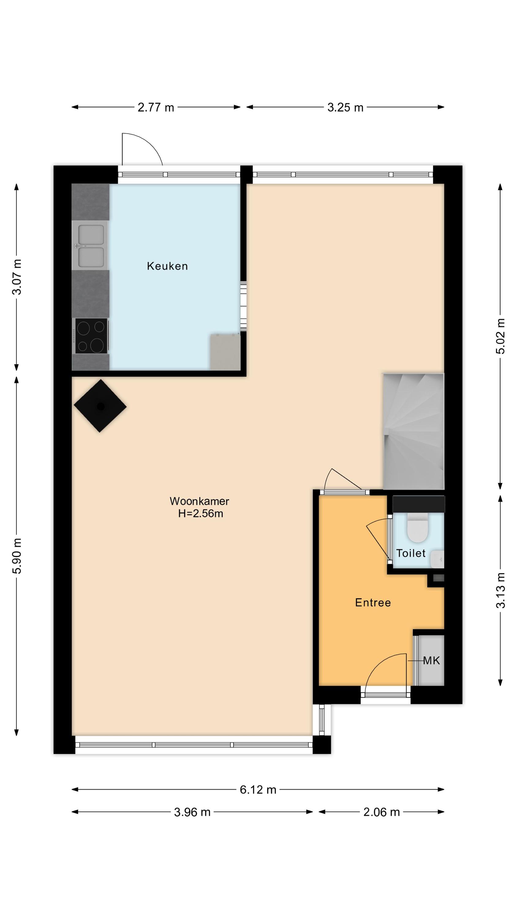 INDELING Begane grond: vanuit de hal, met ruimte voor uw garderobe, heeft u toegang tot het toilet met fonteintje, de meterkast en de woonkamer. De lichte woonkamer straalt veel sfeer uit dankzij de aanwezige erker, de speelse indeling en de houtkachel. De grote raampartijen zorgen bovendien voor veel lichtinval. Via een toog bereikt u de dichte keuken. Deze is uitgevoerd in een rechte opstelling met een neutrale kleurstelling en is voorzien van diverse inbouwapparatuur, waaronder een koel-vriescombinatie, oven, magnetron, inductiekookplaat en vaatwasser.