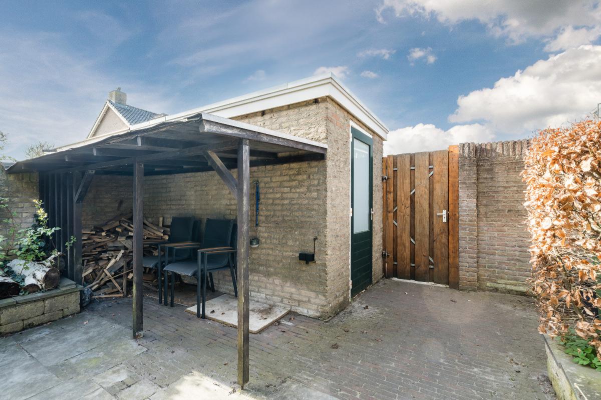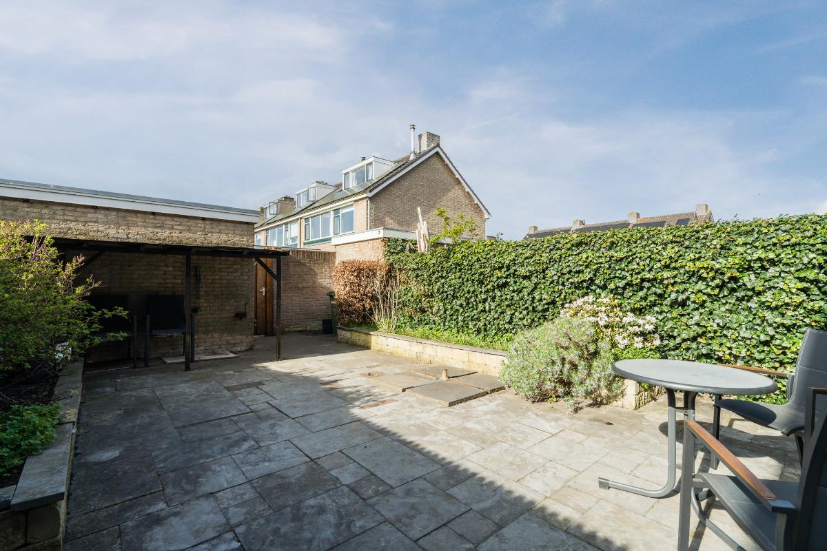 Vanuit de keuken heeft u via een loopdeur toegang tot de tuin. De zonnige achtertuin is gunstig gelegen en voorzien van sierbestrating, borders met groen, een vrijstaande stenen berging en een achterom. Een uitvalscherm zorgt voor schaduw op warme dagen.