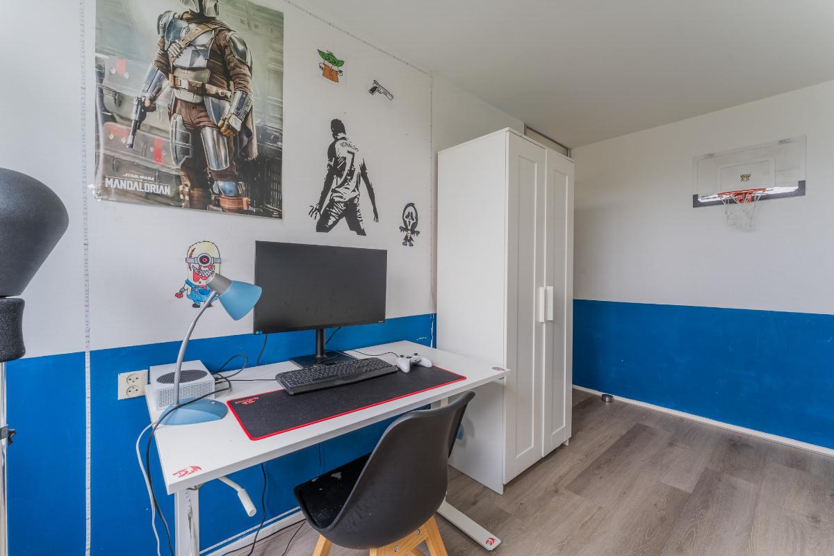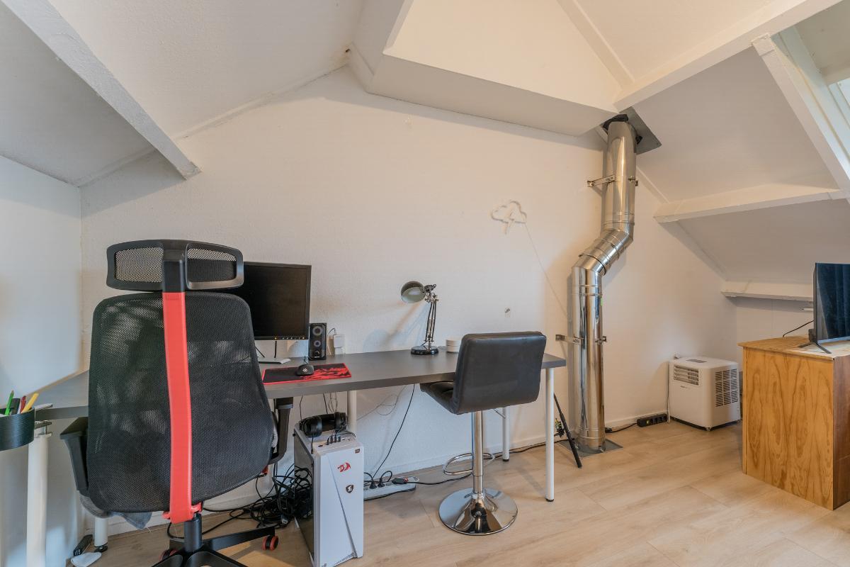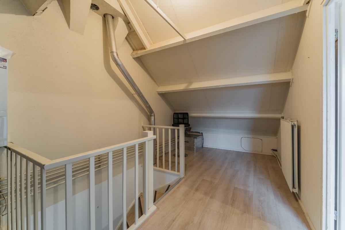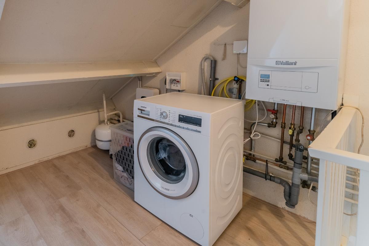 Tweede verdieping: via een vaste trap bereikt u de tweede verdieping. Op de voorzolder vindt u de cv-installatie (Vaillant, 2019) en de aansluiting voor de wasmachine. Daarnaast bevindt zich hier een royale vierde slaapkamer, voorzien van een dakkapel en een dakraam. Extra bergruimte is gecreëerd achter de knieschotten.