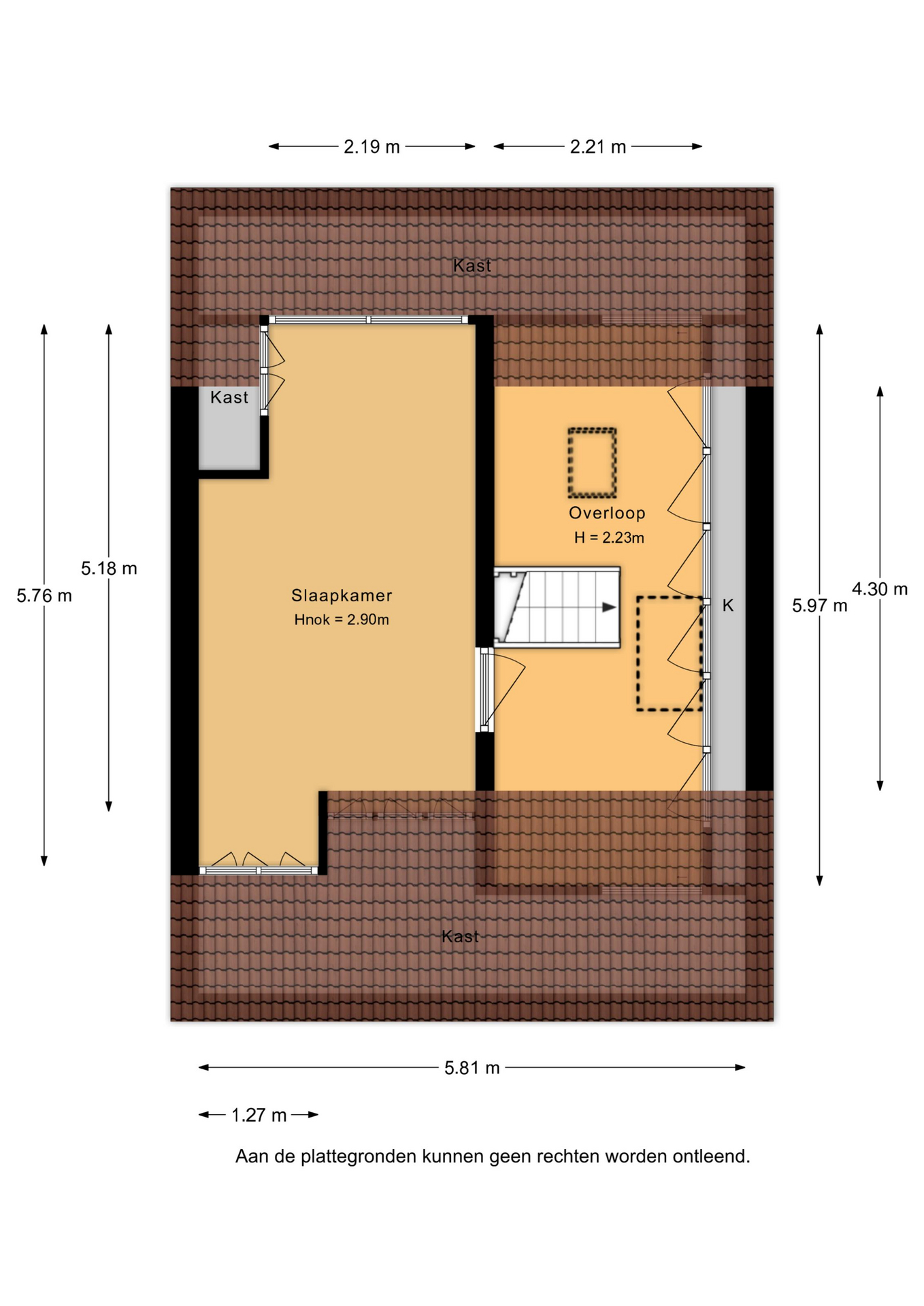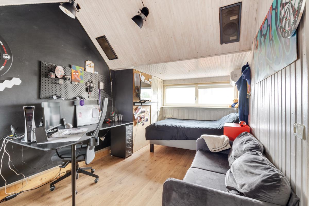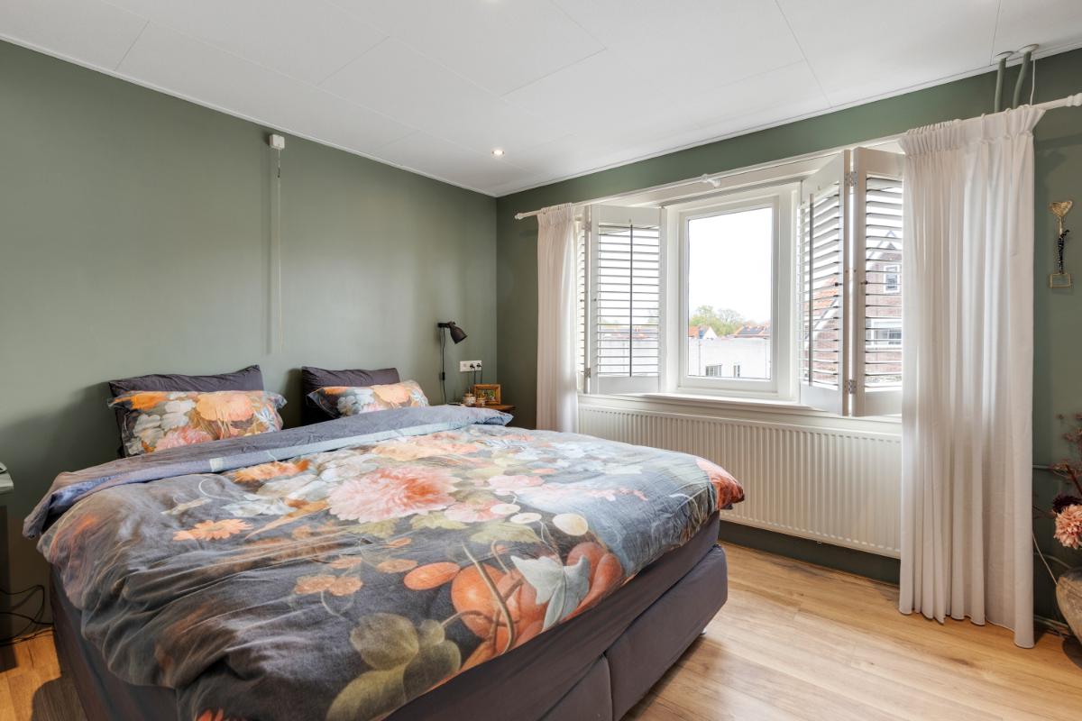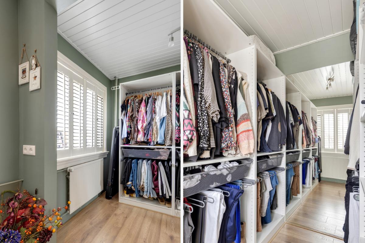 Tweede verdieping: via een vaste trap bereik je de tweede verdieping. Op de voorzolder vind je een kastenwand en een luik naar de vliering. De ruime zolderkamer is een volwaardige slaapkamer met een nokhoogte van circa 2,90 meter. Dankzij de dakkapellen aan beide zijden is er veel licht en ruimte ontstaan. Achter de knieschotten is praktische bergruimte aanwezig.