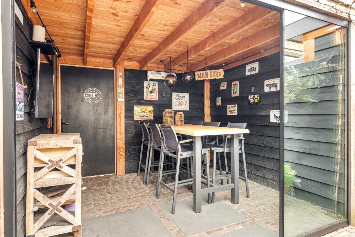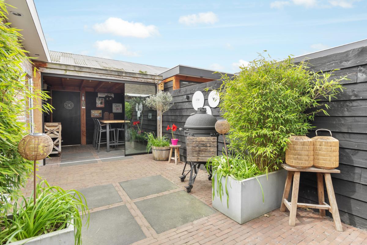 Tuin: de achtertuin is een absolute plus: gelegen op het westen, dus volop zon in de middag en avond. Achterin de tuin vind je een fraaie overkapping die volledig afsluitbaar is met glazen schermen, een heerlijke plek om het hele jaar door te genieten. Ook is een achterom aanwezig. Daarnaast is er een aangebouwde stenen berging, geïsoleerd en voorzien van elektra, verwarming en wateraansluiting. Extra handig is de vliering die bereikbaar is via de naastgelegen berging.