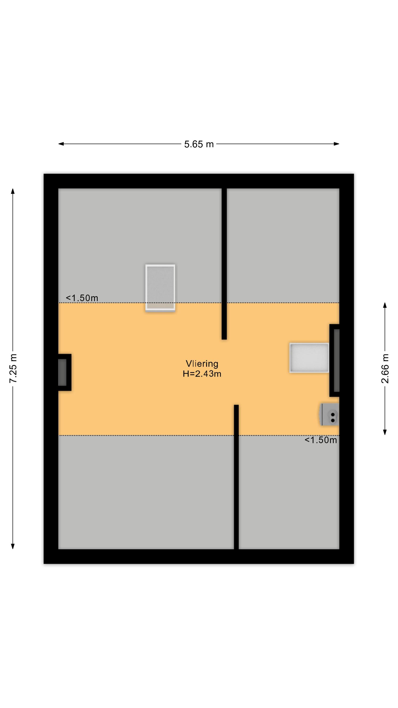 Tweede verdieping: middels een steile losse trap bereikbare bergzolder met klein dakraampje. De nokhoogte bedraagt ca 2,40 m.