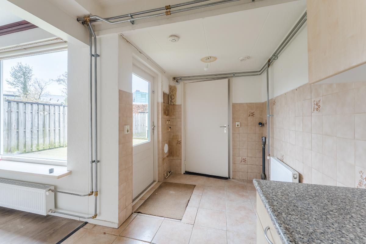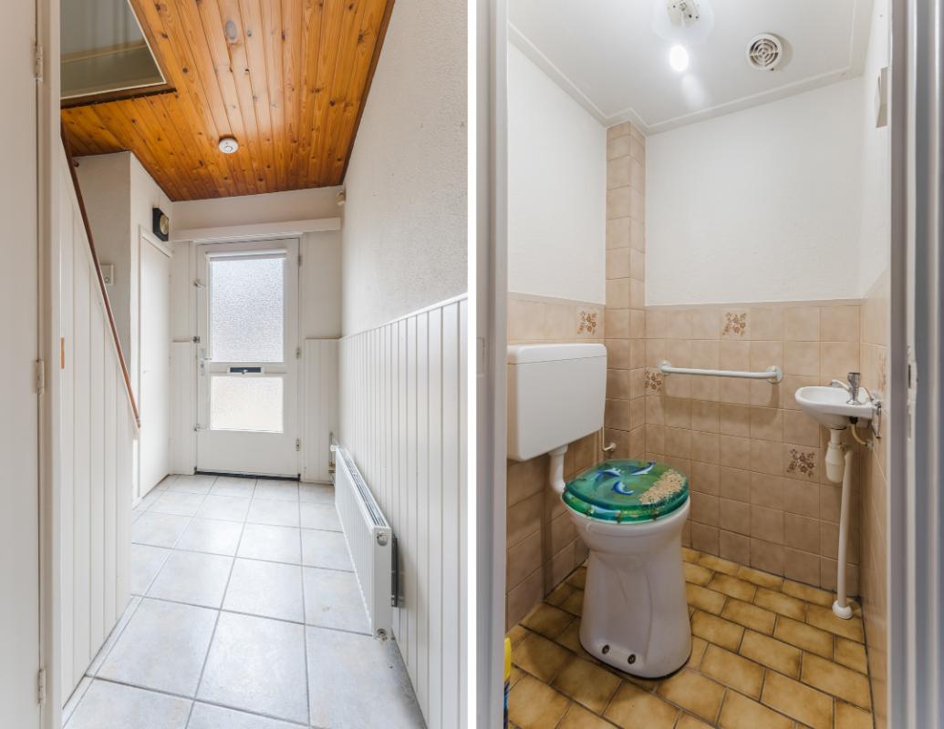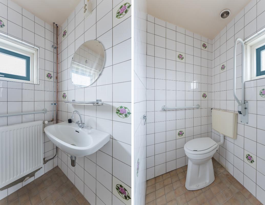 INDELING Begane grond: entree/hal, meterkast, eenvoudige toilet met fonteintje, trapopgang naar de 1e verdieping, praktische verlaagde trapkast, toegang tot doorzonwoonkamer met nette laminaatvloer. In de woonkamer is dubbelglas aanwezig. De open eenvoudige keuken (zonder apparatuur) is gelegen aan de achterzijde van de woning, met aansluitend een bijkeuken (met aansluiting voor was-apparatuur) en deur naar de achtertuin. Achter de bijkeuken is de badkamer gesitueerd welke is voorzien van een ruime inloopdouche en een wastafel. De achtertuin is grotendeels bestraat en gelegen op het oosten. De tuin beschikt over een achterom en een aangebouwde stenen berging.
