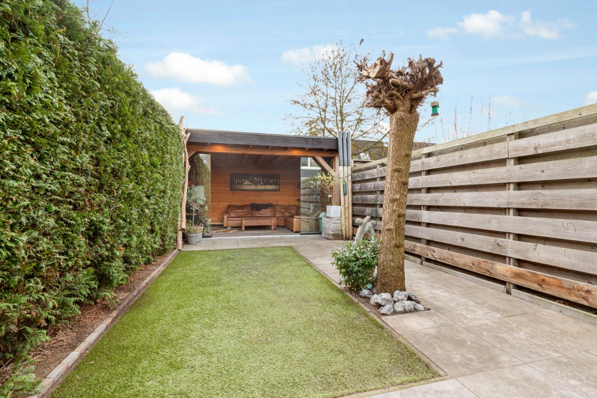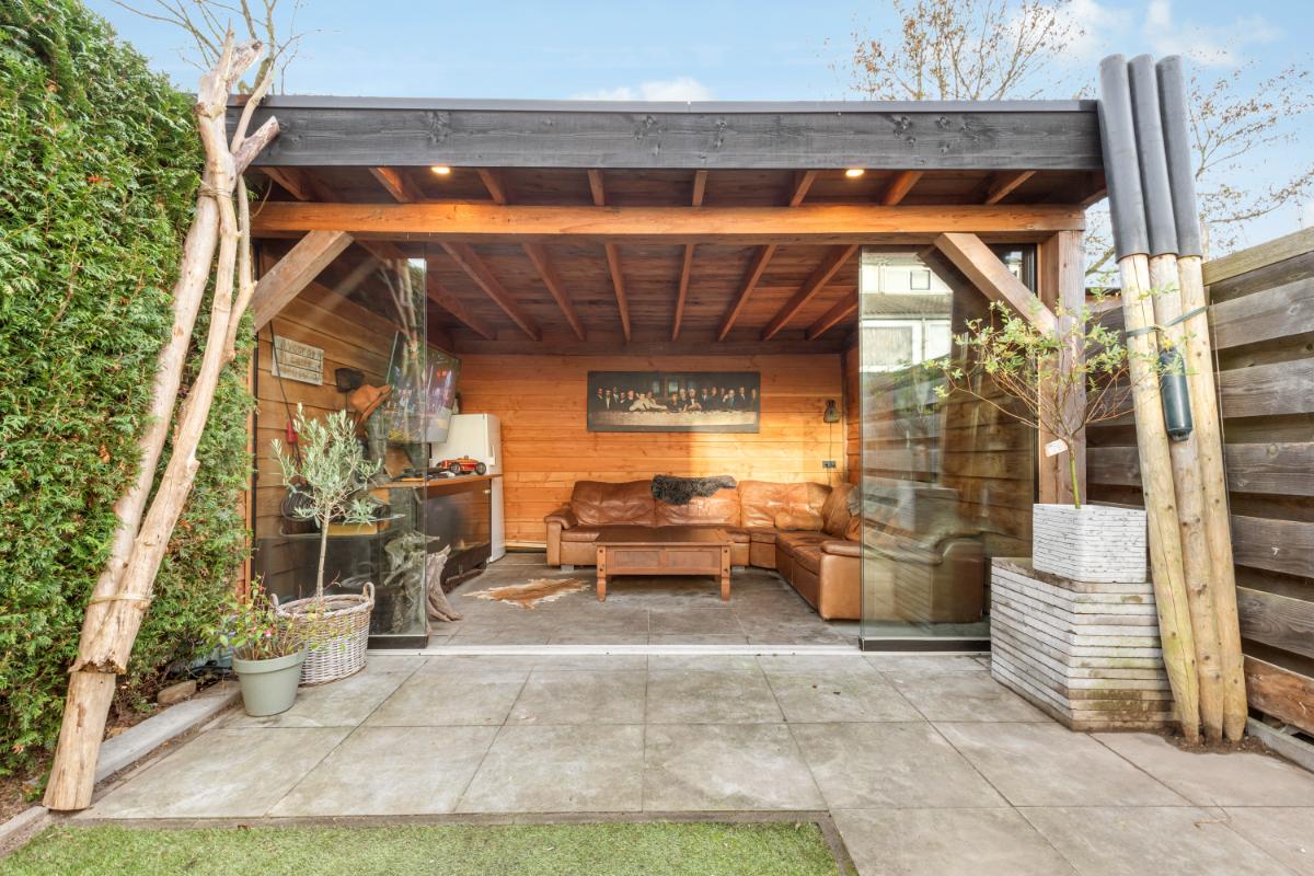 Buitenruimte: de woning beschikt over zowel een voor- als achtertuin. In de voortuin bevindt zich de aangebouwde stenen berging, ideaal voor het stallen van fietsen. De achtertuin is zonnig gelegen op het zuidwesten en onderhoudsvriendelijk ingericht met bestrating en kunstgras. Direct aan de woning ligt een fijne overkapping, en achter in de tuin vind je een sfeervolle tuinkamer met glazen schuifpui. Zo kun je het hele jaar door genieten van deze extra leefruimte.