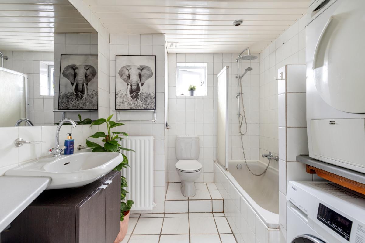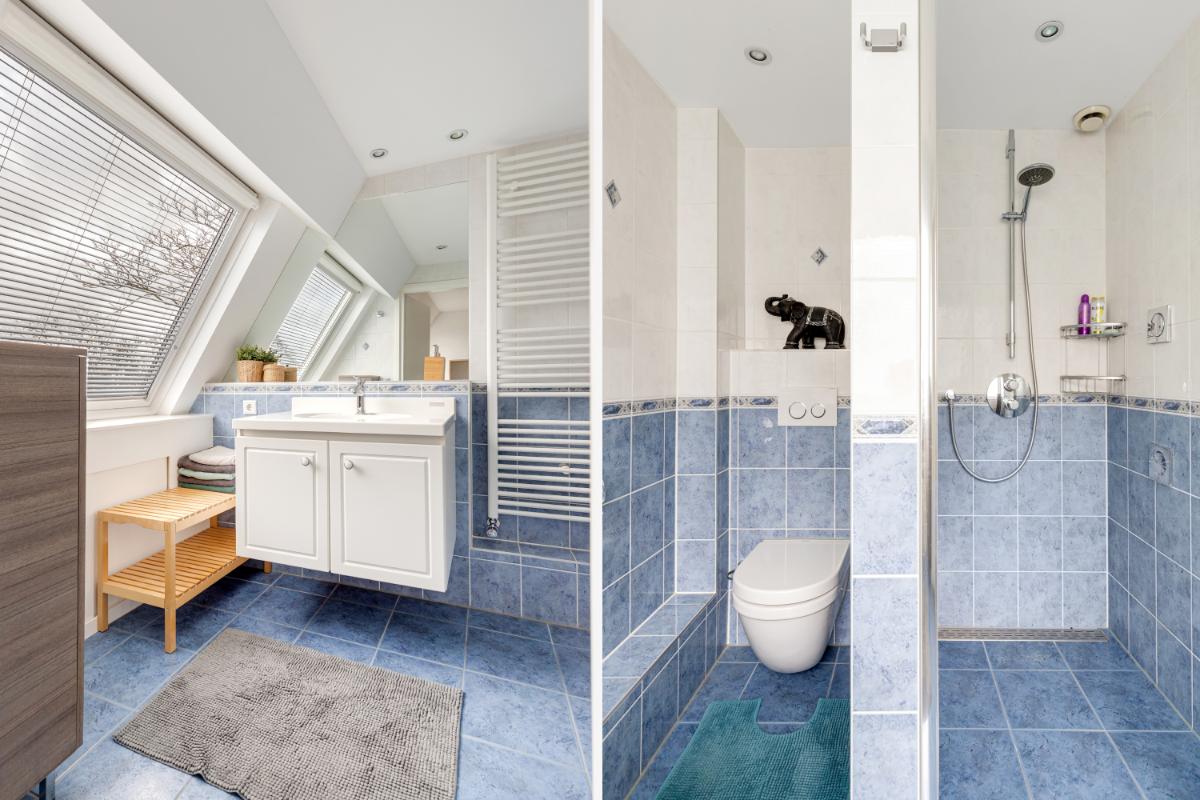 Tweede verdieping: dankzij de dakopbouw is deze extra verdieping gecreëerd, een mooie uitbreiding van de woning! Hier vind je de vierde slaapkamer en een tweede badkamer, ideaal voor gasten of een extra gezinslid. De badkamer is uitgerust met een inloopdouche, wandcloset en een wastafelmeubel. Via de vlizotrap bereik je de vliering, perfect voor het opbergen van spullen die je graag uit het zicht houdt.