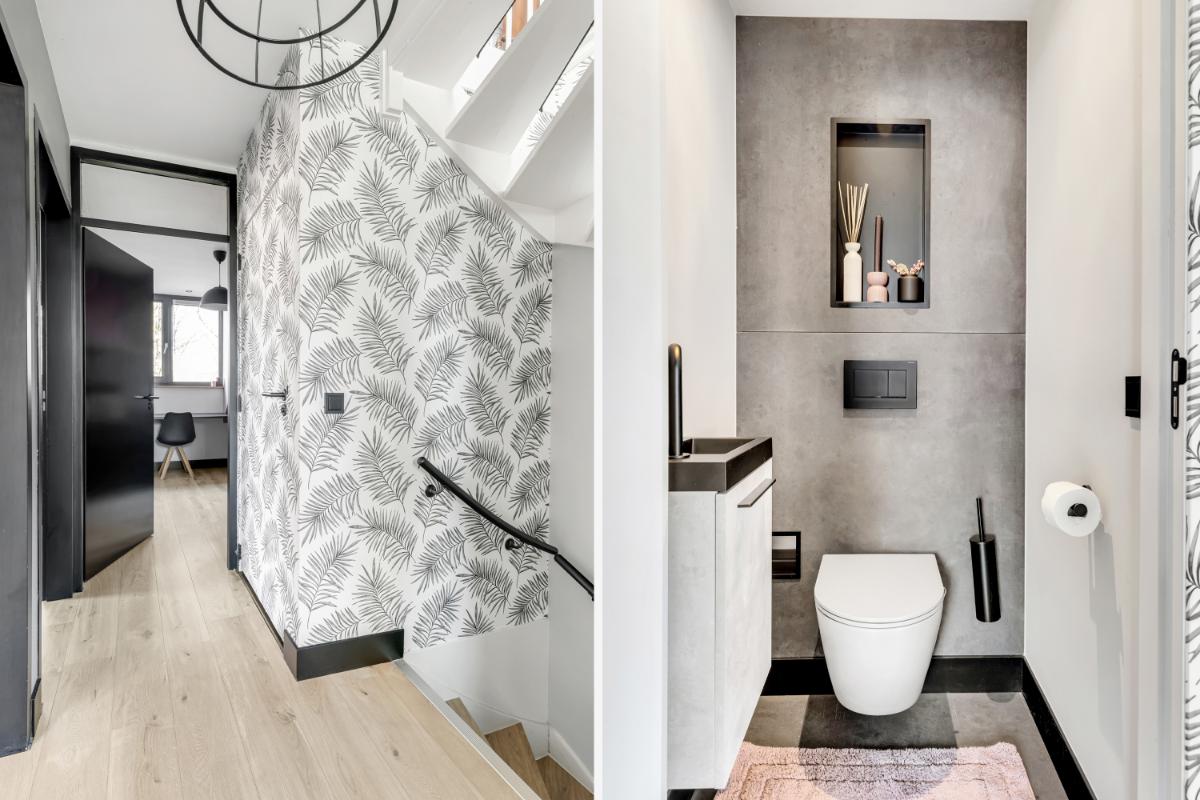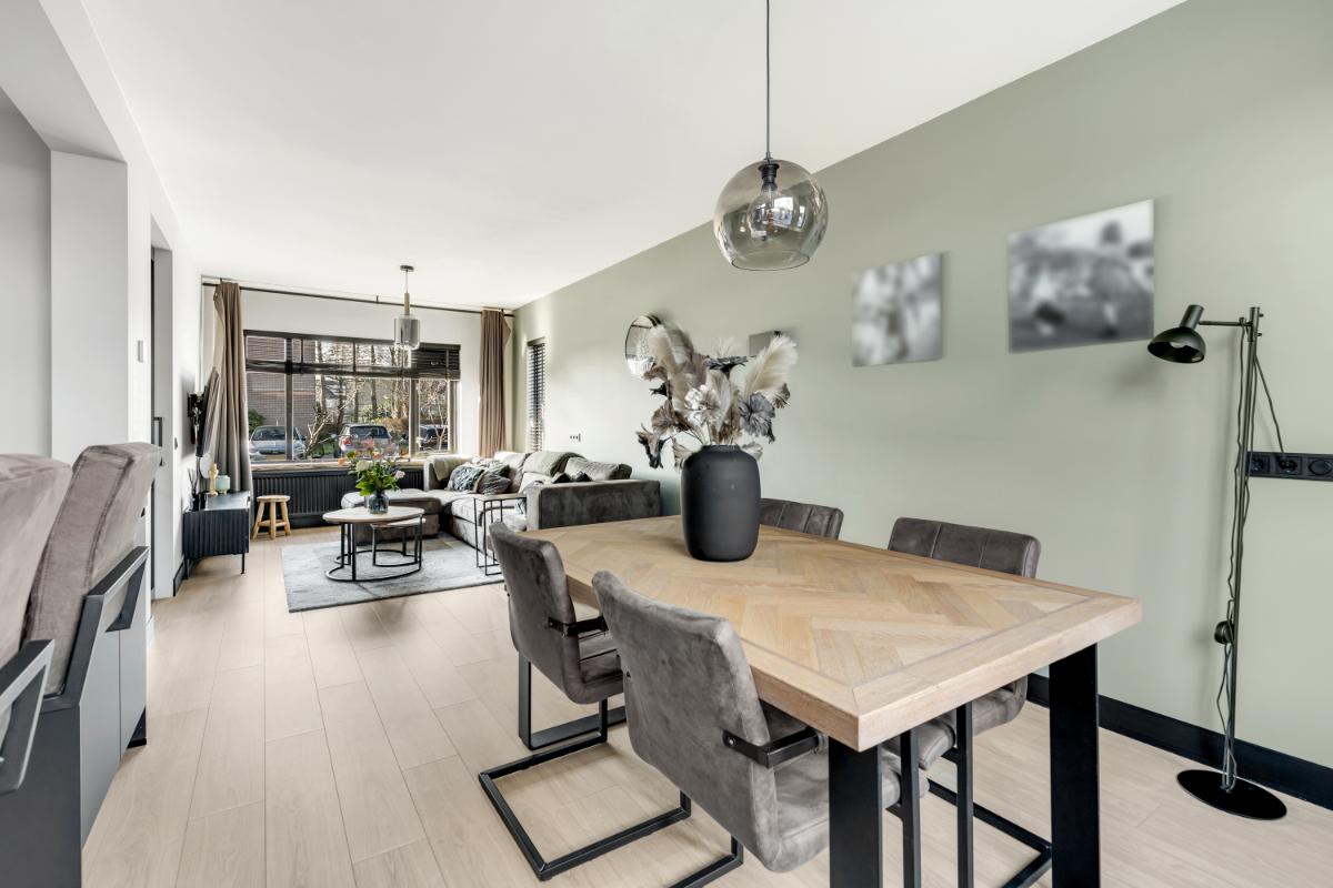 INDELING Begane grond: via de entree kom je in de hal met meterkast, vernieuwd toilet, trapopgang en praktische trapkast. Vanuit hier stap je de fraai afgewerkte doorzonwoonkamer binnen, waar het daglicht aan beide zijden rijkelijk naar binnen valt. De woonkamer voelt open en licht en biedt voldoende ruimte voor een royale zithoek en eettafel.