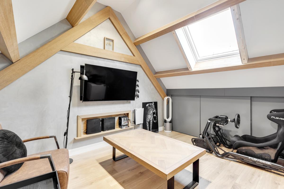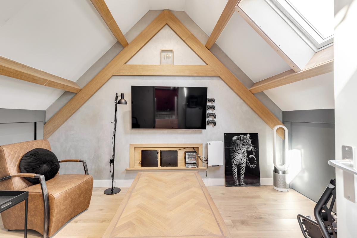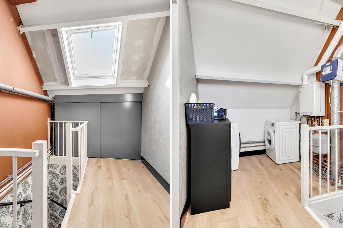 Tweede verdieping: de tweede verdieping beschikt over een voorzolder met witgoedaansluitingen en de cv-opstelling. Aansluitend vind je hier een vierde kamer, ideaal als extra slaapkamer, werk- of hobbyruimte. Dankzij het dakraam is ook deze ruimte prettig licht. Achter de schuine kanten is praktische bergruimte aanwezig.