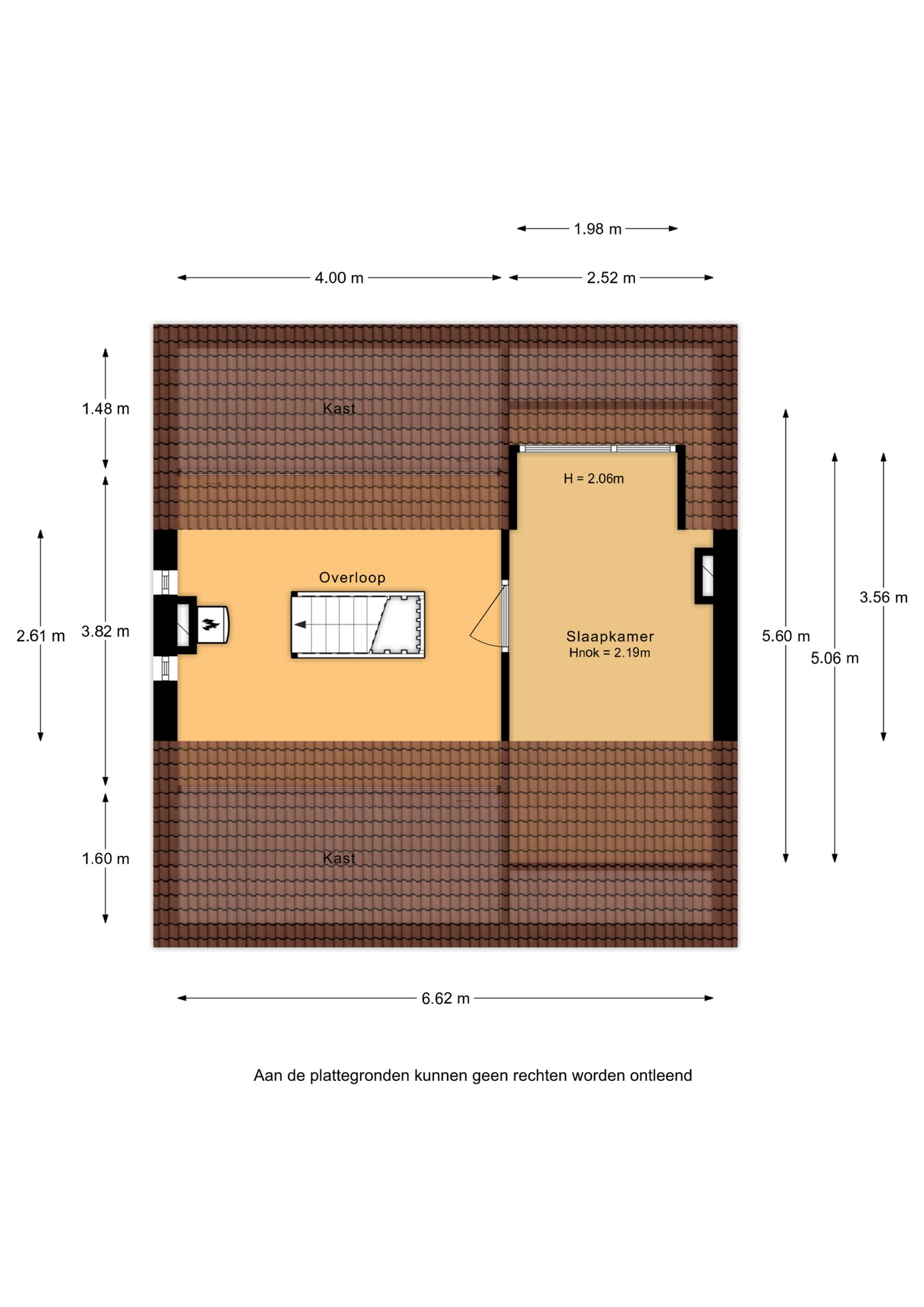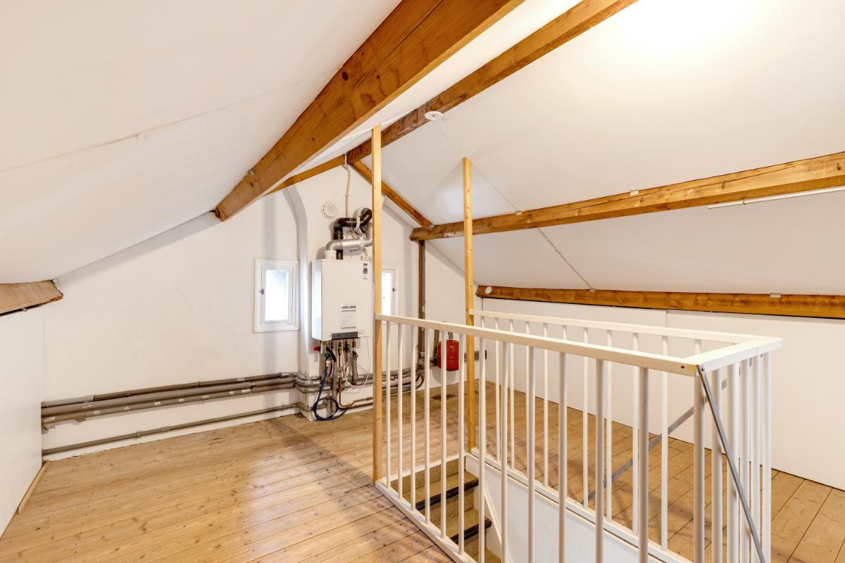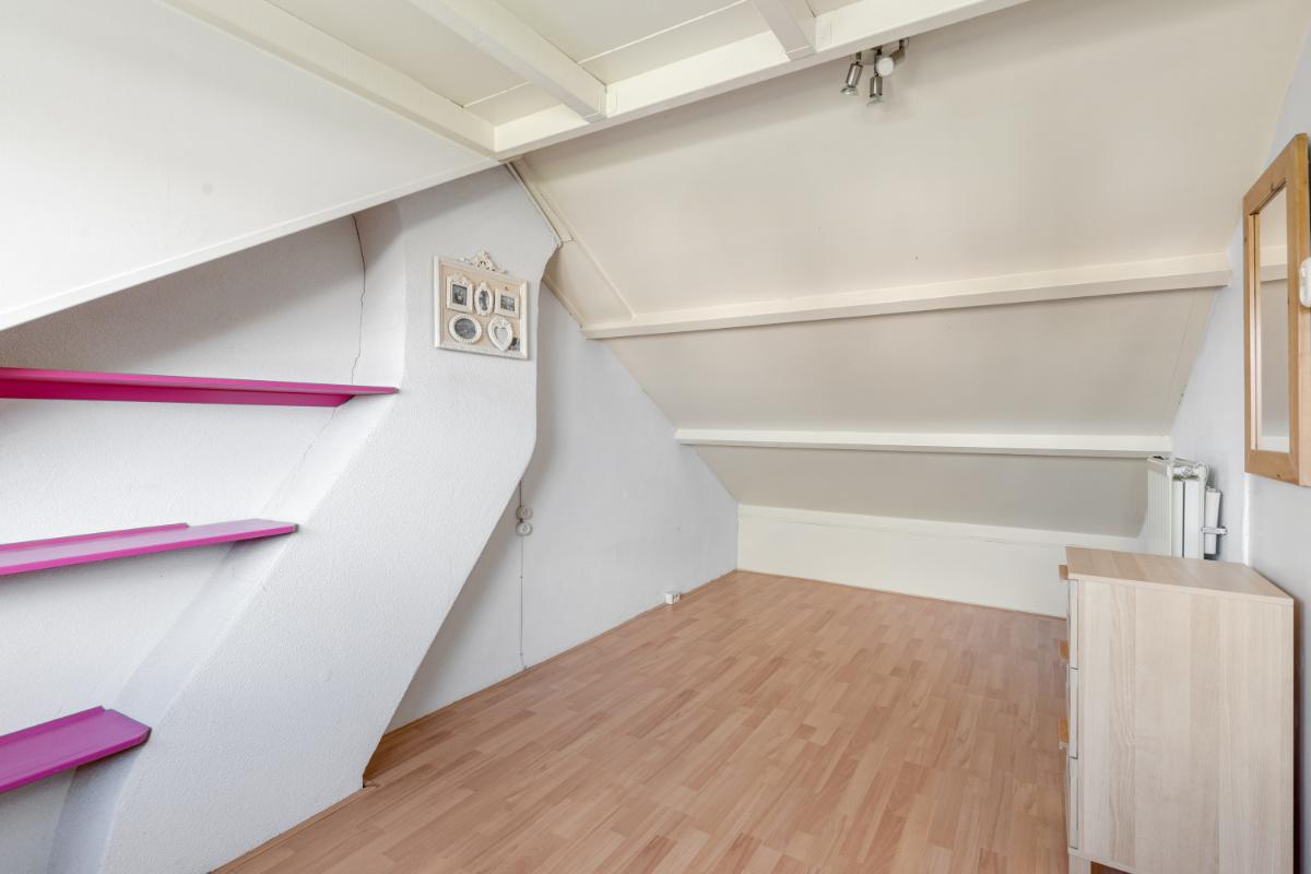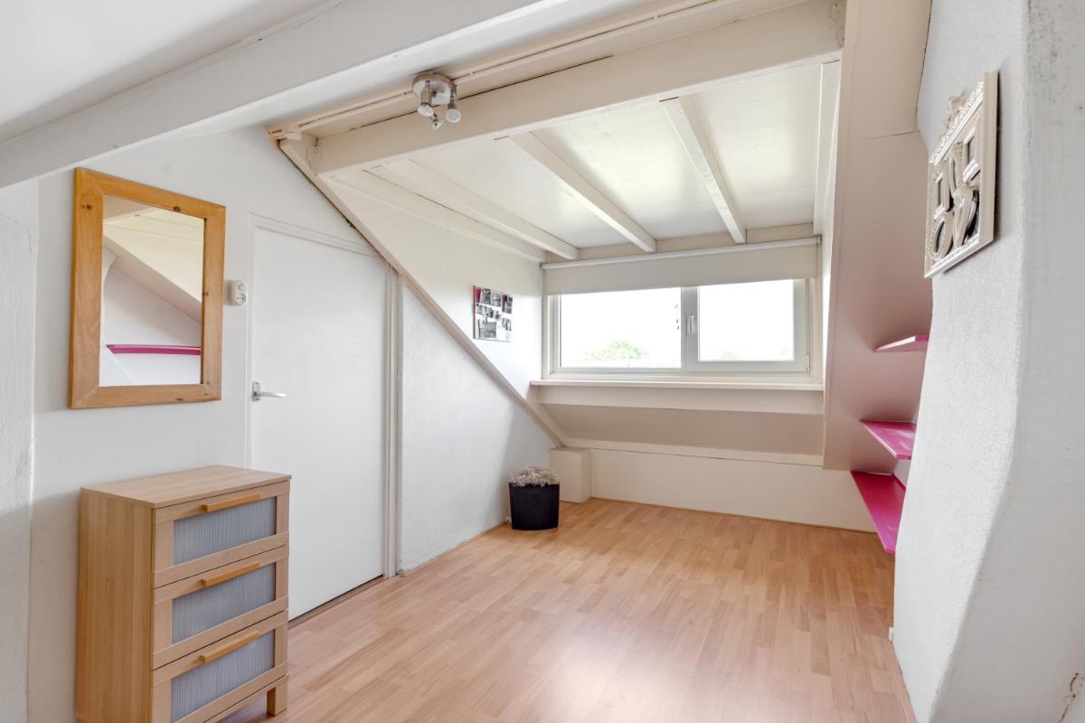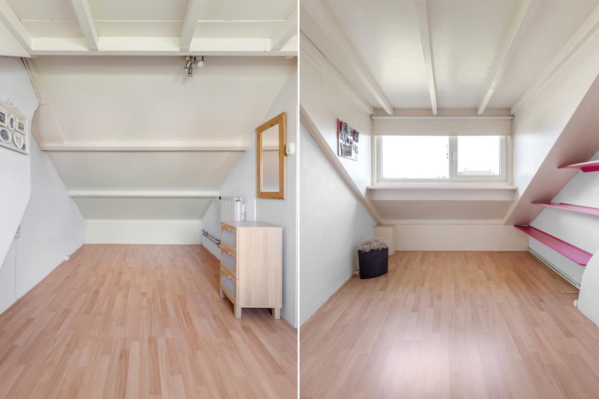 Tweede verdieping: via een vaste trap bereik je de zolderverdieping. Deze is keurig afgewerkt en biedt plaats aan een vierde slaapkamer of een fijne werk-/hobbyruimte, mede dankzij de aanwezige dakkapel. Op de voorzolder is volop bergruimte beschikbaar achter de knieschotten en bevindt zich de opstelplaats van de cv-ketel (Intergas, 2015).