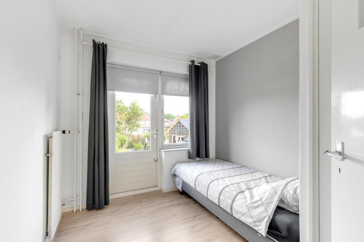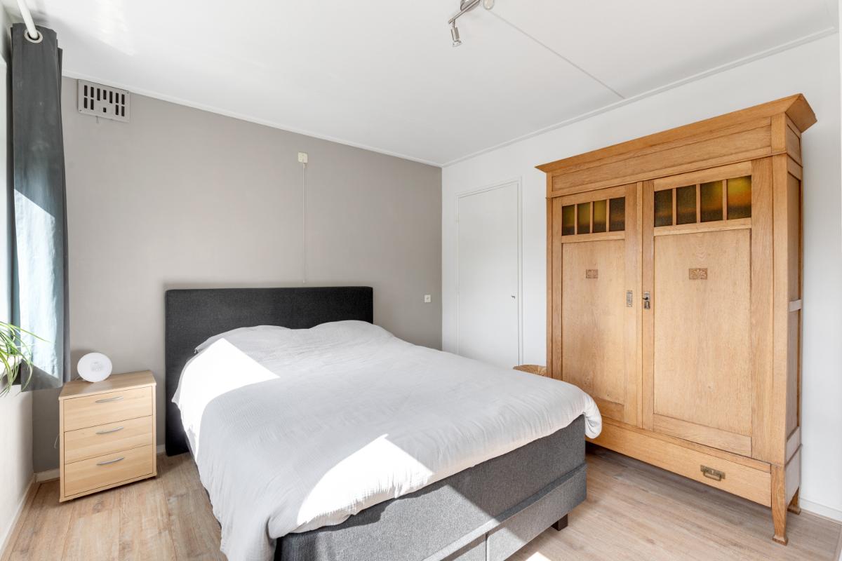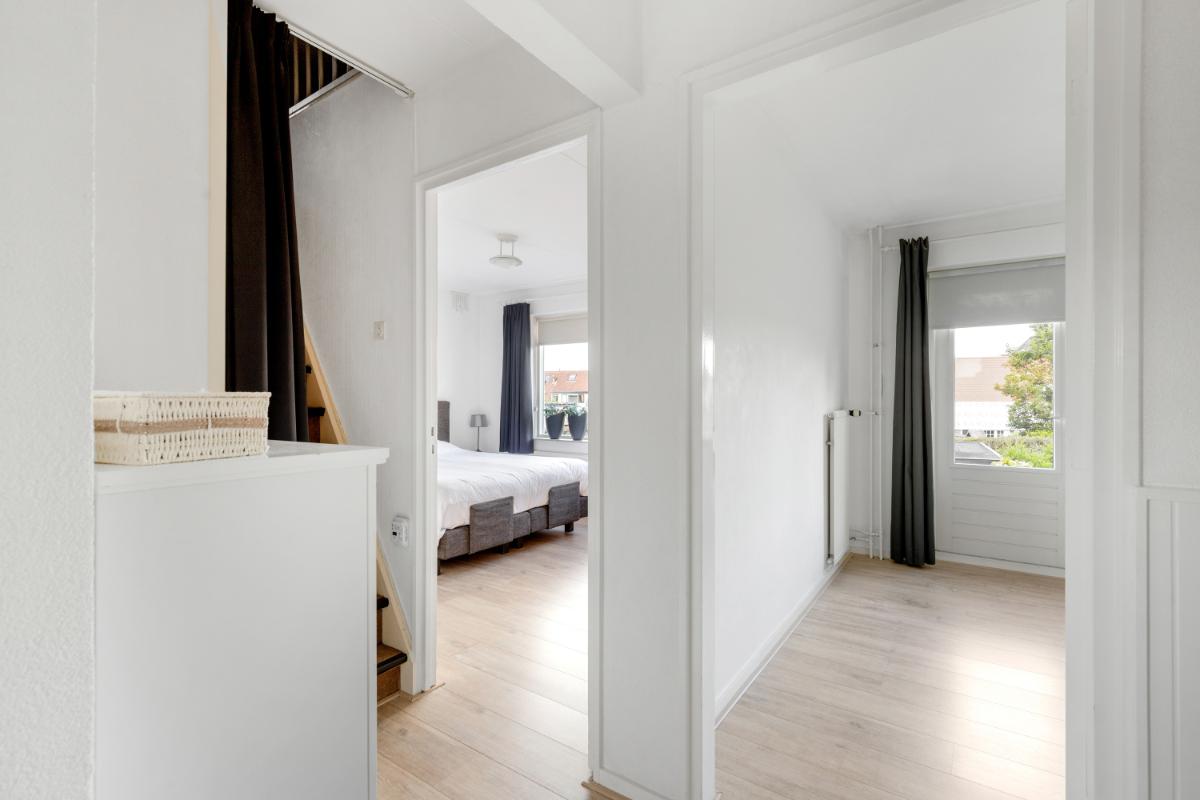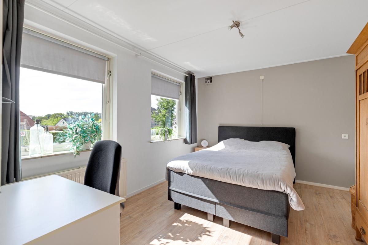 Eerste verdieping: op de eerste verdieping bevinden zich drie slaapkamers van goed formaat, elk voorzien van een vaste kast, een nette laminaatvloer en strak afgewerkte wanden. De ruime en verzorgde badkamer is volledig betegeld en uitgerust met een inloopdouche, wastafelmeubel, toilet en comfortabele vloerverwarming. Dankzij het aanwezige raam is er prettig daglicht en natuurlijke ventilatie.