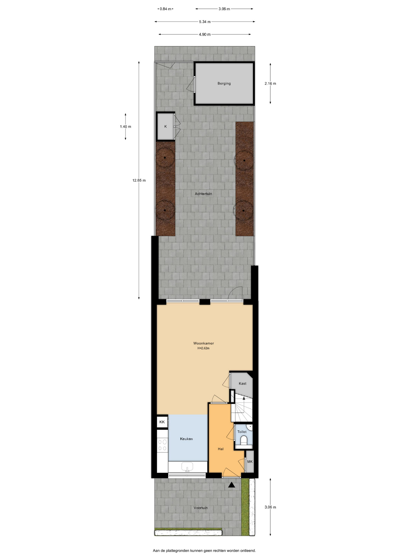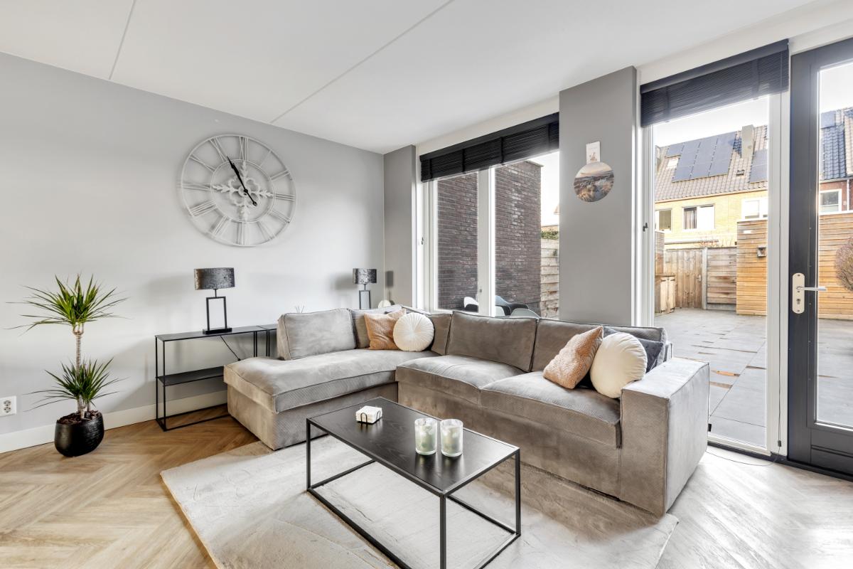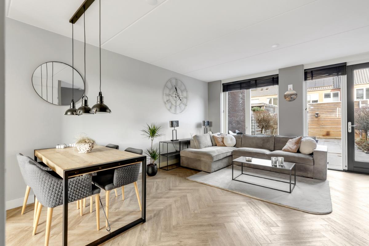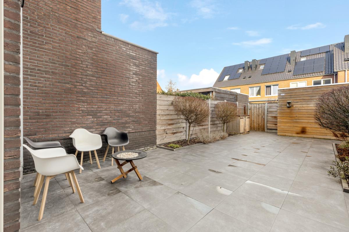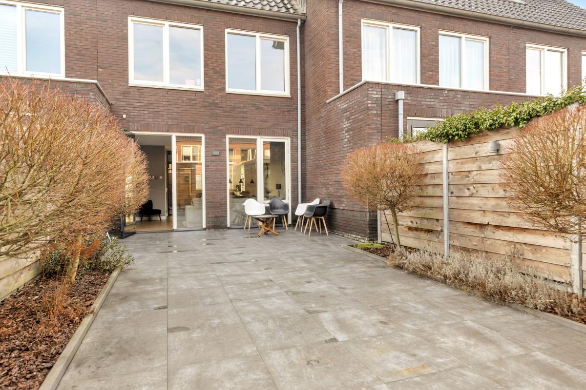 Tuin: de achtertuin is netjes en onderhoudsvriendelijk aangelegd met sierbestrating en borders aan beide zijden. Achterin de tuin staat een houten berging en er is een handige achterom. Een fijne plek om buiten te zitten, met voldoende ruimte voor een loungeset of eettafel.