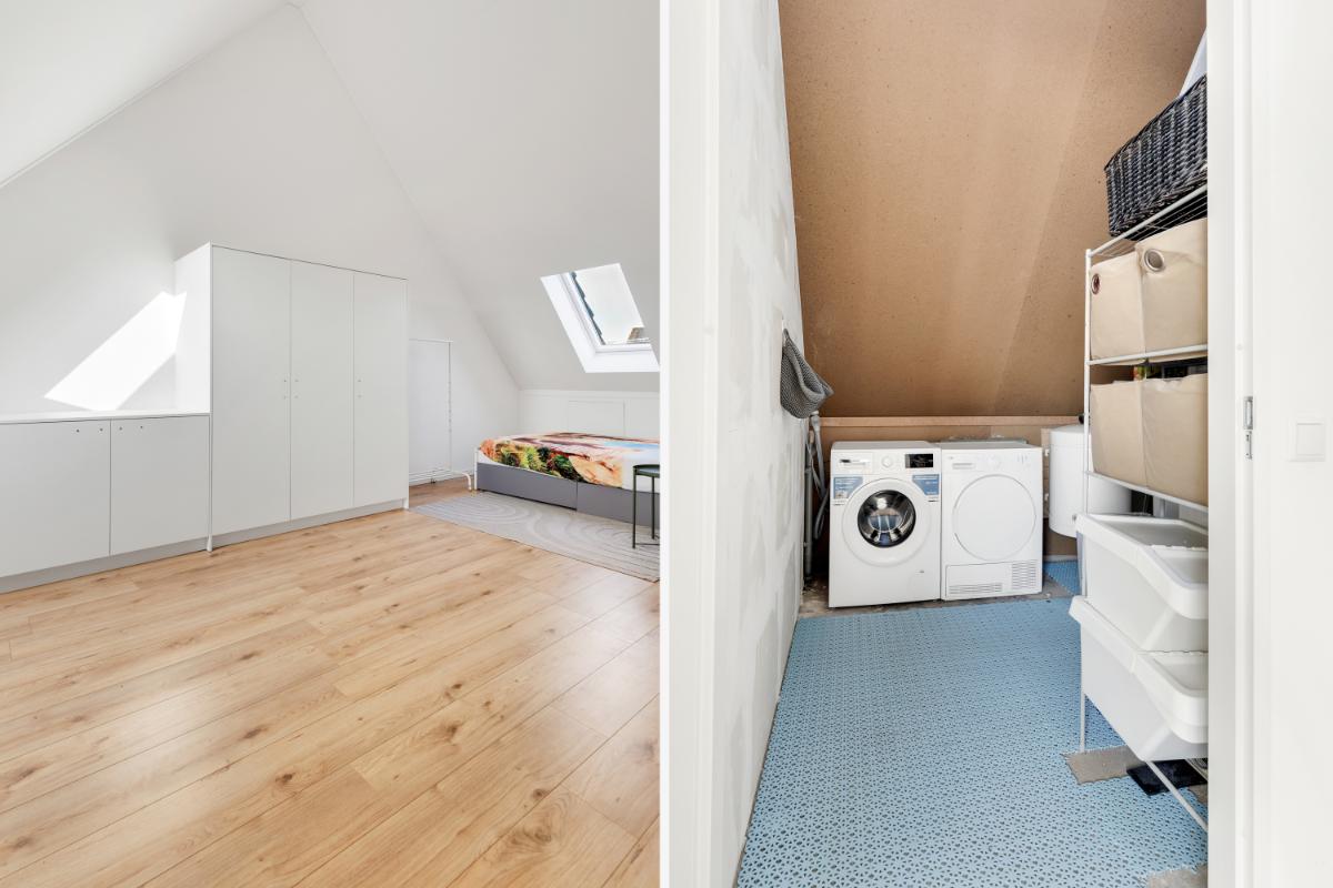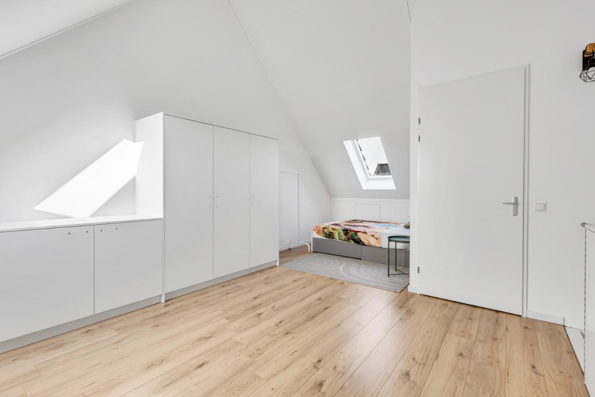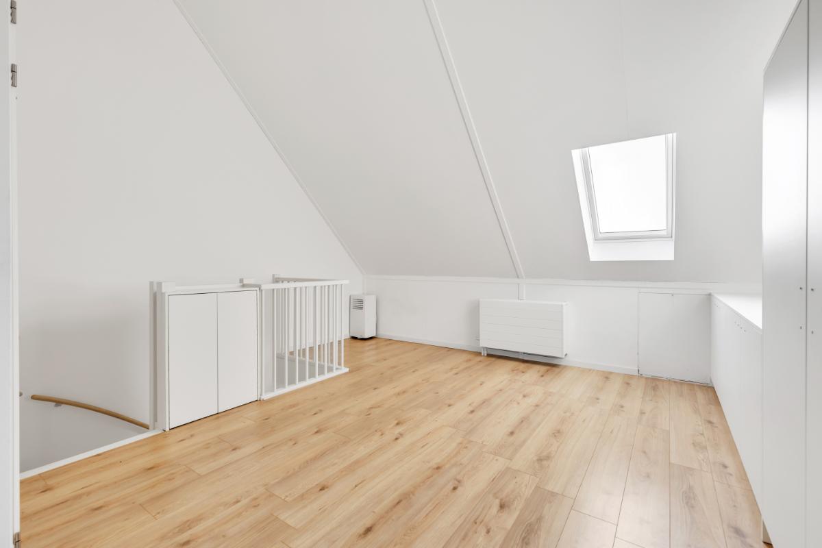 Tweede verdieping: de tweede verdieping is een grote, open zolderruimte met een hoge nok en aan beide zijden een dakraam, wat zorgt voor veel licht en een ruimtelijk gevoel. Achter de schuine kanten is praktische bergruimte aanwezig. Daarnaast is er een aparte wasruimte/stookruimte. Deze verdieping is voorzien van een laminaatvloer en biedt volop mogelijkheden, bijvoorbeeld als extra slaapkamer, werkruimte of hobbykamer. Op deze verdieping is geen vloerverwarming aanwezig.