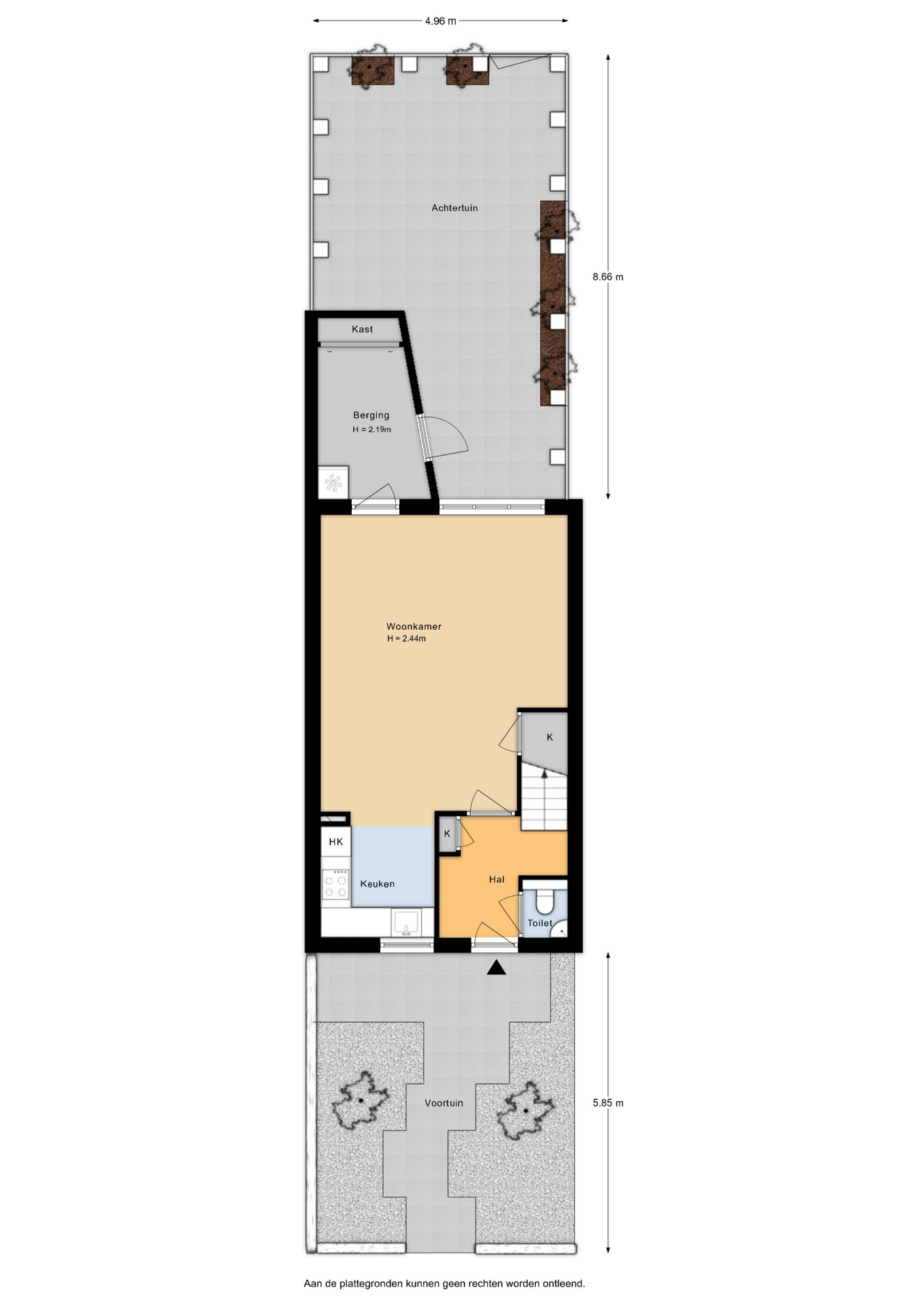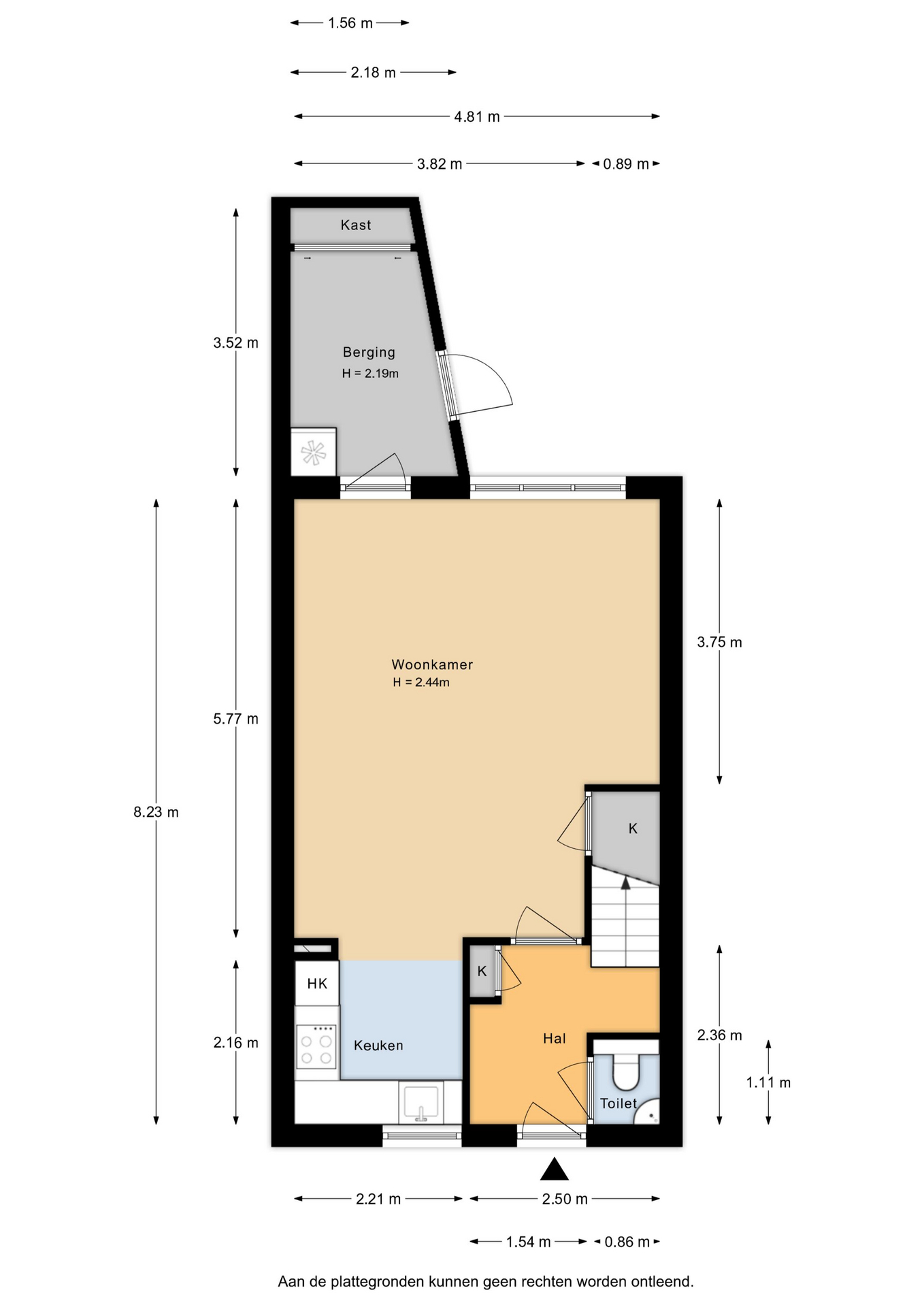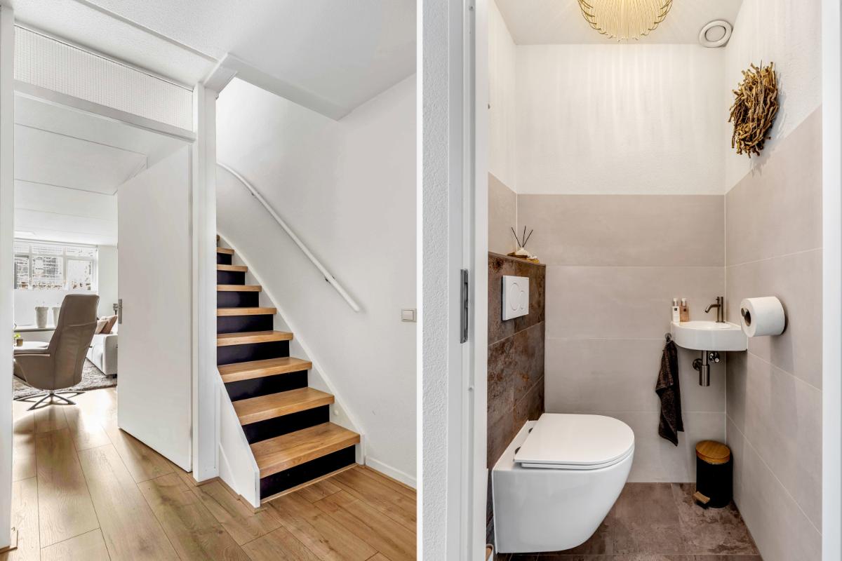 INDELING Begane grond: Je komt binnen in de hal met meterkast, toiletruimte en trapopgang. De woonkamer is tuingericht en heeft een verzorgde afwerking met een laminaatvloer en spachtelputz wandafwerking. De praktische trapkast biedt extra bergruimte. Via de woonkamer heb je direct toegang tot de aangebouwde geïsoleerde berging.