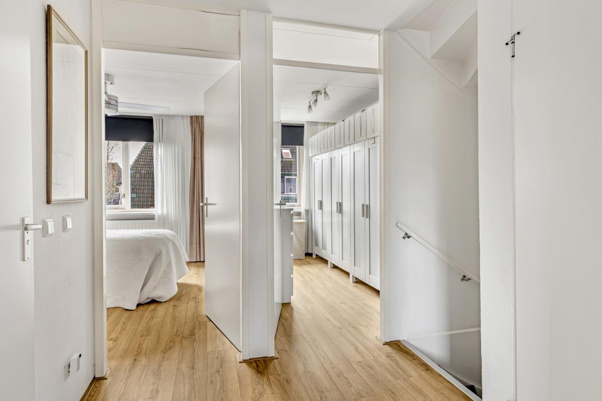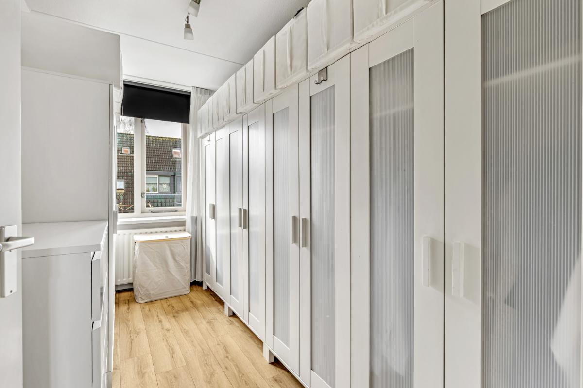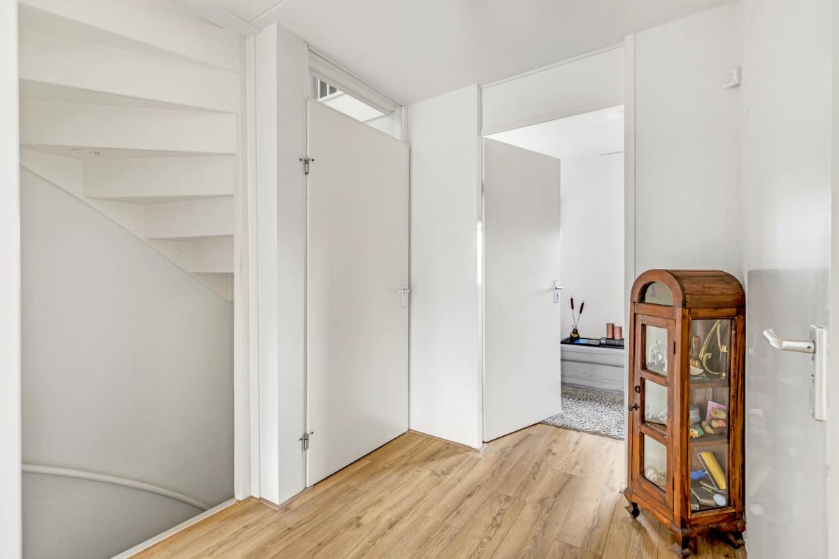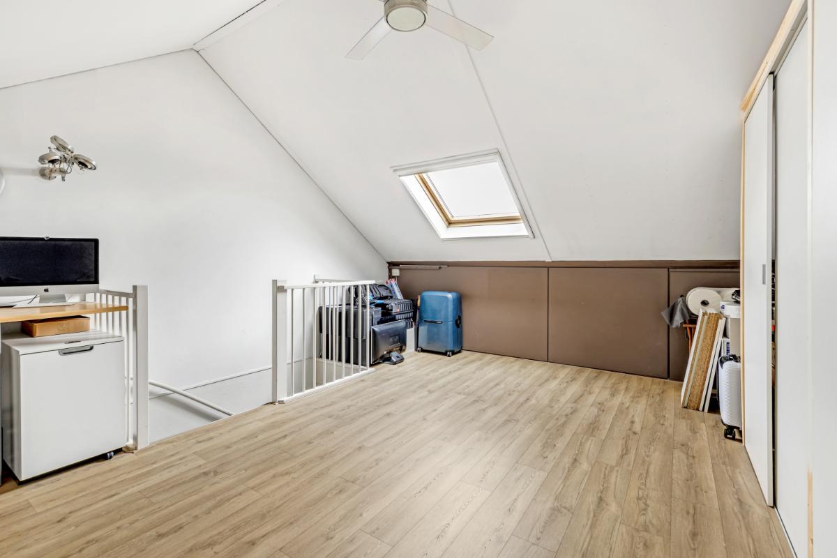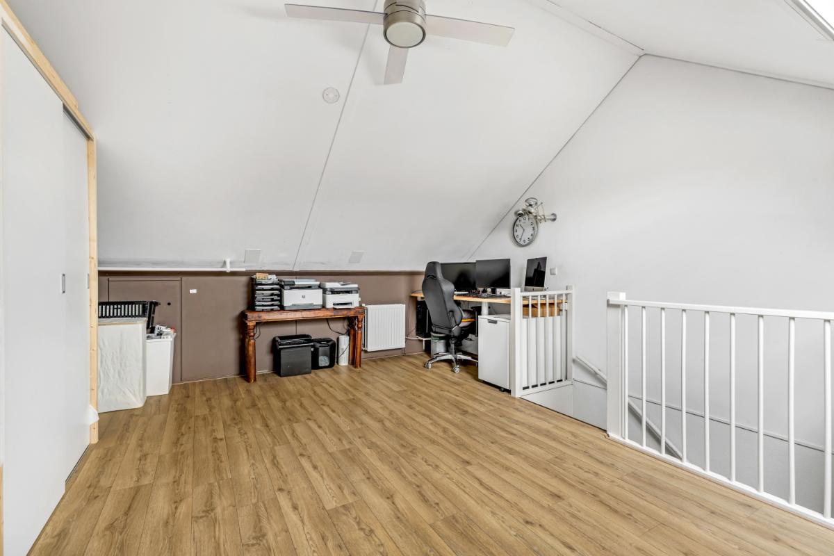 Tweede verdieping: de zolderverdieping is verrassend ruim en multifunctioneel. Hier vind je de opstelling van de in 2024 vernieuwde Vaillant HR cv-ketel (eigendom) en de aansluitingen voor wasapparatuur. Achter de knieschotten is volop bergruimte aanwezig. Deze verdieping biedt bovendien uitstekende mogelijkheden om één of zelfs twee extra kamers te realiseren. Ook hier is de afwerking netjes met een laminaatvloer.