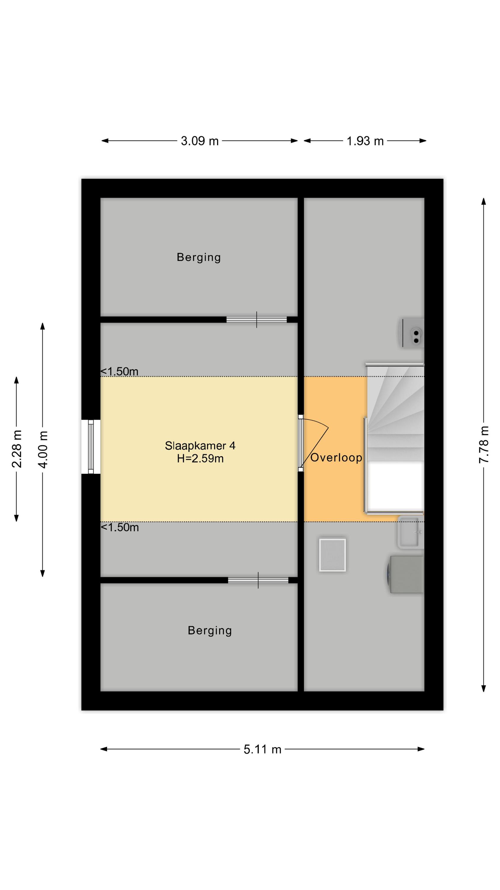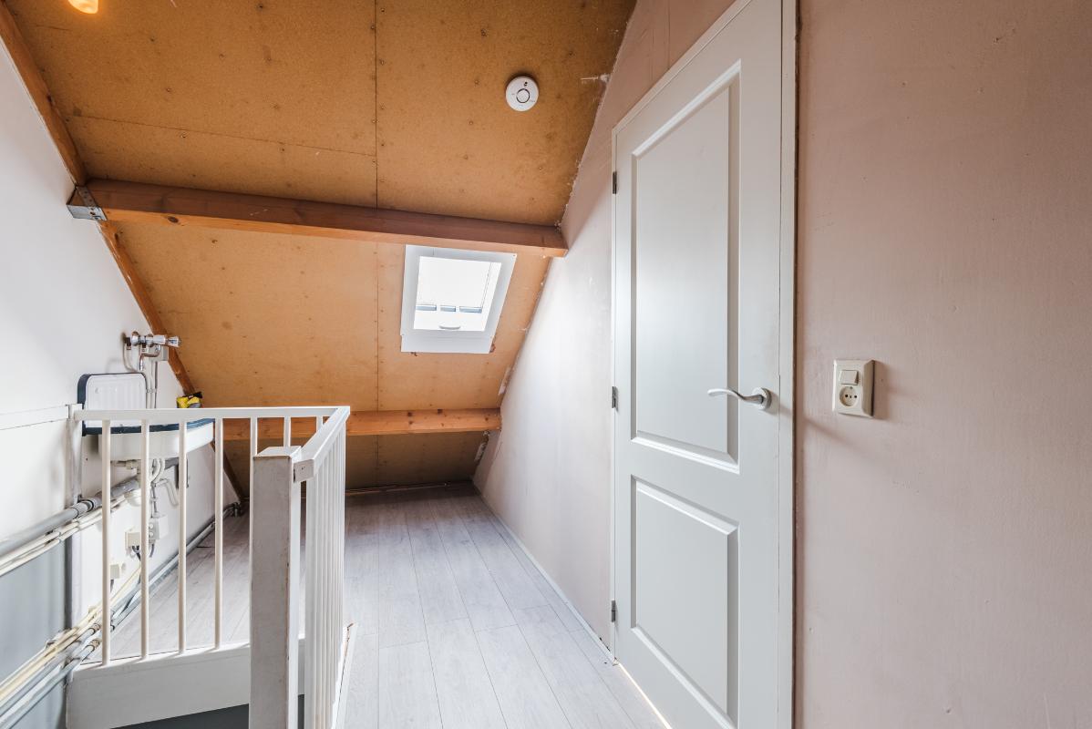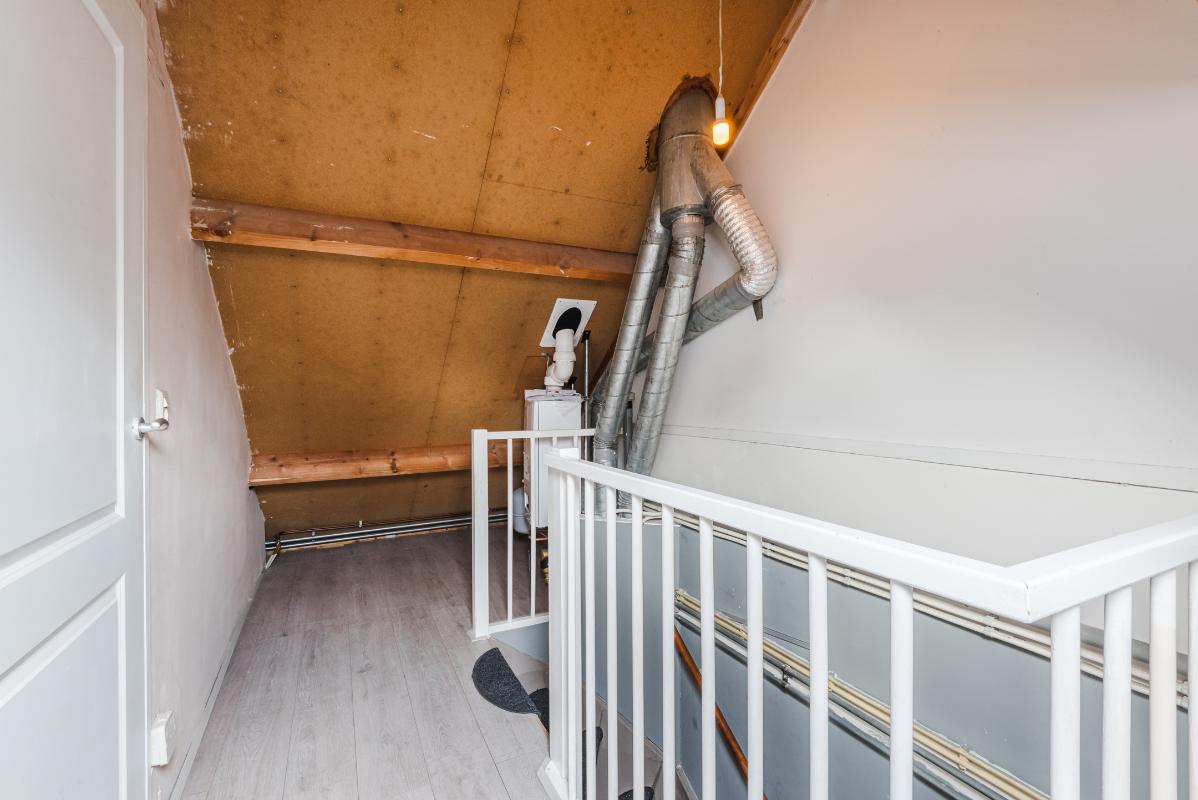 2e verdieping: via een vaste trap bereikt u de zolderverdieping die bestaat uit een voorzolder met de opstelling van de CV ketel (Remeha, 2024), de mechanische ventilatie, de wasmachine-aansluiting en een 4e slaapkamer met vaste kastenwand en een dakraam aan de voorzijde. Ook deze verdieping is voorzien van een laminaatvloer.