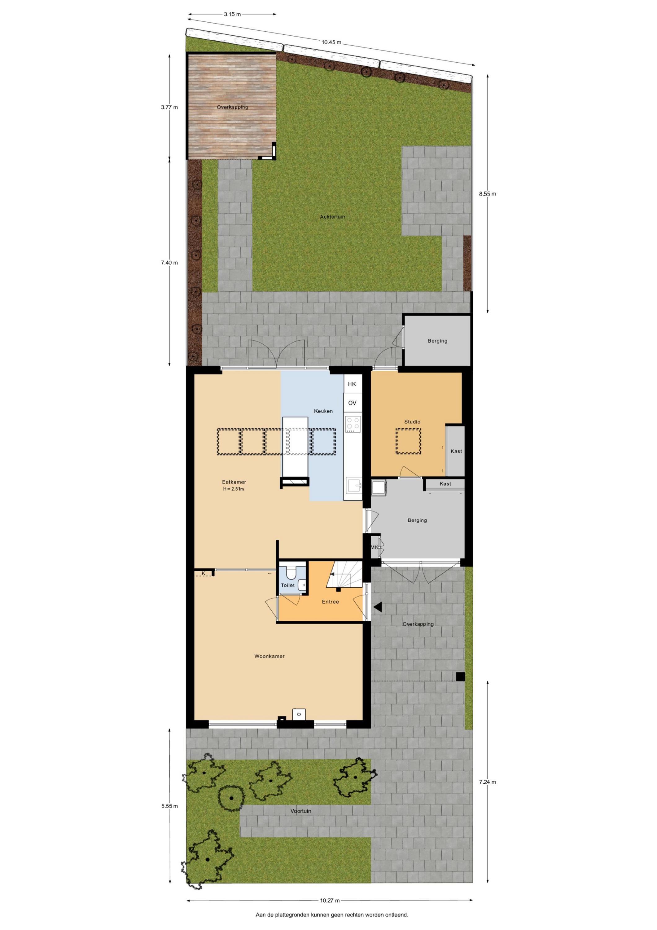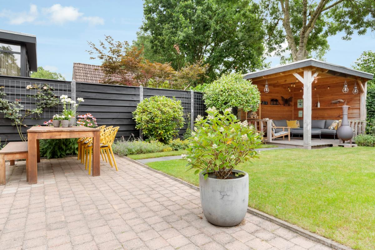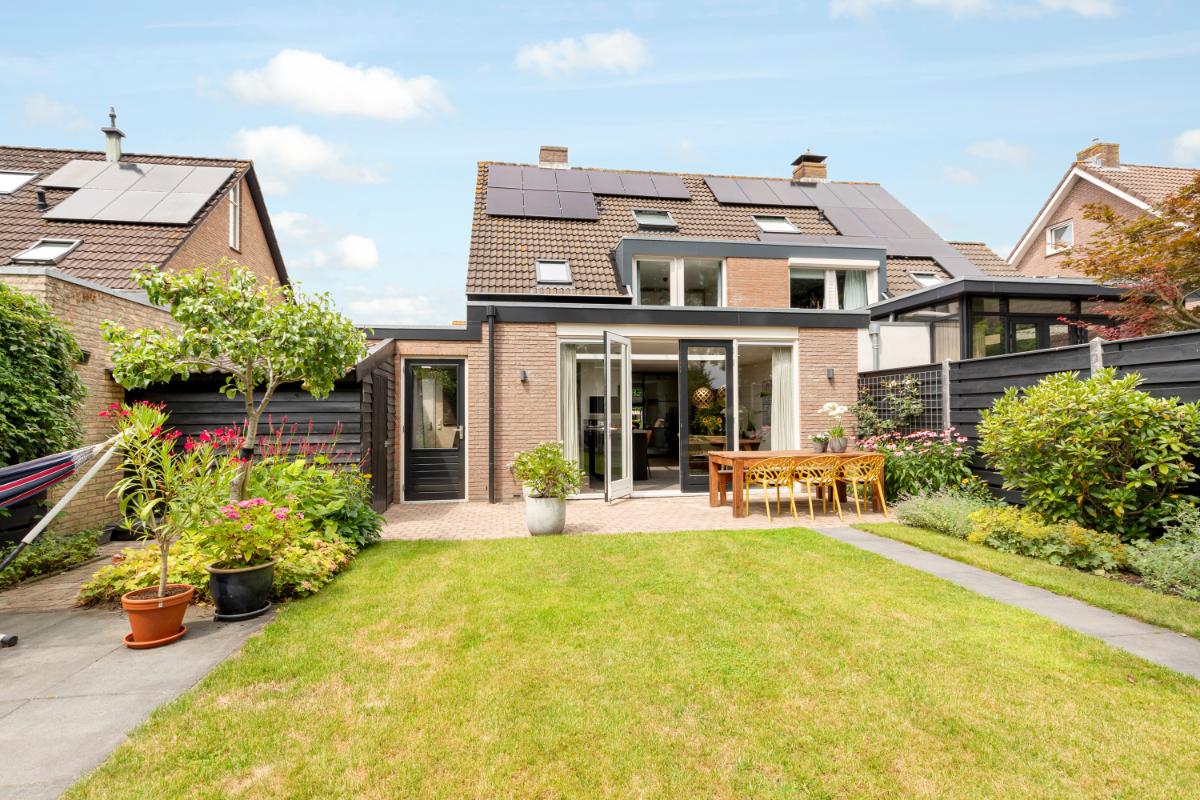 De achtertuin is een heerlijke plek om te ontspannen en te genieten van de zon. Gelegen op het zuidoosten, profiteer je hier van veel zonuren. De tuin is groen ingericht met een combinatie van groene borders, een net gazon en strakke terrassen, wat zorgt voor een frisse, natuurlijke uitstraling. Helemaal achterin vind je een sfeervolle veranda. Dé plek om lange avonden door te brengen, beschut en toch buiten. Daarnaast is er nog een houten berging aanwezig.
