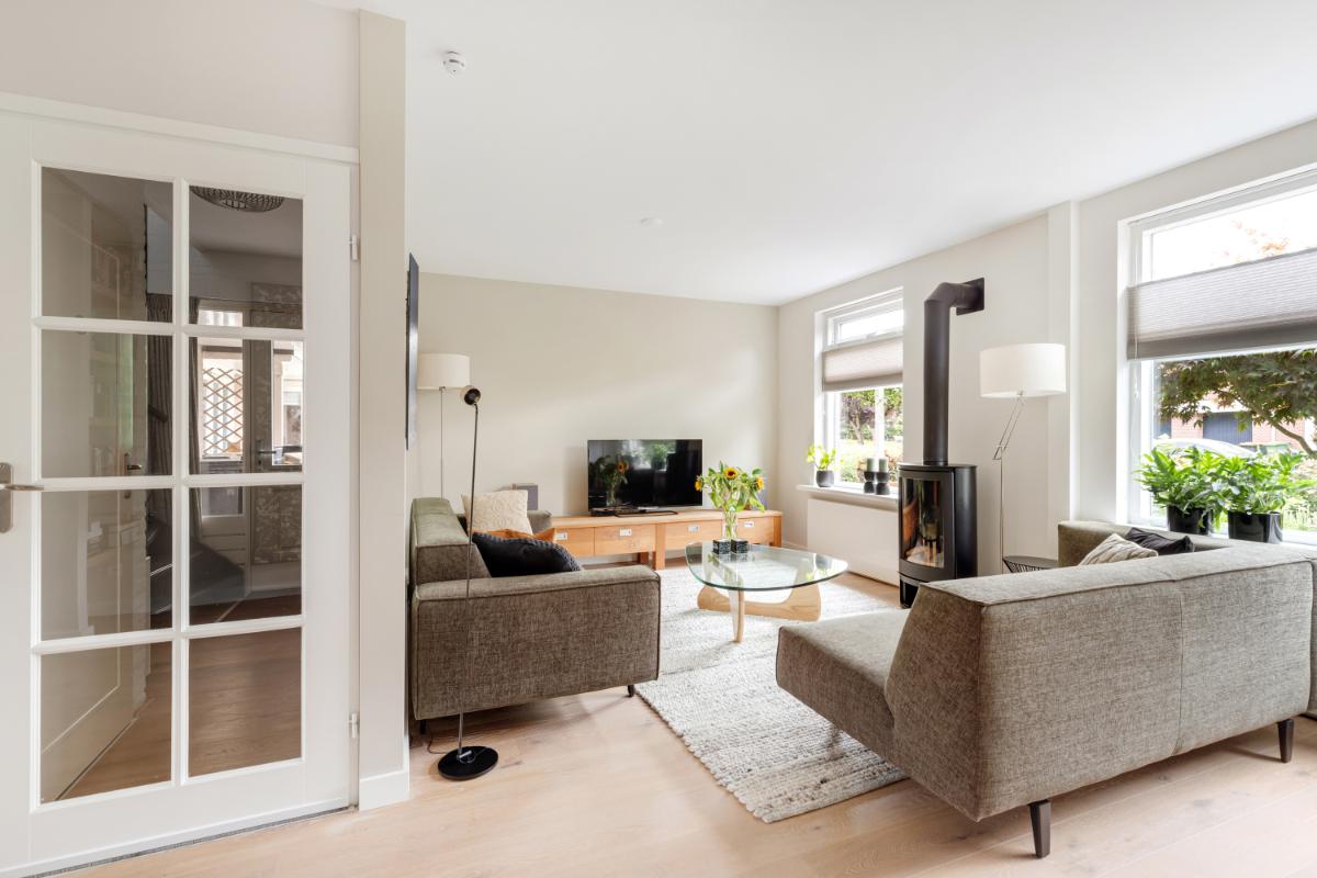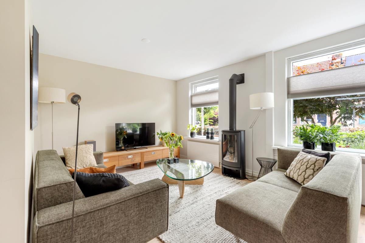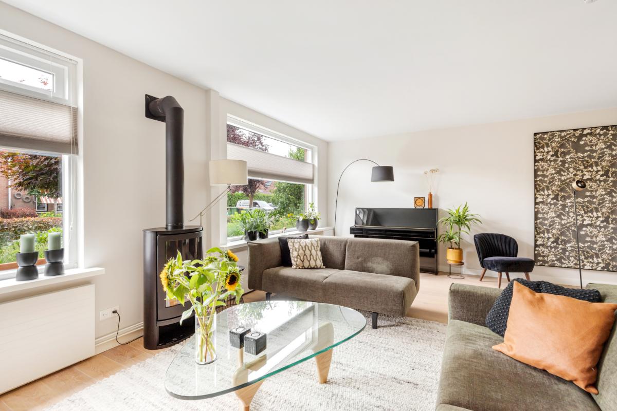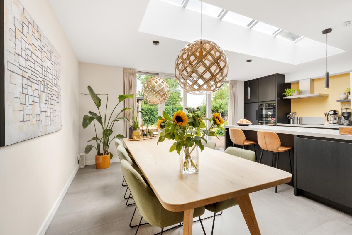 INDELING Begane grond: bij aankomst parkeer je gemakkelijk op eigen terrein en stap je via de overkapte voordeur binnen in een ruime, lichte hal. Hier vind je het moderne toilet met fonteintje en de trapopgang naar de eerste verdieping. De hal geeft toegang tot de woonkamer, waardoor je meteen een voorproefje krijgt van wat deze woning te bieden heeft. Bij binnenkomst valt direct de ruimte en het licht op. De woning is in 2022 fors uitgebouwd en stijlvol gemoderniseerd, waardoor een prachtige leefruimte is ontstaan. De royale woonkamer biedt plek voor een grote zithoek en is afgewerkt met strakke wanden en een eikenhoutenvloer, en is voorzien van vloerisolatie (2023).