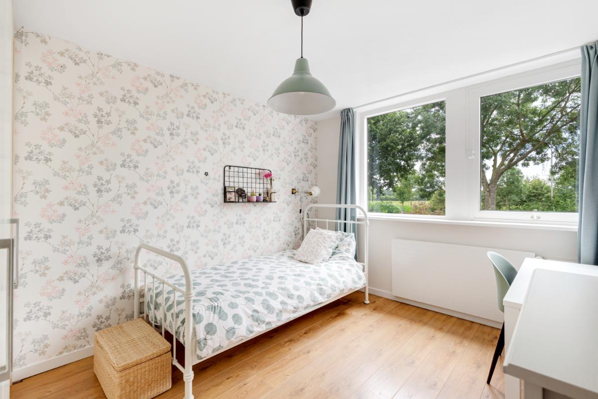 1e verdieping: op de eerste verdieping bevinden zich drie ruime slaapkamers, stuk voor stuk licht en prettig in te delen. De kamers zijn voorzien van een laminaatvloer en grote ramen, waardoor er veel daglicht naar binnen valt. Twee slaapkamers zijn aan de voorzijde gesitueerd. De derde slaapkamer bevindt zich aan de achterzijde met prachtig uitzicht over de weilanden. De badkamer is comfortabel en compleet ingericht met een ligbad, separate douche, dubbele wastafel met meubel en een tweede toilet. Dankzij het dakraam is er natuurlijke ventilatie en daglicht, wat zorgt voor een frisse en aangename ruimte.