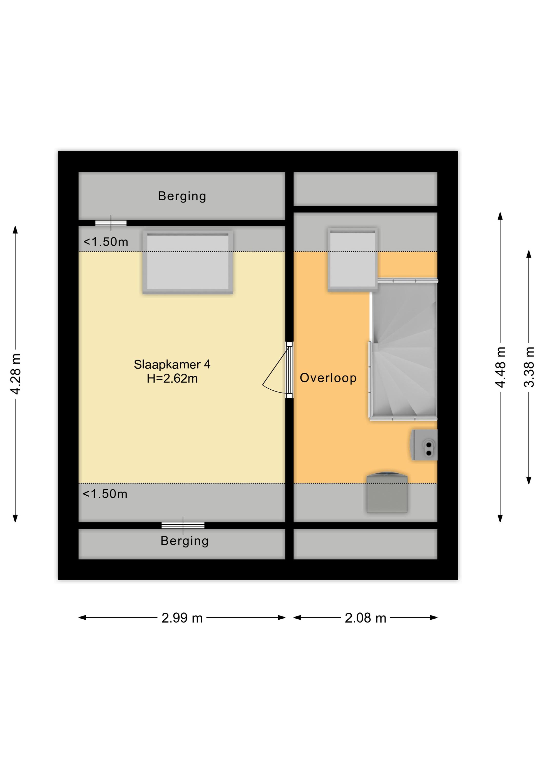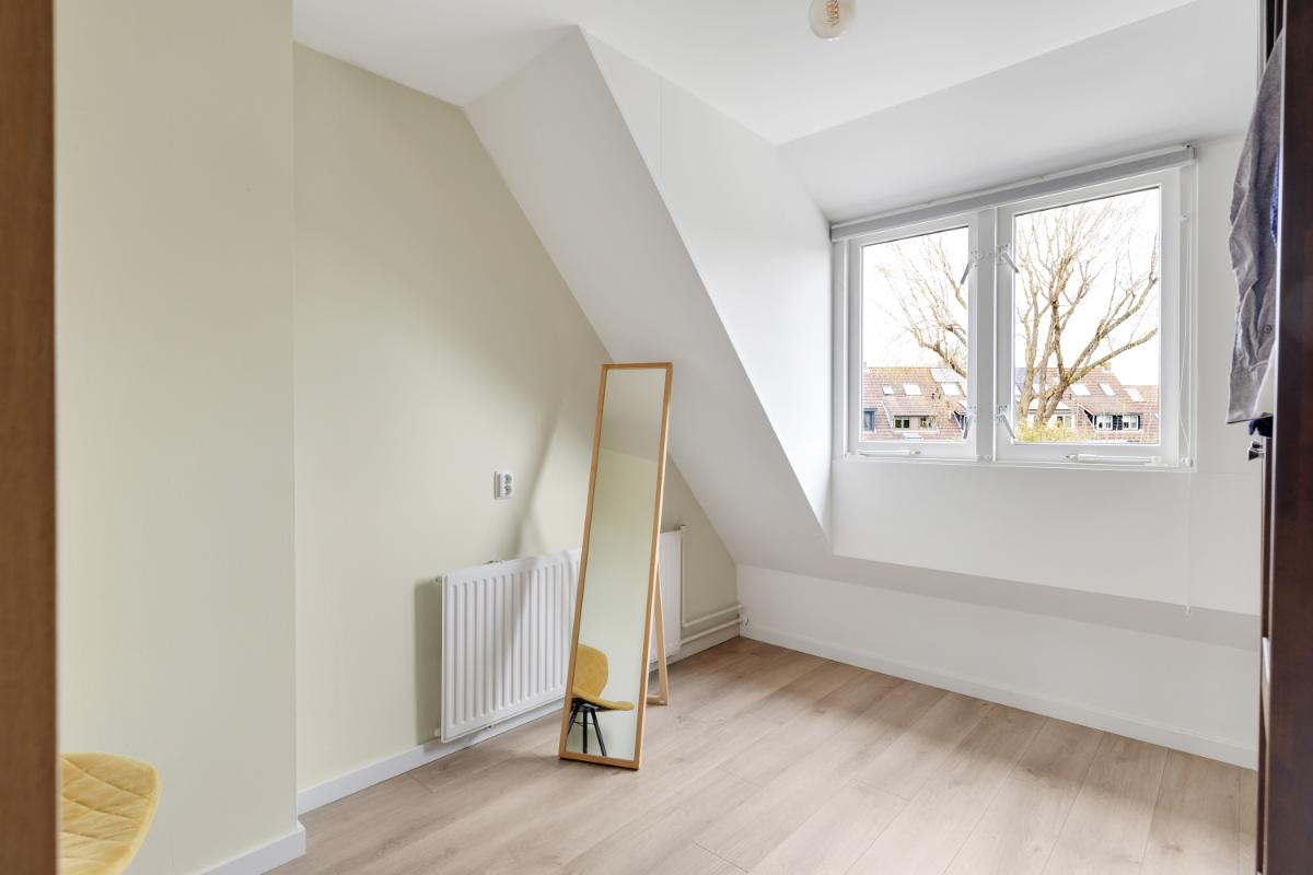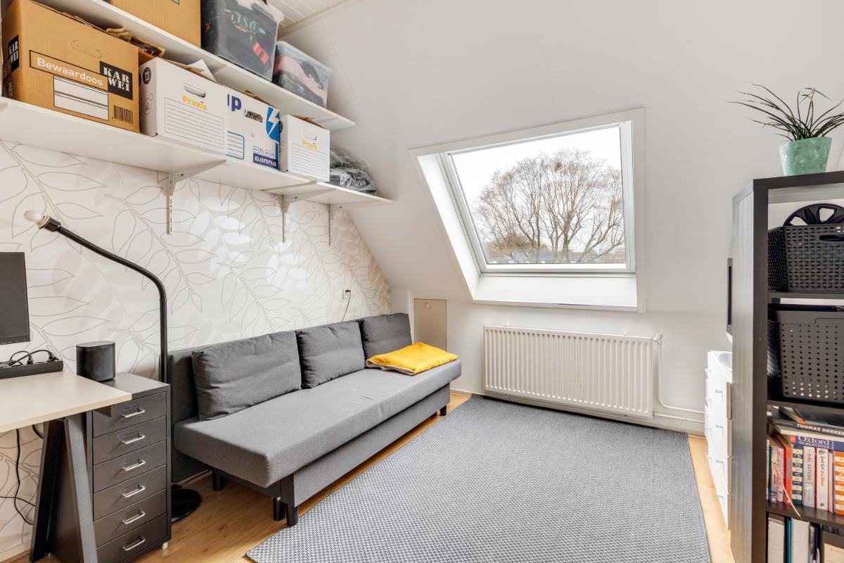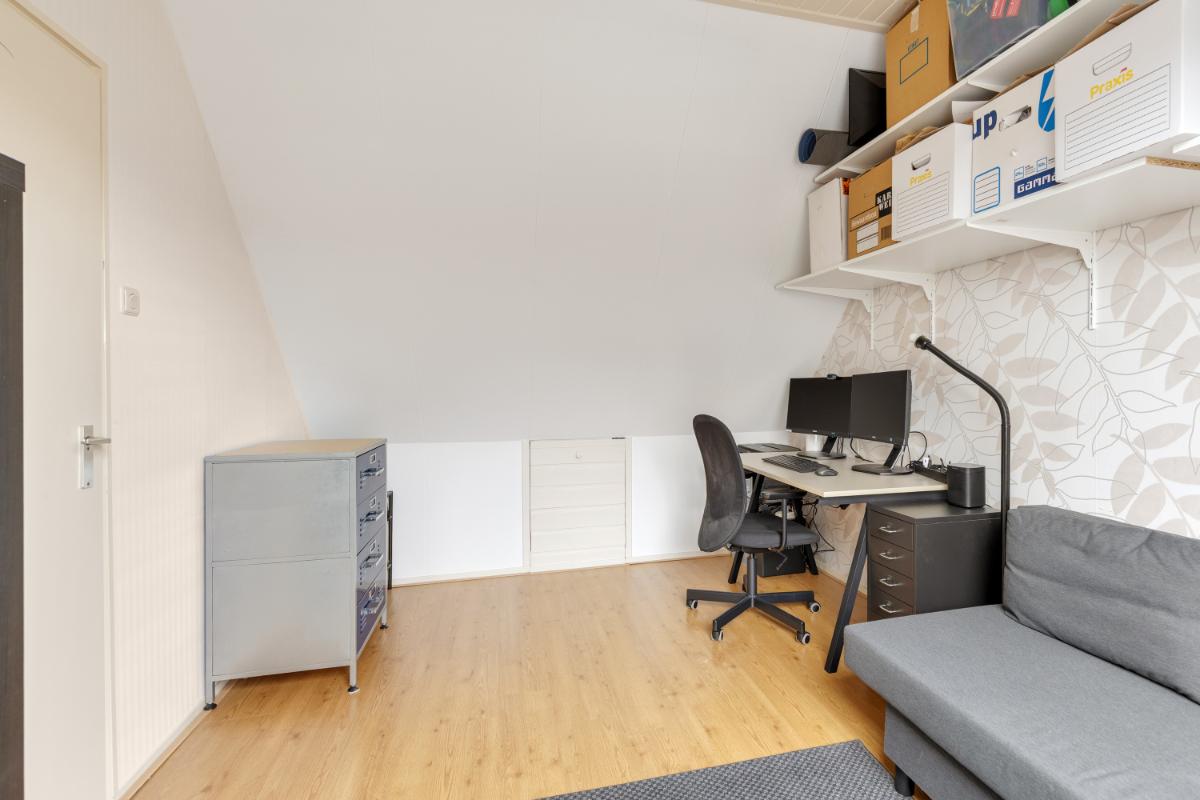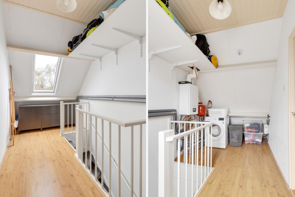 Tweede verdieping: via een vaste trap bereik je de tweede verdieping. Op de voorzolder vind je de cv-installatie (Remeha, 2024) en de aansluitingen voor wasmachine (en droger). Daarnaast is hier volop bergruimte aanwezig. De vierde slaapkamer is een fijne, lichte ruimte met een hoog plafond en een groot dakraam. Ideaal als extra slaapkamer, werkplek of hobbyruimte.