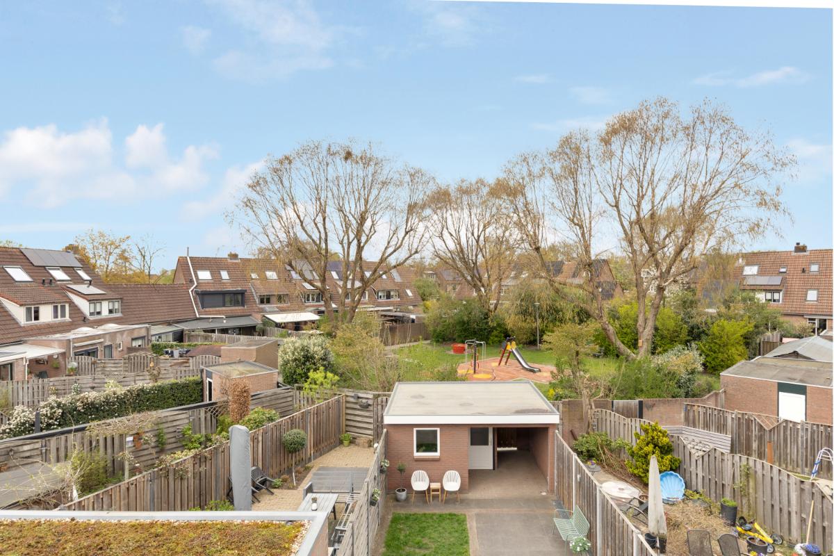 BIJZONDERE KENMERKEN - Instapklare middenwoning - Energielabel A en voorzien van 8 zonnepanelen (2022) - Volledig geïsoleerde woning en vloer na-geïsoleerd in 2022 - Vrije ligging zonder directe voor- en achterburen - Zonnige, onderhoudsvriendelijke achtertuin met overkapping - Vier volwaardige slaapkamers - Kinderspeelplaats direct achter de woning - Cv-ketel vernieuwd in 2024 - Rustige en groene ligging nabij centrum, scholen en station